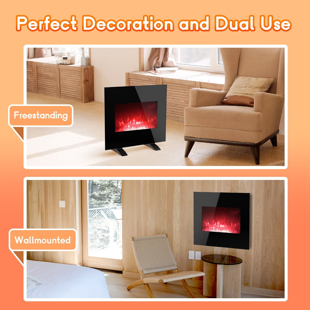 Lifeplus 26″1500-Watt Freestanding or Wall Mounted Electric Fireplace Heater, Black