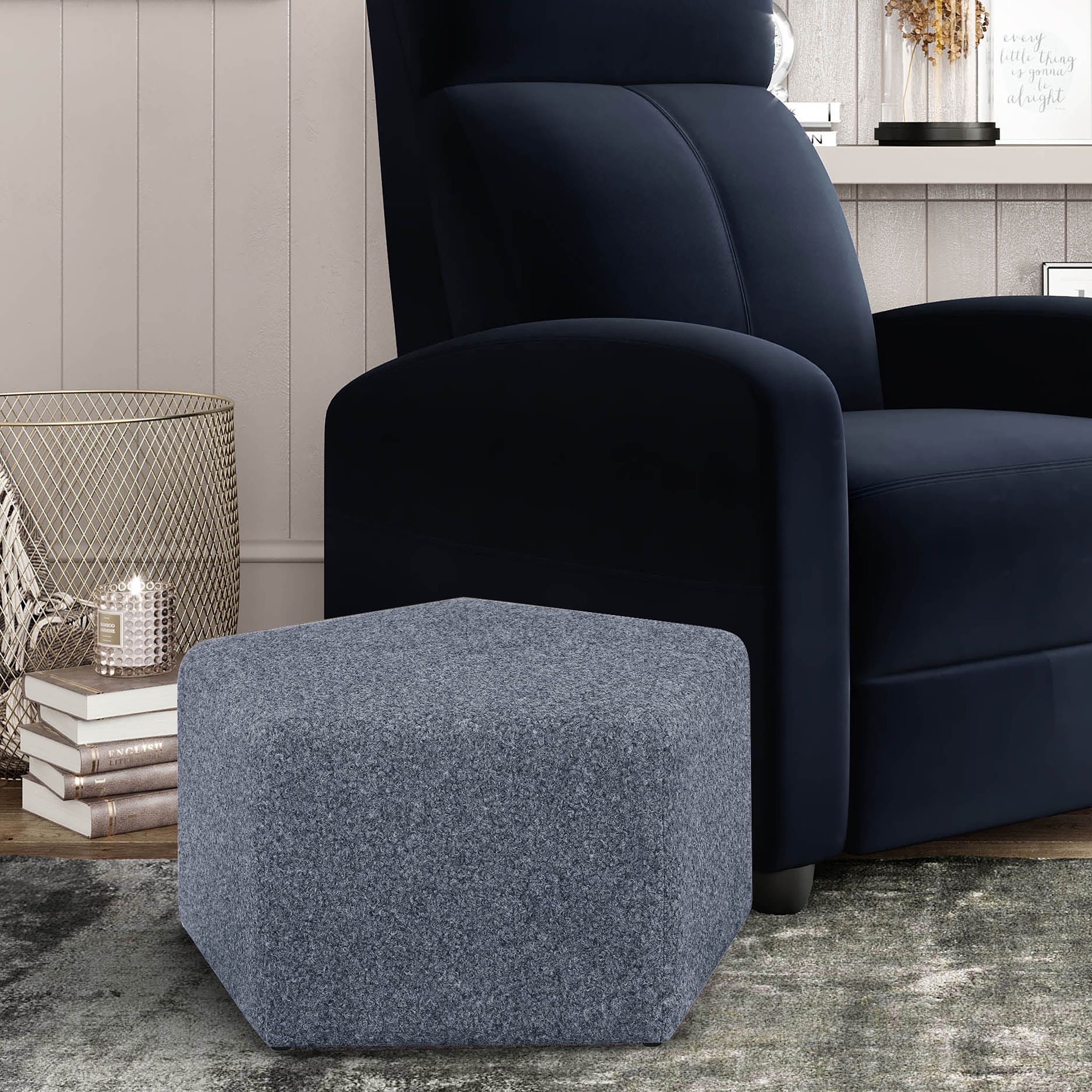 Lifestyle Solutions Gentry Pentagonal Ottoman, Blue Fabric