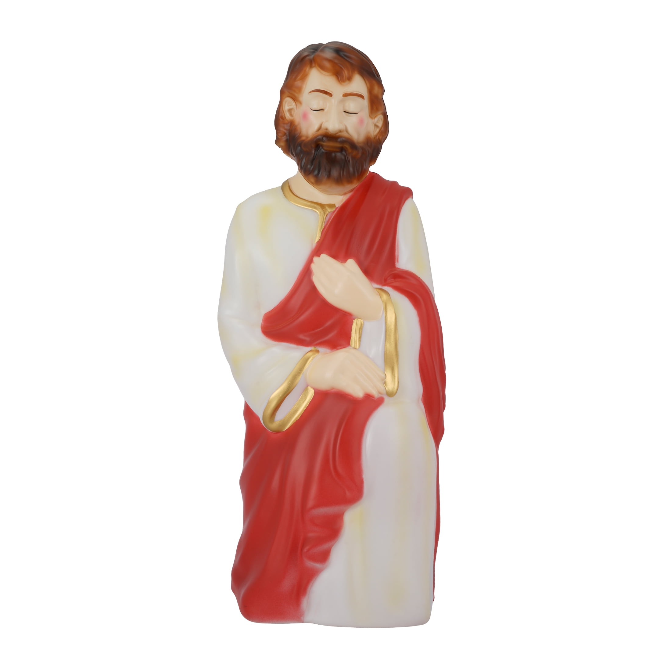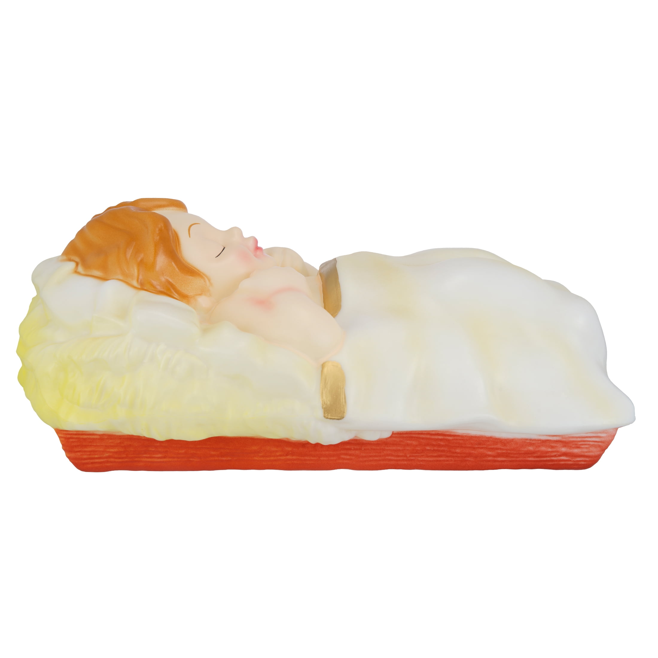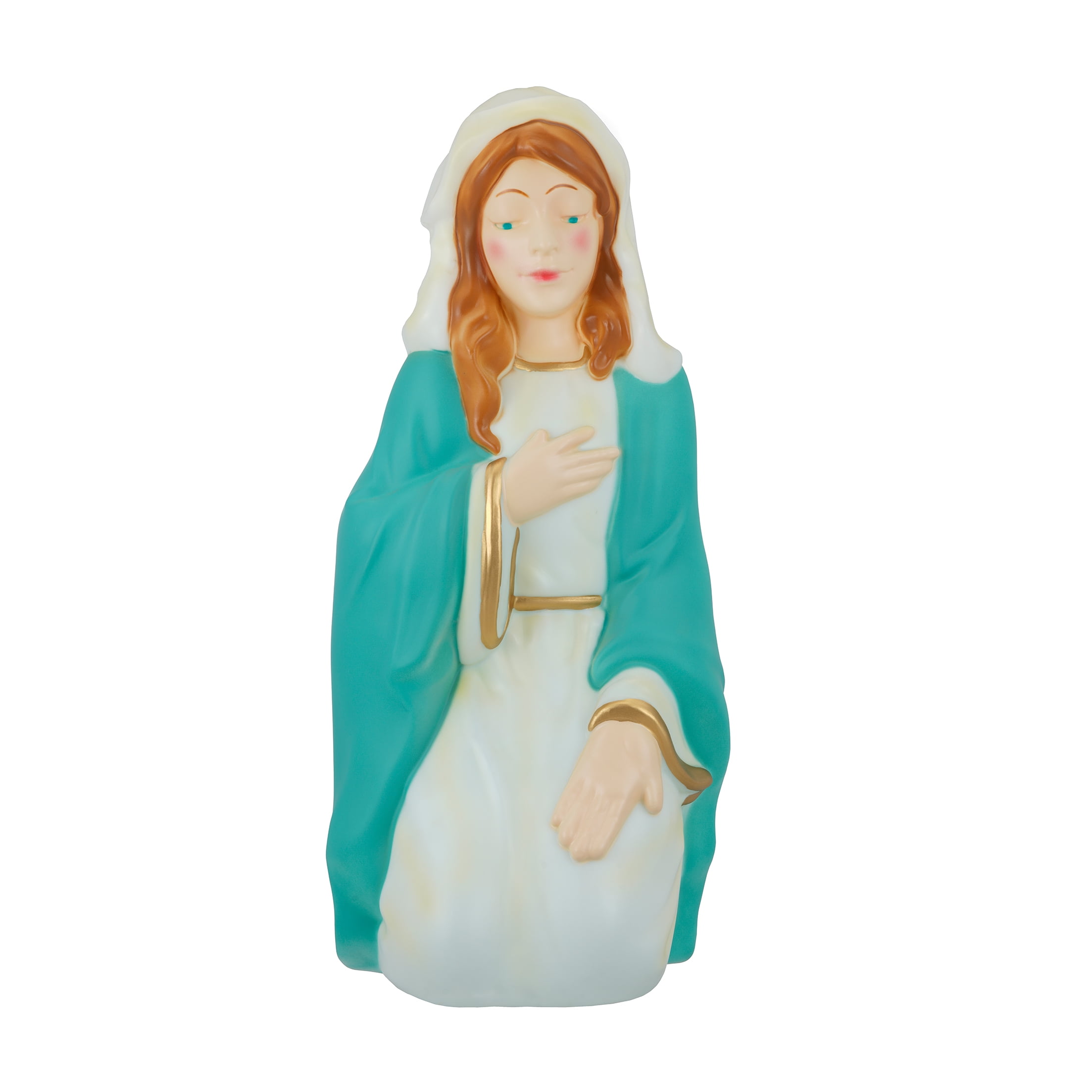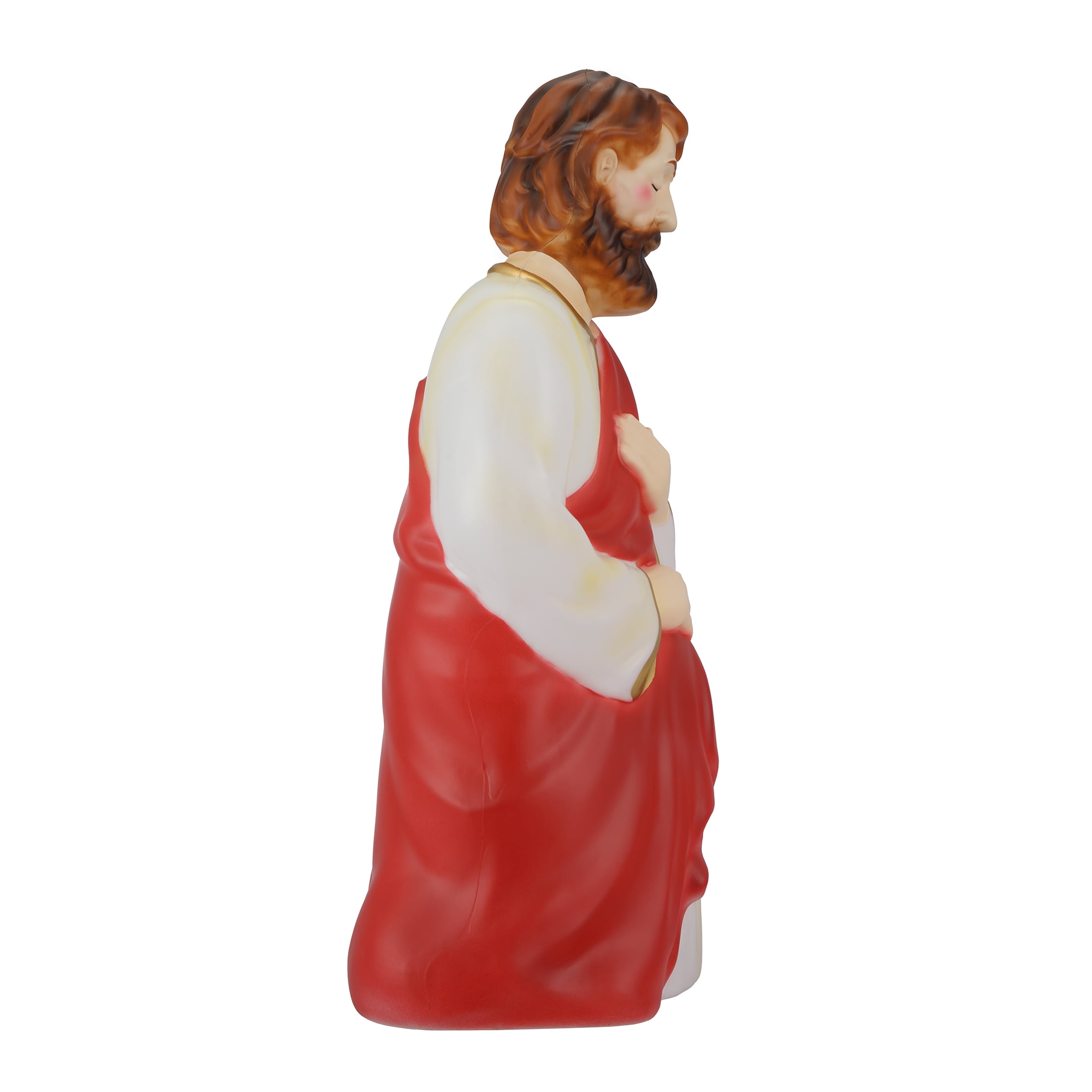 Light-Up Christmas Nativity Scene Blow Molds, 28 in, Set of 3, by Holiday Time 28 Inches tall Set of 3 including Joseph, Mary and baby Jesus Stunning, pearlescent finish Beautiful rich colors and gold details Made with durable and light weight blow molded plastic Includes C7 (standard) traditional light bulbs that are also easy to replace when needed Plugs in to standard US household outlet 110/120 volt AC Elegant Christmas design that accents any Christmas indoor/outdoor décor or theme Pairs great with any of the Holiday Time Christmas blow mold items Product Dimensions: Joseph 11.6”(W)x11.2”(D)x28”(H), Mary 12.2”(W)x10.8”(D)x27”(H), Baby Jesus 10.6”(W)x16.5”(D)x6.5”(H) Weight: 3.1kg