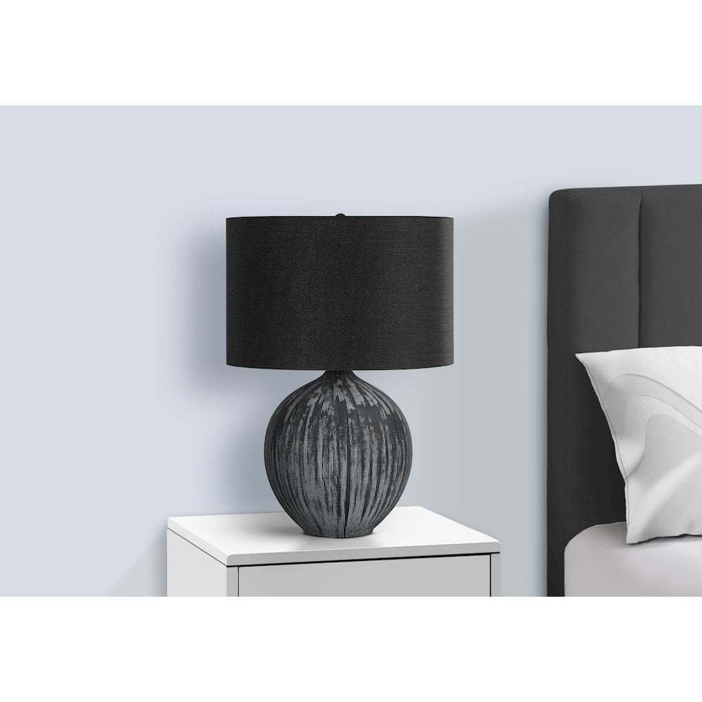 Add a touch of contemporary flair to any room with this stylish and trendy 23″h table lamp in an eye-catching textured finish, black ceramic base and a simple black fabric shade topped with a round black finial. The 3-way switch holds a single bulb with a maximum output of 100W/120V (not included), allowing you to adjust the lighting to create the right ambiance. This is the perfect sized lamp to add on top of an end or side table in a living room or home office or place it on a nightstand in your bedroom for a sophisticated look. Made with quality materials, this lamp includes a 2 year limited warranty against any manufacturer’s defects for a worry-free purchase. Features: With a bold and contemporary design, this 23″h table lamp with a black ceramic textured base, a wide black fabric shade that is finished with a round black finial on top, will add style to any room. The 3-way rotary switch holds a single bulb with a maximum output of 100w/120v (not included), allowing you to customize the lighting and create the perfect ambiance in your space. Attached with a 6ft long black cord, this is the perfect sized accent lamp to place on an end or side table in a living room or office, or on a bedside table in your bedroom for a sophisticated touch. Minor assembly is required with illustrated instructions included. Made with durable materials, this lamp is backed with 2-year limited warranty against manufacturer’s defects for a hassle-free purchase. Base: 10.5 in. L x 10.5 in. W x 13.25 in. H; shade: 16 in. L x 16 in. W x 10 in. H Specifications: Product Dimensions: 16 in. L x 16 in. W x 23 in. H