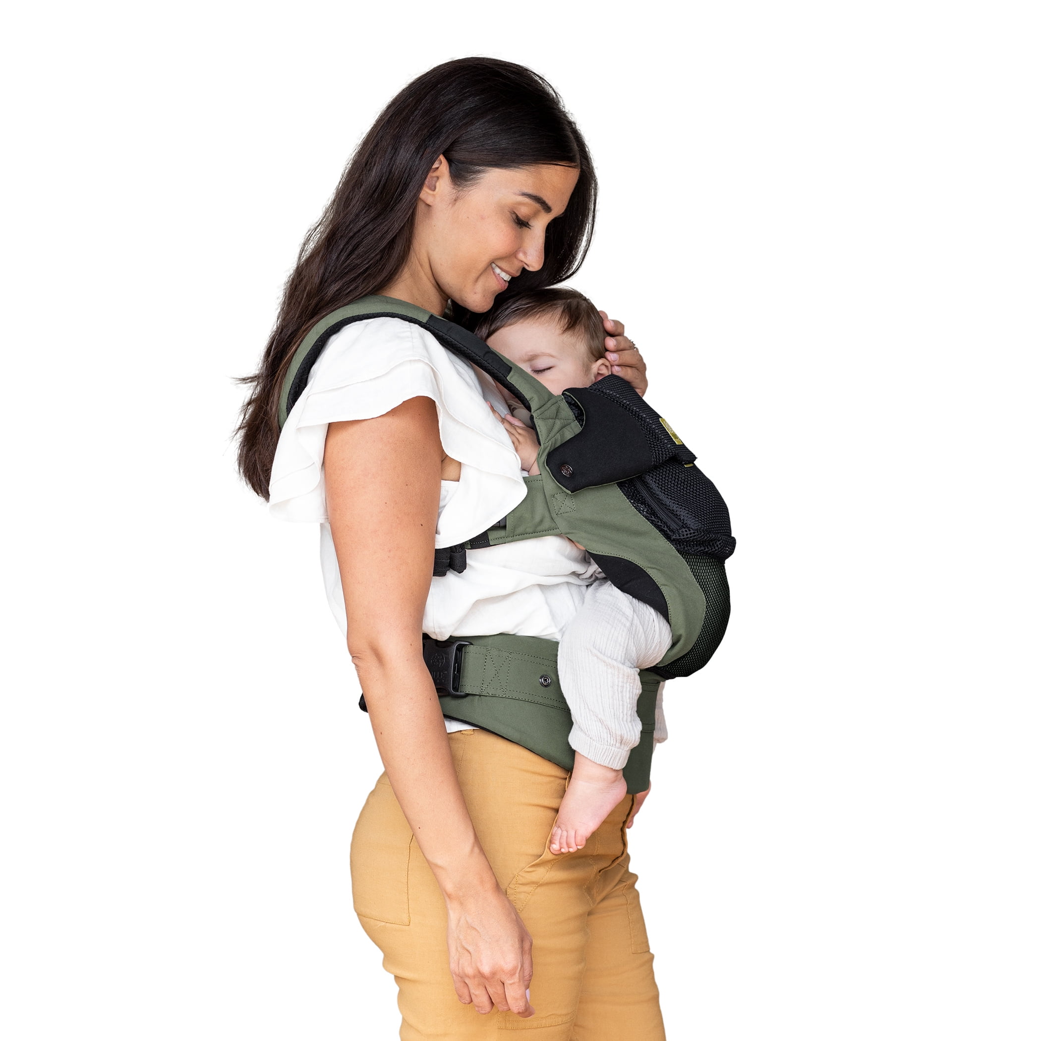 Cool comfort meets complete confidence. Enjoy everything you love about the LÍLLÉbaby’s Complete Carrier in a breathable, lightweight mesh that keeps you and baby cool and comfortable. The LÍLLÉbaby Complete 6-in-1 Carrier is truly complete carrying solution newborn to toddler. The Complete’s unique, transformational seat can be folded small for newborns and infants and expanded to a wider setting as your child grows. This ensures your child is always supported from knee-to-knee, the best ergonomic position for their hips. The Complete is certified as a Hip-Healthy product by the International Hip Dysplasia Institute. This versatile carrier can be adjusted to 6 different positions: Front Fetal, Infant Narrow Seat, Toddler Wide Seat, Ergonomic Outward, Hip Carry and Back Carry. Adjustable head support can be flipped up to support little ones still learning head control, or down for babies ready to look around and see the world. A wide waist band, lumber support panel, and thickly padded straps make this carrier ideal for all-day comfort. Includes detachable sun hood.