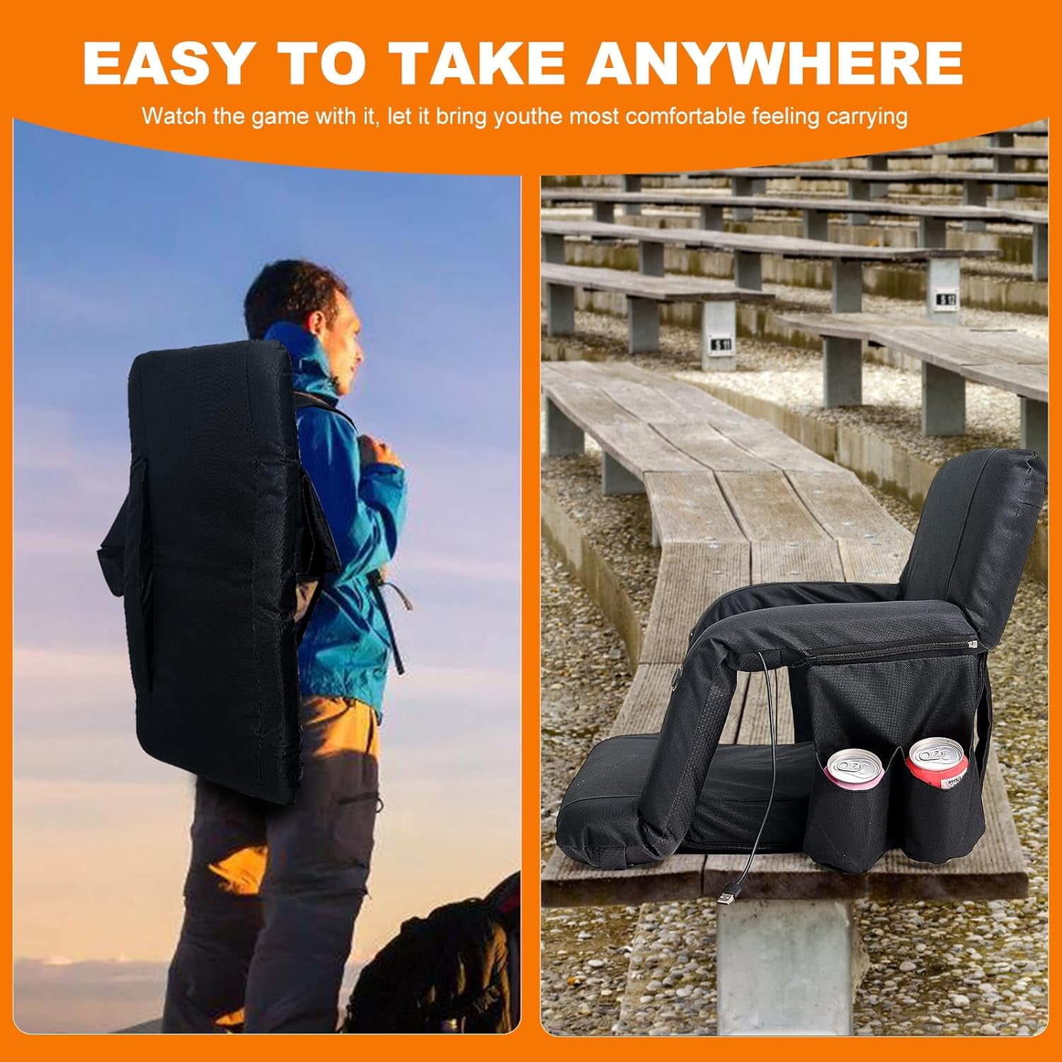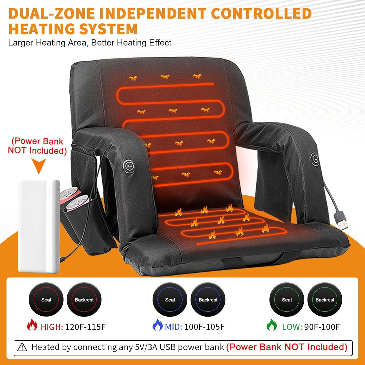 LILYPELLE Double Heated Stadium Seat Bleacher Seat with Back & Arm Support, Portable 6 Reclinng Positions Stadium Seating for Bleachers, Bleacher Seats for Sports Events, Outing, Travelling, Hiking