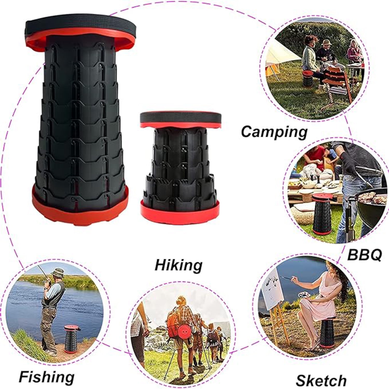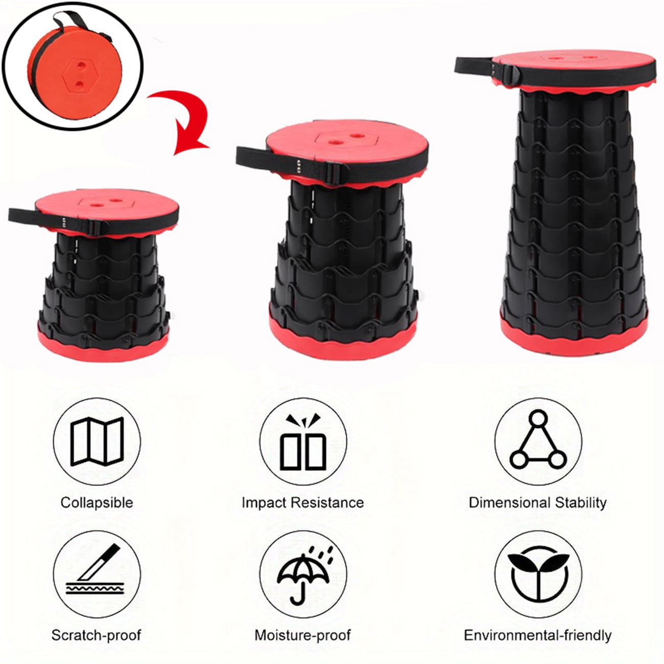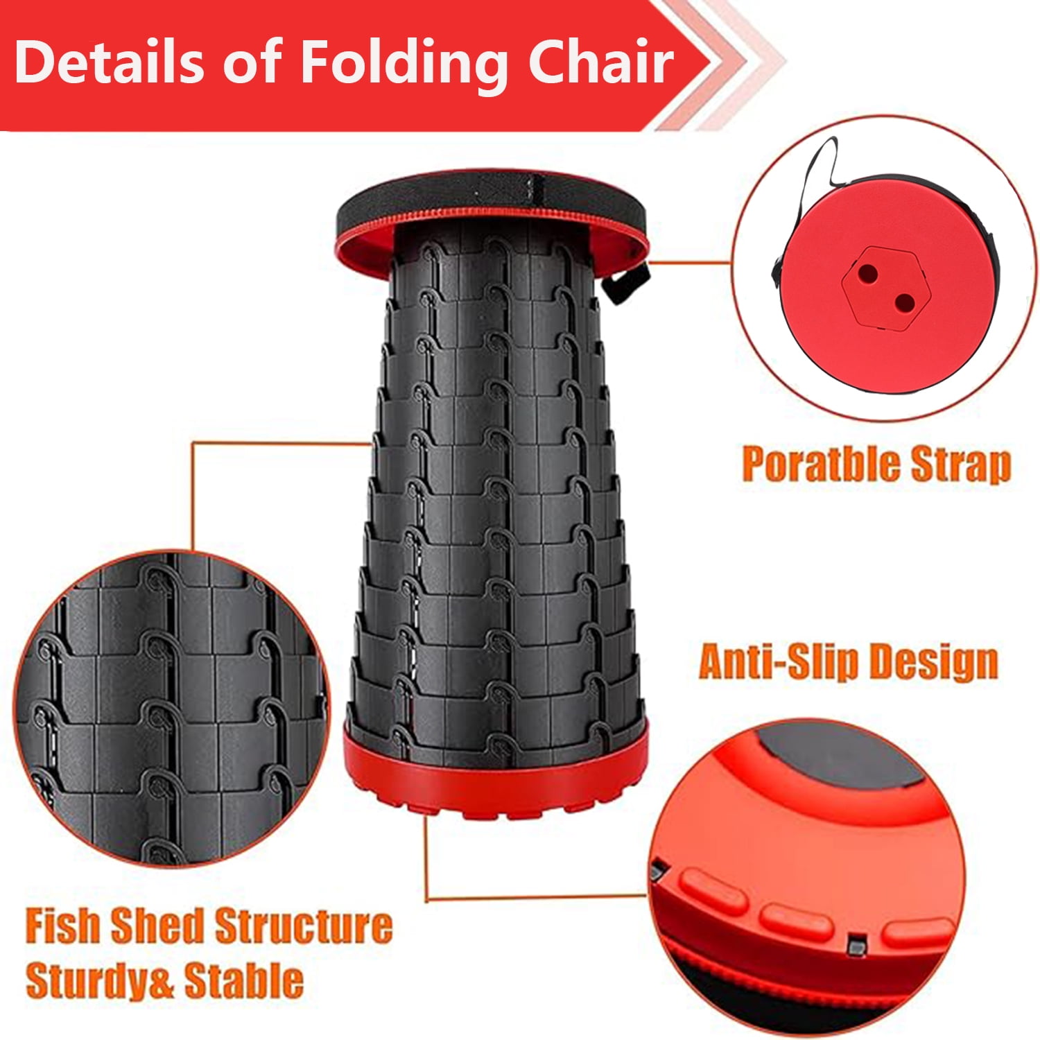 LIMICAR Portable Folding Stool,Upgraded Portable Telescopic Stool,Capacity 550lbs,Camping Stool for Outdoor Camping Travel,Queue Red