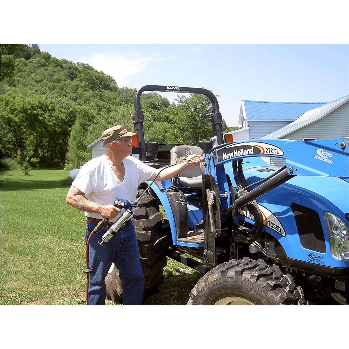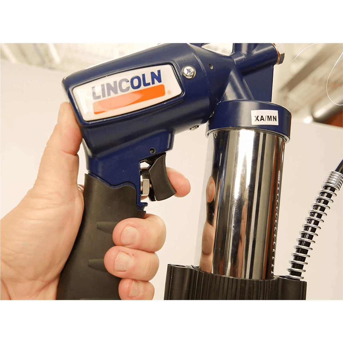 HIGH-PRESSURE PERFORMANCE: The Lincoln 1162 Pneumatic Grease Gun delivers up to 6,000 PSI, ensuring effective lubrication for automotive, industrial, and agricultural equipment. Ideal for high-pressure applications like CV joints, bearings, and zerk fittings VARIABLE SPEED TRIGGER: Equipped with a variable speed trigger, this fully automatic grease gun provides precise control over grease flow, allowing for continuous operation and efficient lubrication in any setting DURABLE 30-INCH HOSE AND COUPLER: The 30-inch high-pressure hose with coupler makes it easy to reach tight spots and hard-to-access areas, making it perfect for lubricating suspension systems, gears, and machinery CONTINUOUS OPERATION: Designed for continuous use, the Lincoln 1162 ensures that you can complete even the most demanding maintenance tasks without interruption. The combination filler coupler and air bleeder valve add convenience and efficiency VERSATILE APPLICATION: Ideal for automotive, industrial, and marine environments, this pneumatic grease gun is perfect for reducing friction and wear on a wide range of equipment, from cars and trucks to tractors, cranes, and boats