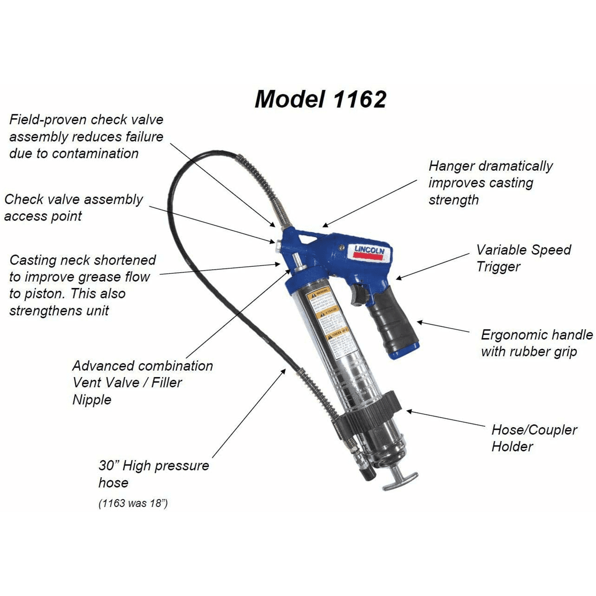 Lincoln 1162 Pneumatic Grease Gun with 30″ High-pressure Hose and Coupler
