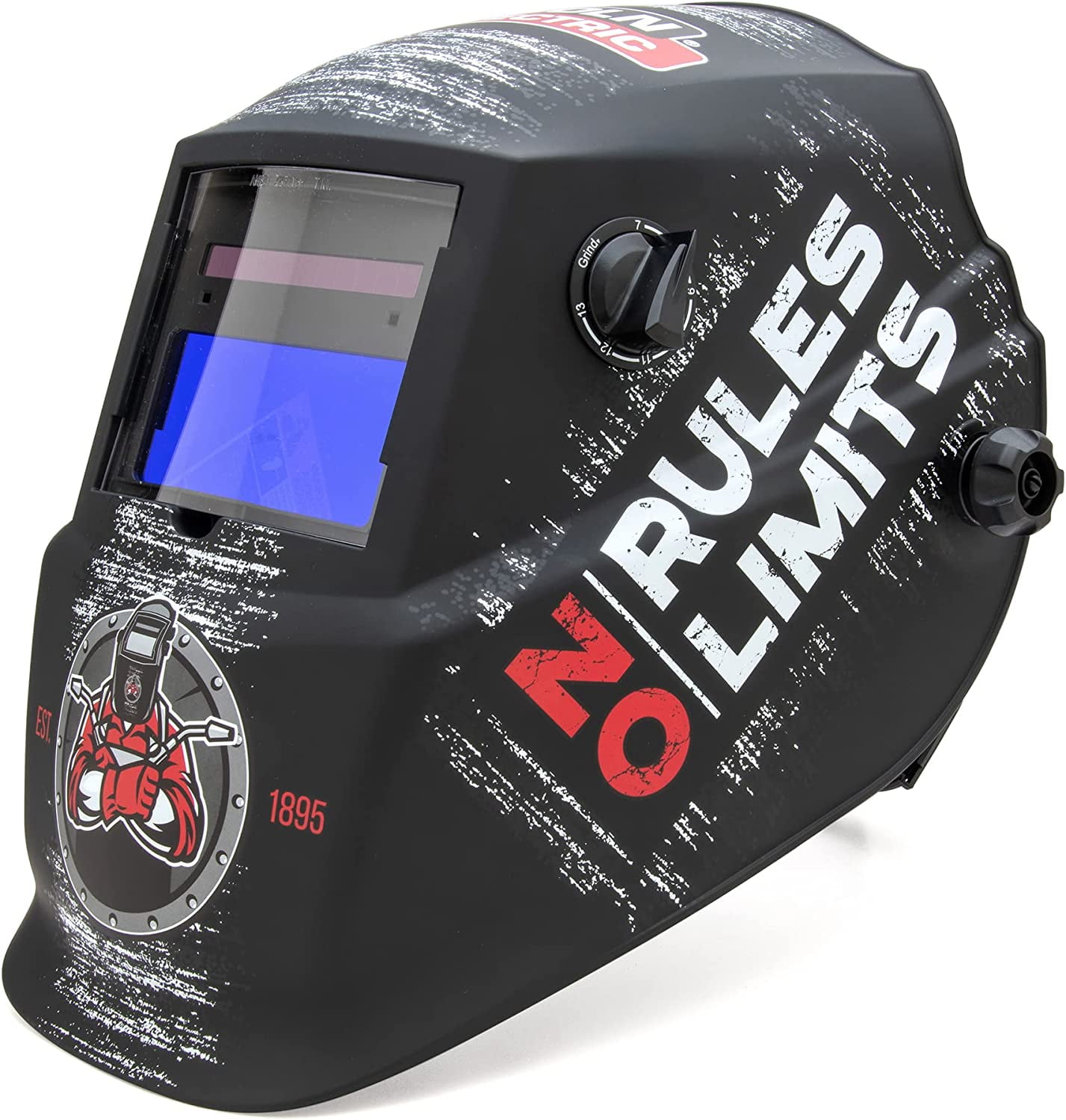 Lincoln Electric No Rules No Limits Welding Helmet K4983-1, Auto Darkening, Lightweight Weld Headgear, Shade 7-13, Grind Mode, Use for Stick, TIG, Pulsed TIG, MIG, Pulsed MIG, Flux-Cored, Gouging