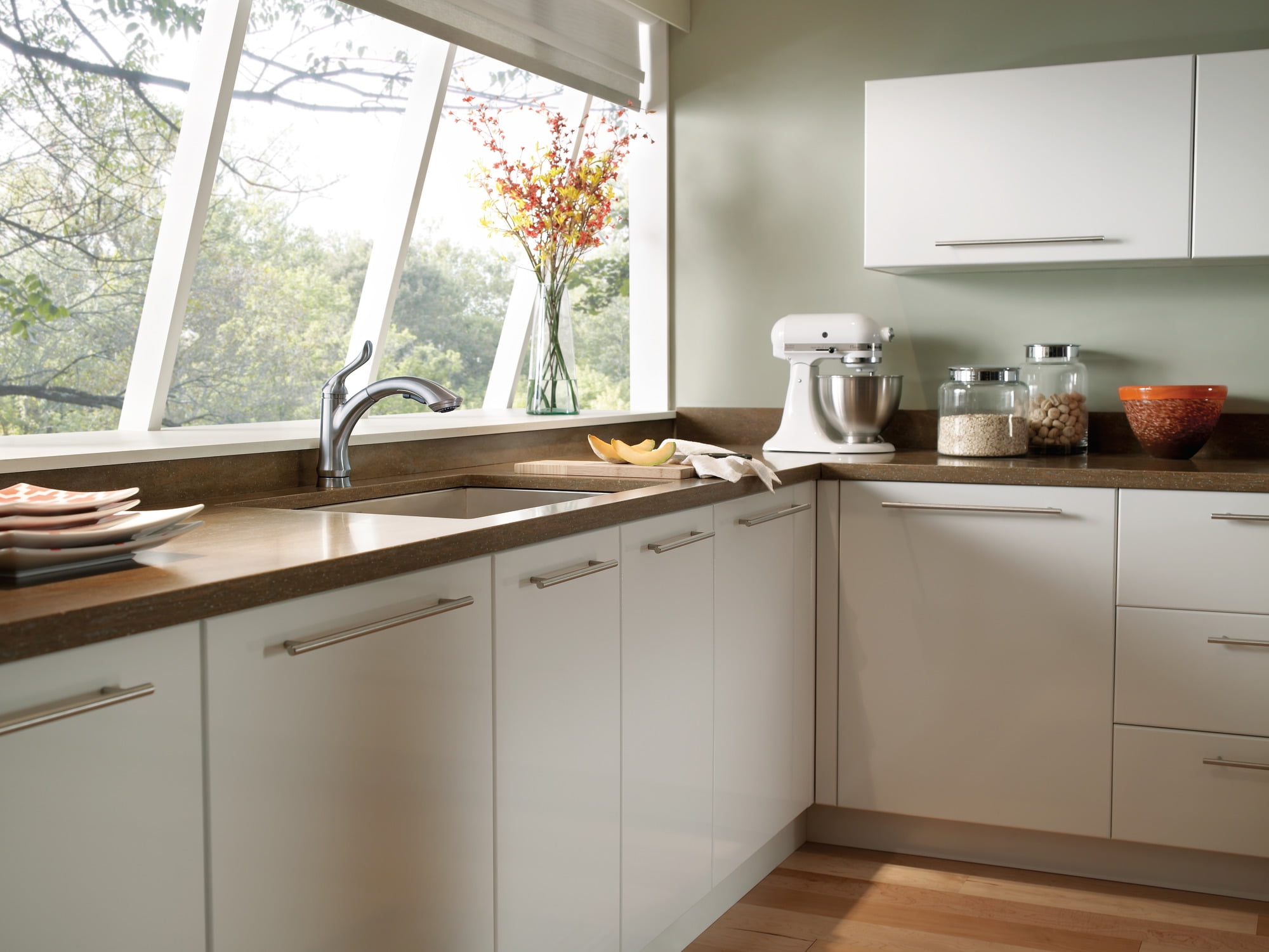 Multi-Flow(TM) delivers both 1.5 gpm stream and spray settings for water efficiency and 2.0 gpm stream setting for high performance DIAMOND Seal Technology features a valve embedded with diamonds to ensure like-new operation for the life of the faucet Meets standards set by Americans with Disabilities Act 1 or 3-hole 8 in. installation Includes optional 10-1/2 in. escutcheon Pull-out spout swivels 120degrees for added convenience 59 in. long hose provides outstanding reach