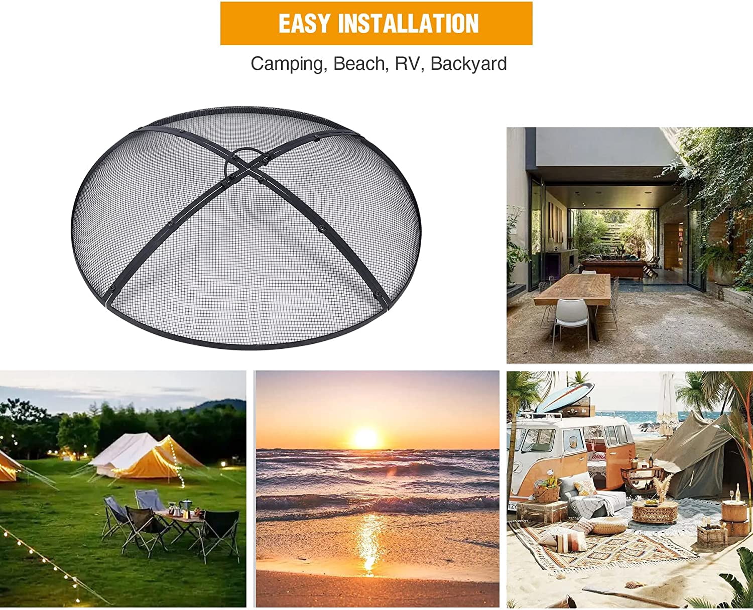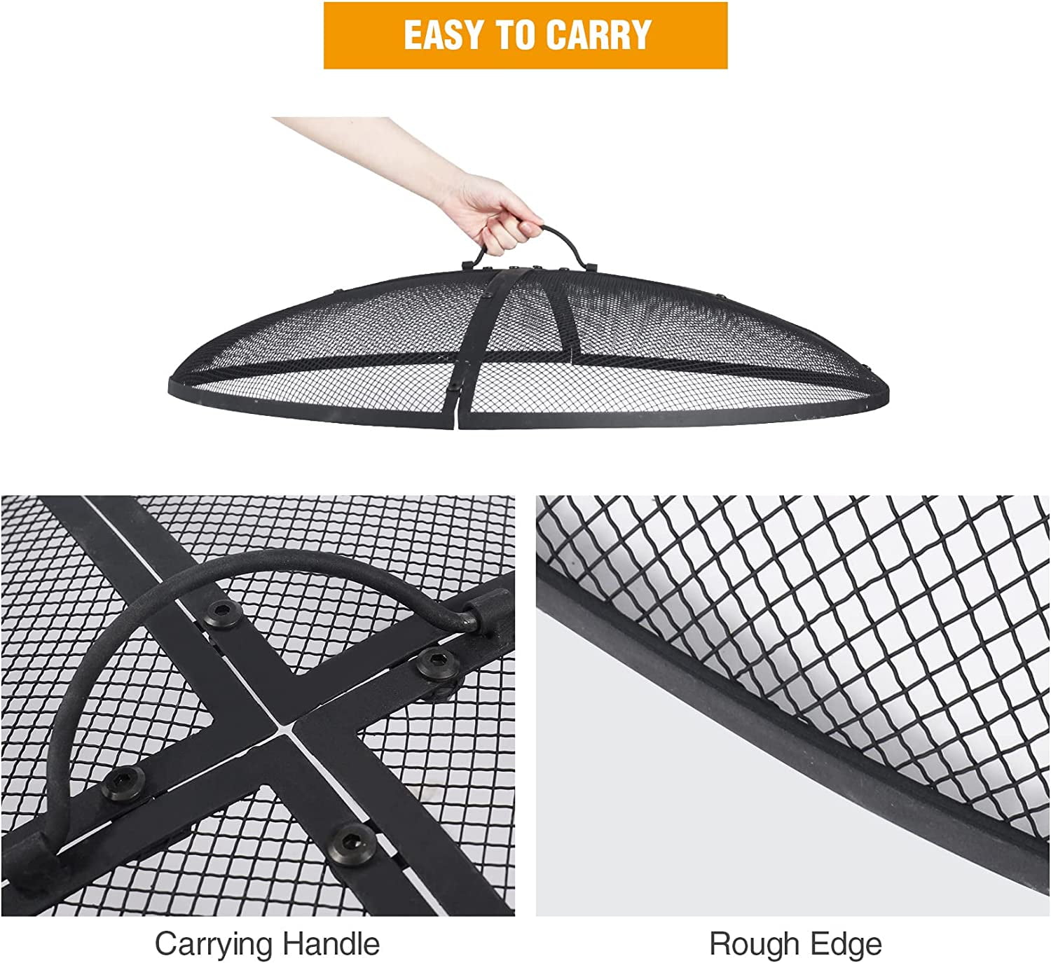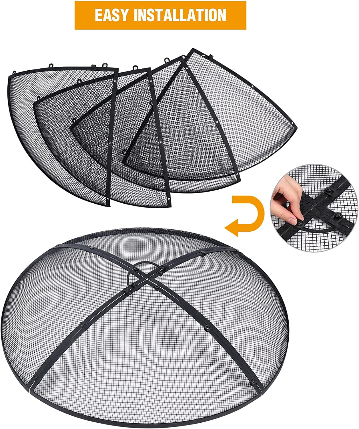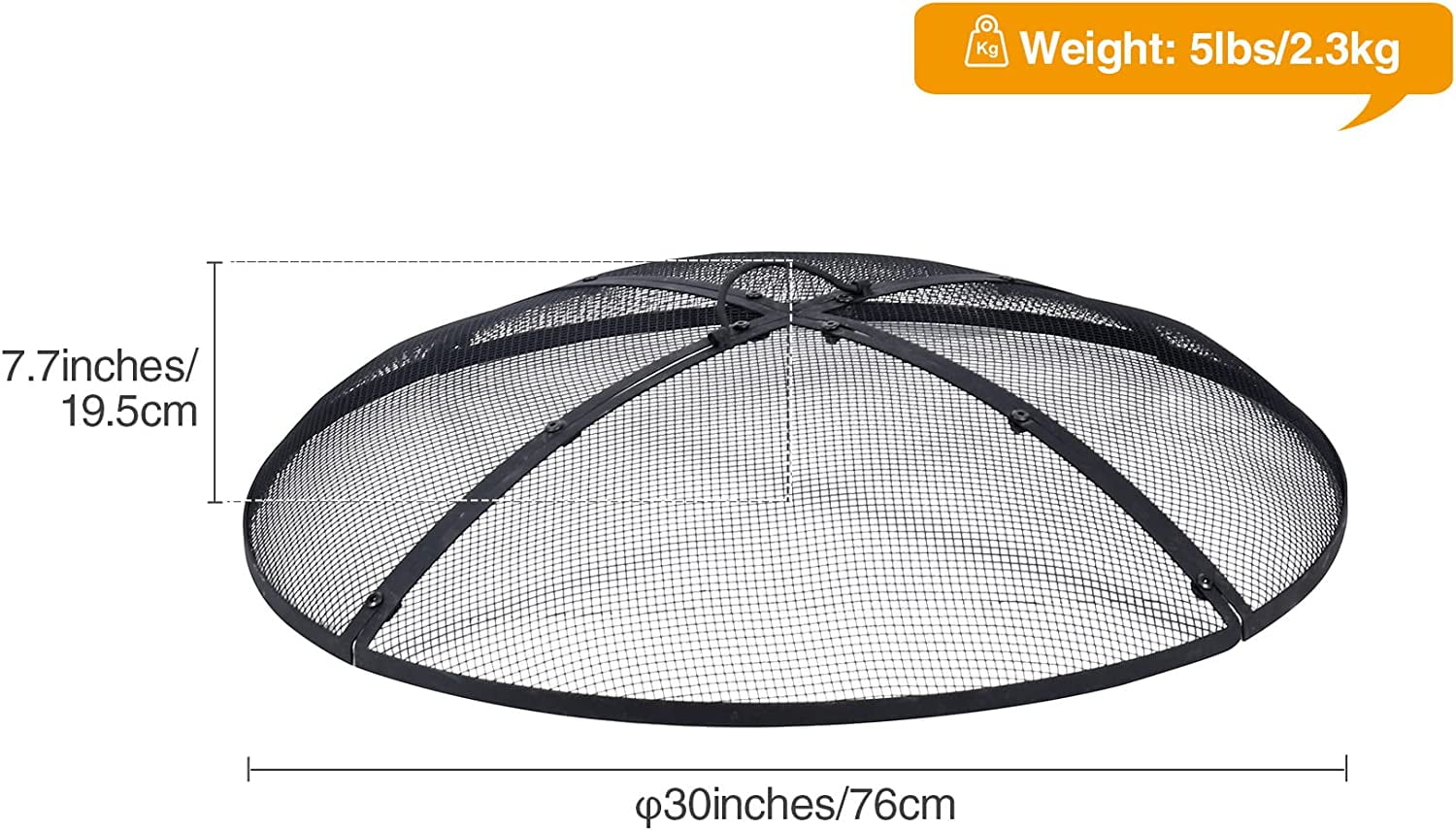 Lineslife 30″ Black Finish Iron Fire Pit Spark Screen with Handle Product Information: The diameter of the outdoor fire pit spark screen cover is 30 inches (76 cm), the height (including the handle) is 7.7 inches (19.5 cm), and the weight is 5 lbs (2.3 kg), making it very suitable for fire pits Sturdy & Durable: The round fire pit screen cover is made of iron, featuring a black finish that enhances its longevity. The mesh surface is resilient and will spring back without easily deforming Convenient Storage: The meshes of the fire mesh screen guard are connected by screws and can be split into 4 pieces, allowing for easy storage in the trunk of a car while occupying minimal space. It effectively reduces the splash of sparks, embers, and debris Easy to Use: A handle attached to the top facilitates easy movement of the entire spark screen in and out, but it is advised not to touch it until it cools Multipurpose: The fire pit ember lid is ideal for night campfire activities in various outdoor settings such as camping, the beach, RVs, and backyards. It is primarily designed for use with fire pits, bowls, rings, and rims