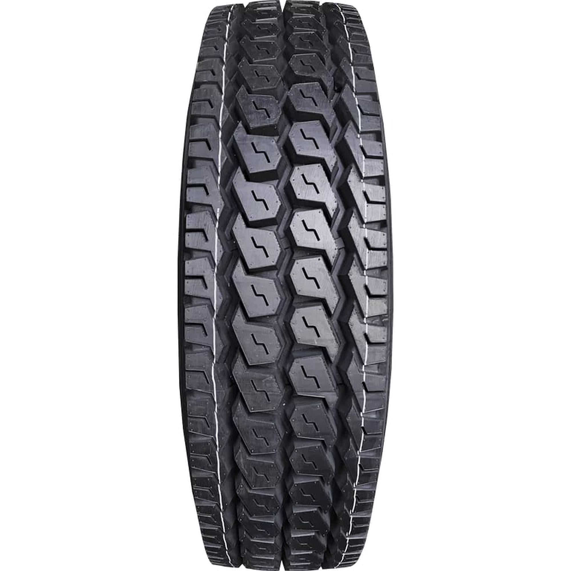Radial tire designed specifically for long-haul applications. Designed for drive wheel positions, perfect for regional applications. Block and rib pattern offers exceptional traction on both wet and dry roads. Provides excellent traction and improved fuel efficiency. SmartWay Verified tire with low rolling resistance, promoting increased fuel efficiency. Robust carcass design ensures an even footprint and longer service life. Grooves and multiple sipes channel water away in wet conditions to enhance grip and reduce hydroplaning risk. Features wide grooves that efficiently expel water, increasing resistance to hydroplaning. Robust carcass construction provides a stable footprint for superior braking and handling. Incorporates sipes to improve grip on both wet and dry surfaces. Size: 11R24.5 Load Range: H Product May Vary From Picture Wheel/Rim Not Included