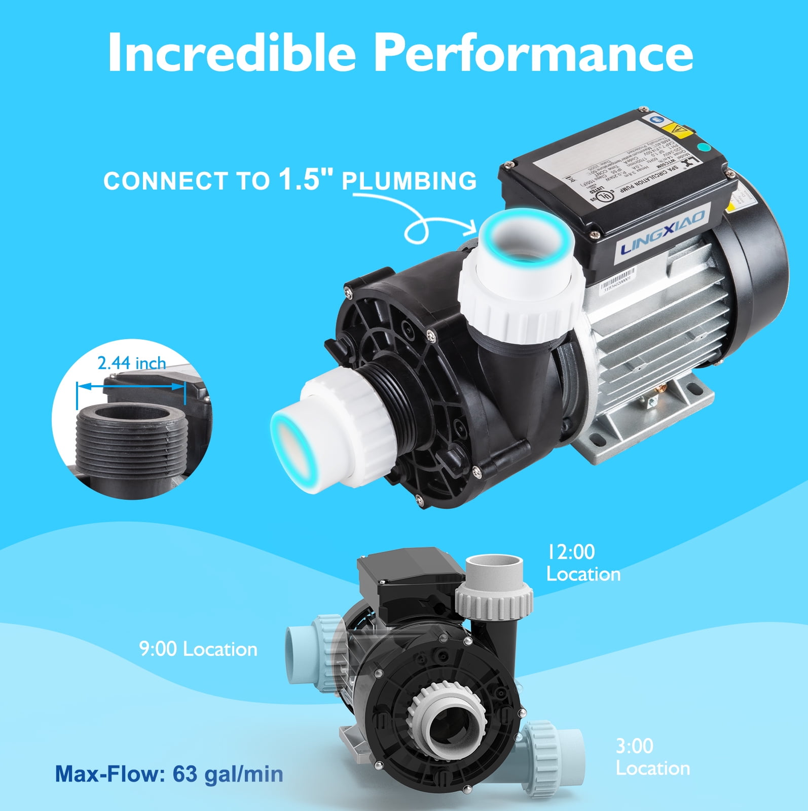 LINGXIAO WTC50M SPA Circulation Pump, Hot Tub Circulating Pump, 0.35HP Single speed LX Pump Motor, 230V/60HZ, 1.5″ Port, 63GPM – Perfectly compatible with OEM models