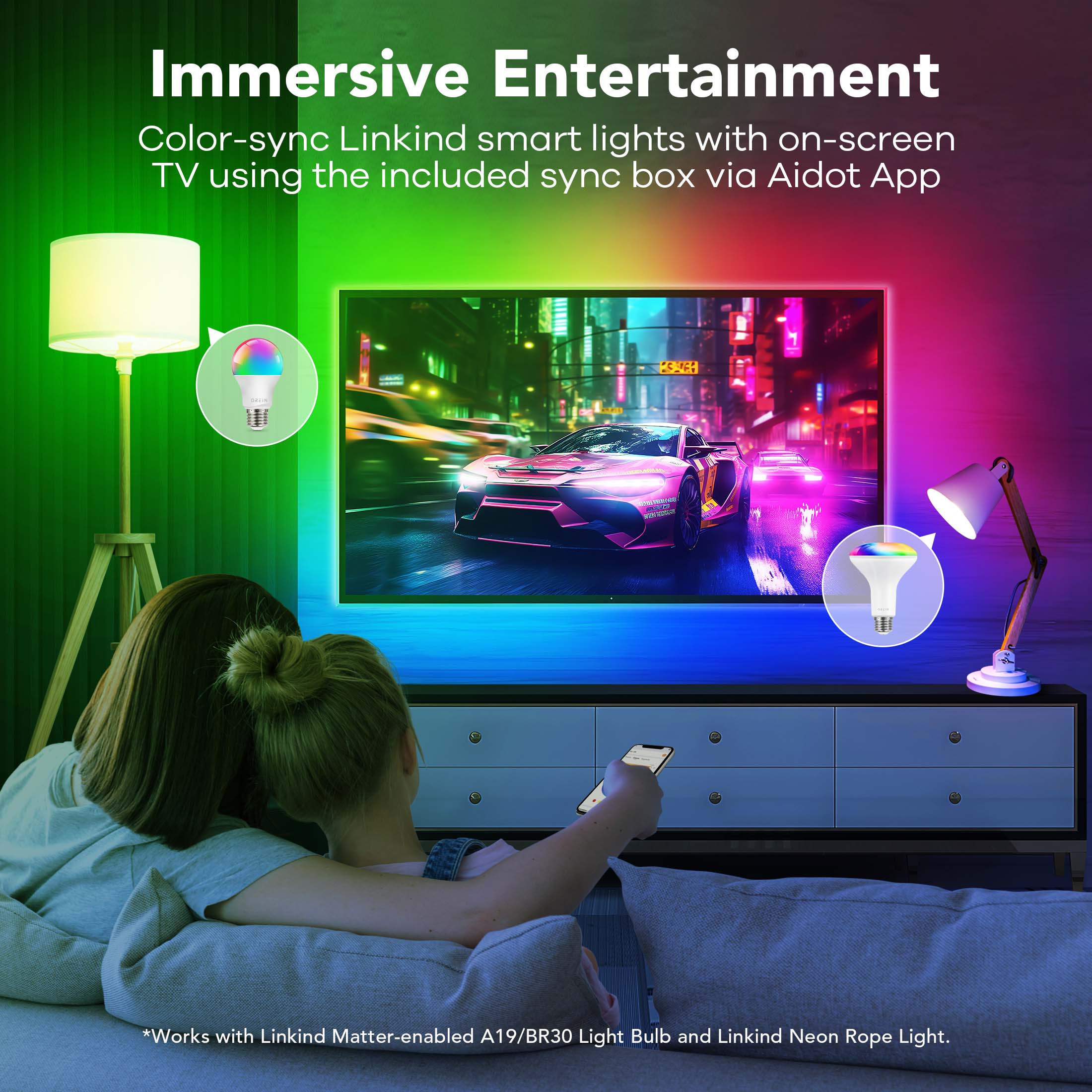 Improve your TV viewing experience with Linkind Smart TV LED Light Strips! Choose from over 16 million color options for an immersive sensory experience that’ll transport you to a world of pure entertainment. Setting up is quick and easy, and these LED light strips sync seamlessly with voice control and AiDot App, making them the perfect accessory for TVs up to 90 inches. Whether you’re hosting an indoor party or setting the tone for movie night, the Linkind strip lights adjust in real-time to create a stunning ambiance. Even better, these light strips maintain 100% accurate colors, even in different lighting environments. So sit back, relax, and get ready for an unparalleled viewing experience with Linkind Smart TV LED Light Strips.