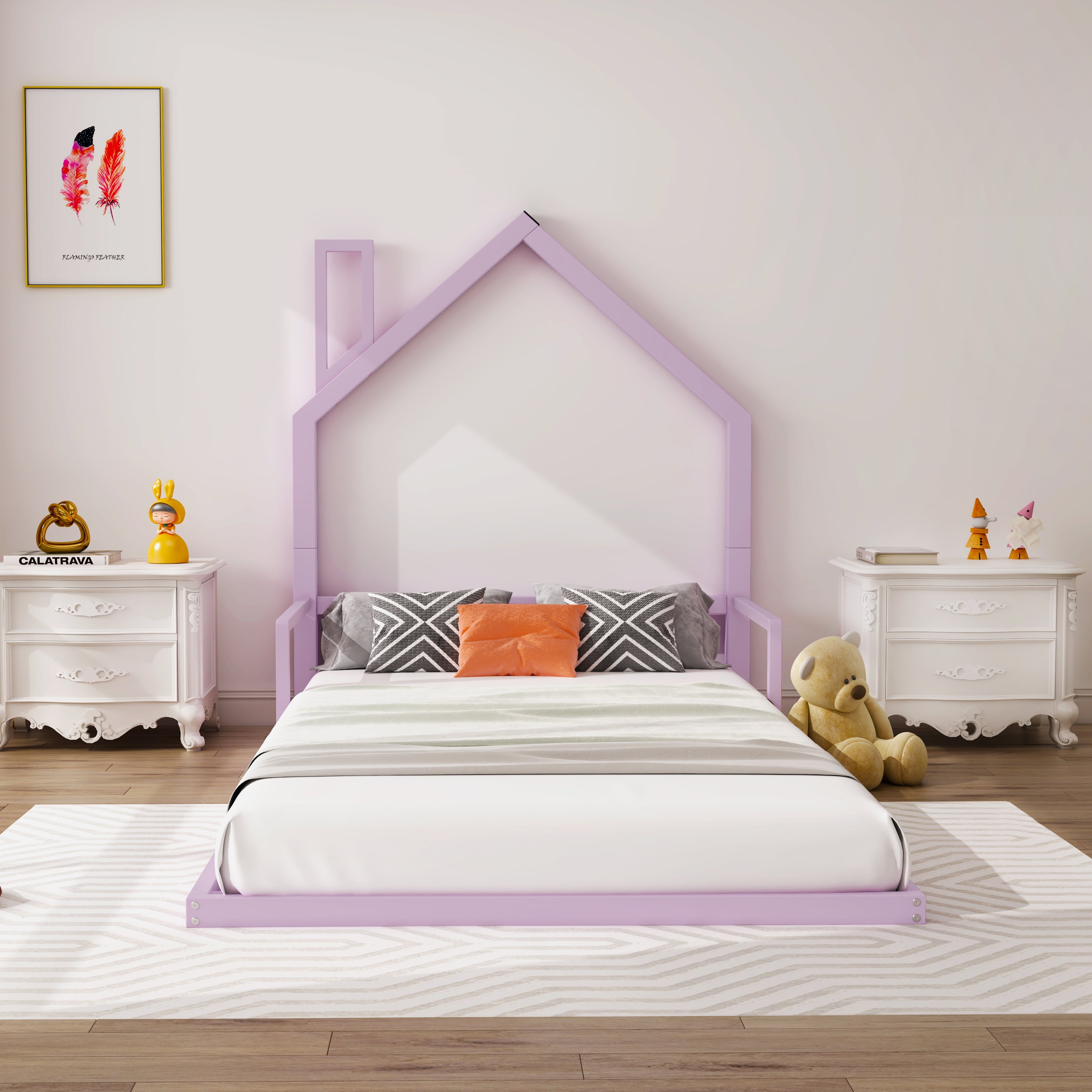 MID-CENTURY MODERN BED – Elevate a kid or guest bedroom with a modern low profile platform bed with clean lines and a contemporary feel. A timeless upholstered twin bed with a square stitched design UPHOLSTERED BED – Sit back while reading bedtime stories in bed with a supportive padded twin headboard upholstered in soft polyester fabric with tufting. Includes foot caps for hardwood flooring TWIN PLATFORM BED – This upholstered platform bed features a durable plywood construction for peaceful, noise-free sleep. Includes a reinforced center beam with cross-beam support for added stability BOX SPRING REPLACEMENT – Eliminate the need for a box spring with this sturdy mattress foundation. Wood slats are less than 3 inches apart and support mattresses such as memory foam and innerspring TWIN SIZE BED MEASUREMENTS – Complement almost any bedroom theme from modern to farmhouse to contemporary with this upholstered bed. Dimensions: 81″L x 45″W x 36.5″H; ; Weight Capacity: 1300 lbs