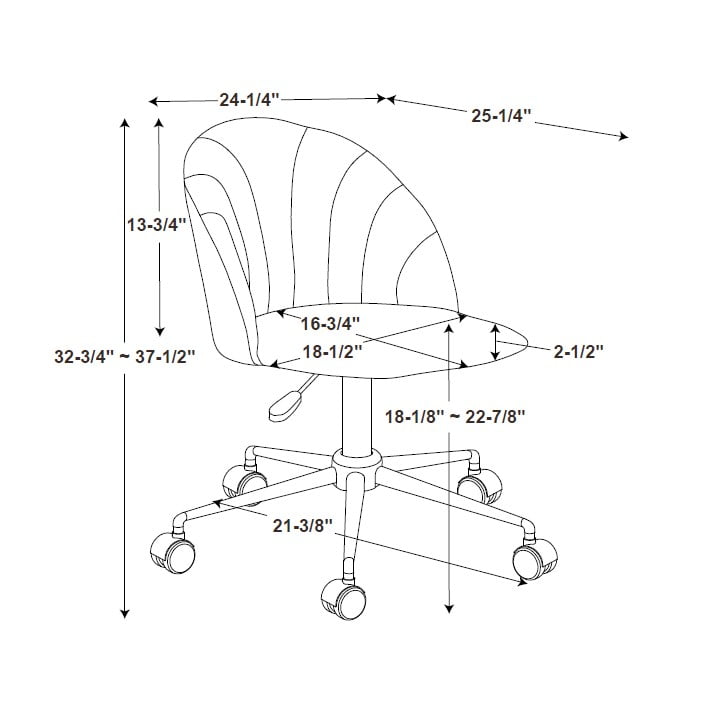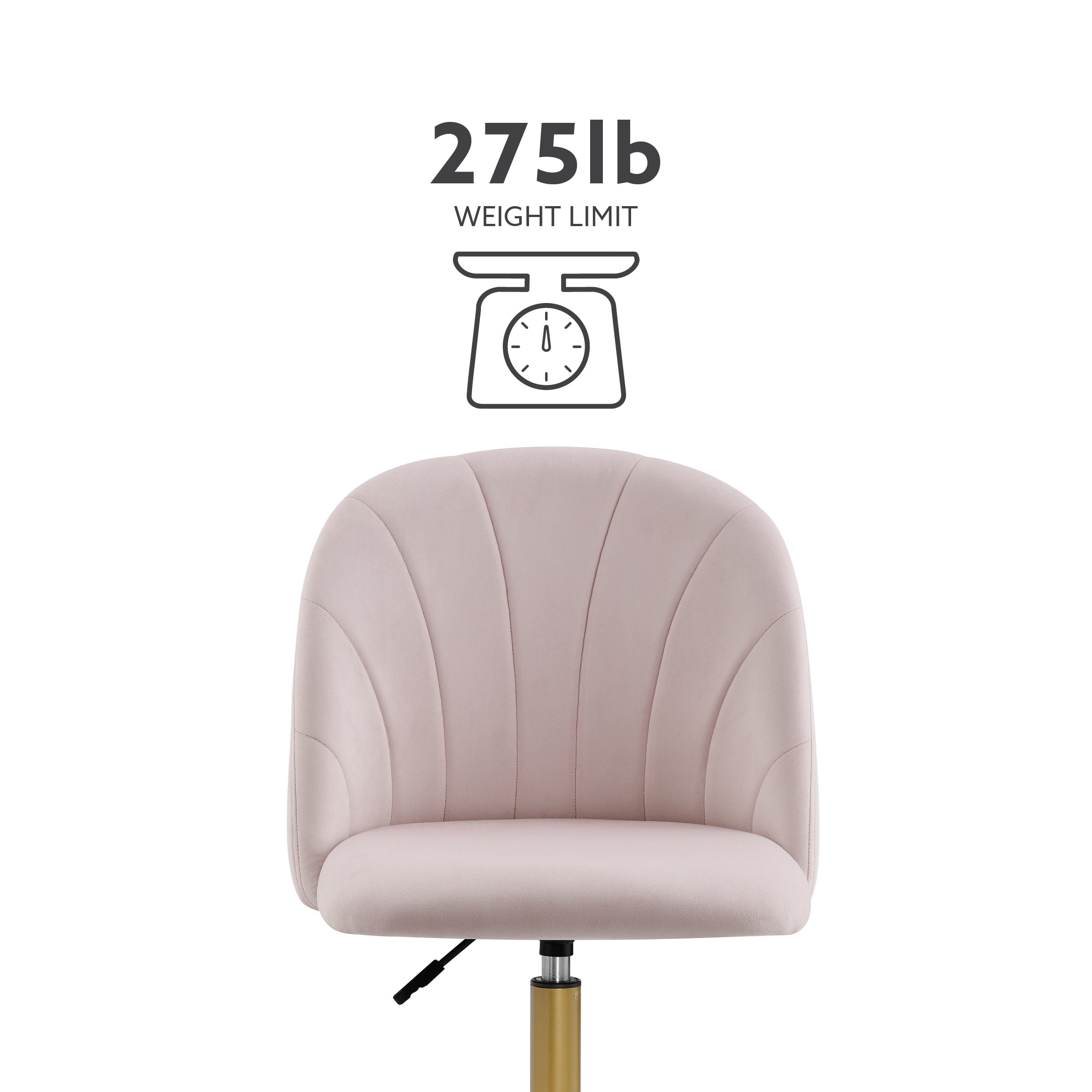 Transform your office or personal space with the Athena Blush Pink Desk Chair from Linon, an exquisite combination of high-end style and practical functionality. The chair’s soft, plush frame is beautifully upholstered in luxurious light pink velvet, offering an elegant touch to any room. Featuring a rounded back and gracefully curved seaming, it delivers a refined aesthetic that enhances both modern and classic decor. The stunning gold metal base not only adds a touch of glamour but is also paired with matching gold castor covers for a cohesive and sophisticated look. This chair’s design is a statement piece that brings warmth and charm to your home office, dorm room, or vanity area, creating an inviting and stylish atmosphere wherever it’s placed. Comfort meets convenience with the Athena Blush Pink Desk Chair, designed to cater to your every need. The chair swivels 360 degrees, allowing you to glide effortlessly from task to task. Its adjustable height feature ensures the perfect fit, whether you’re sitting at a desk or using it as a makeup chair for your vanity. The 100% polyester velvet fabric is not only soft and inviting but also incredibly easy to maintain, offering a practical solution for everyday use. Simple to assemble and built for durability, this chair brings a combination of luxurious design and user-friendly features, making it a versatile addition to any space. Whether you’re tackling work projects, studying, or getting ready for the day, the Athena Blush Pink Desk Chair is the perfect blend of beauty, comfort, and style.