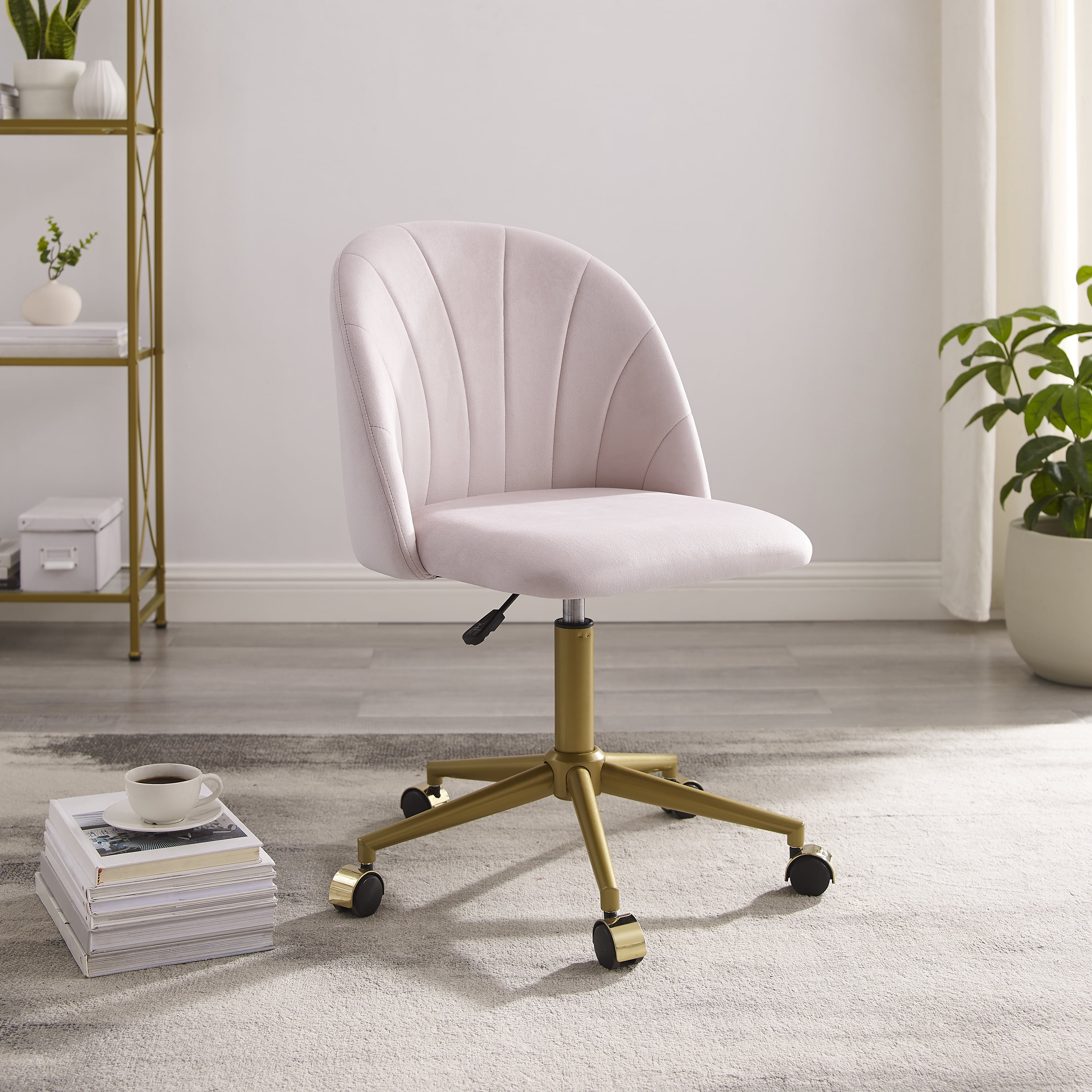 Linon Alondra Office Chair, Gold with Pink Velvet