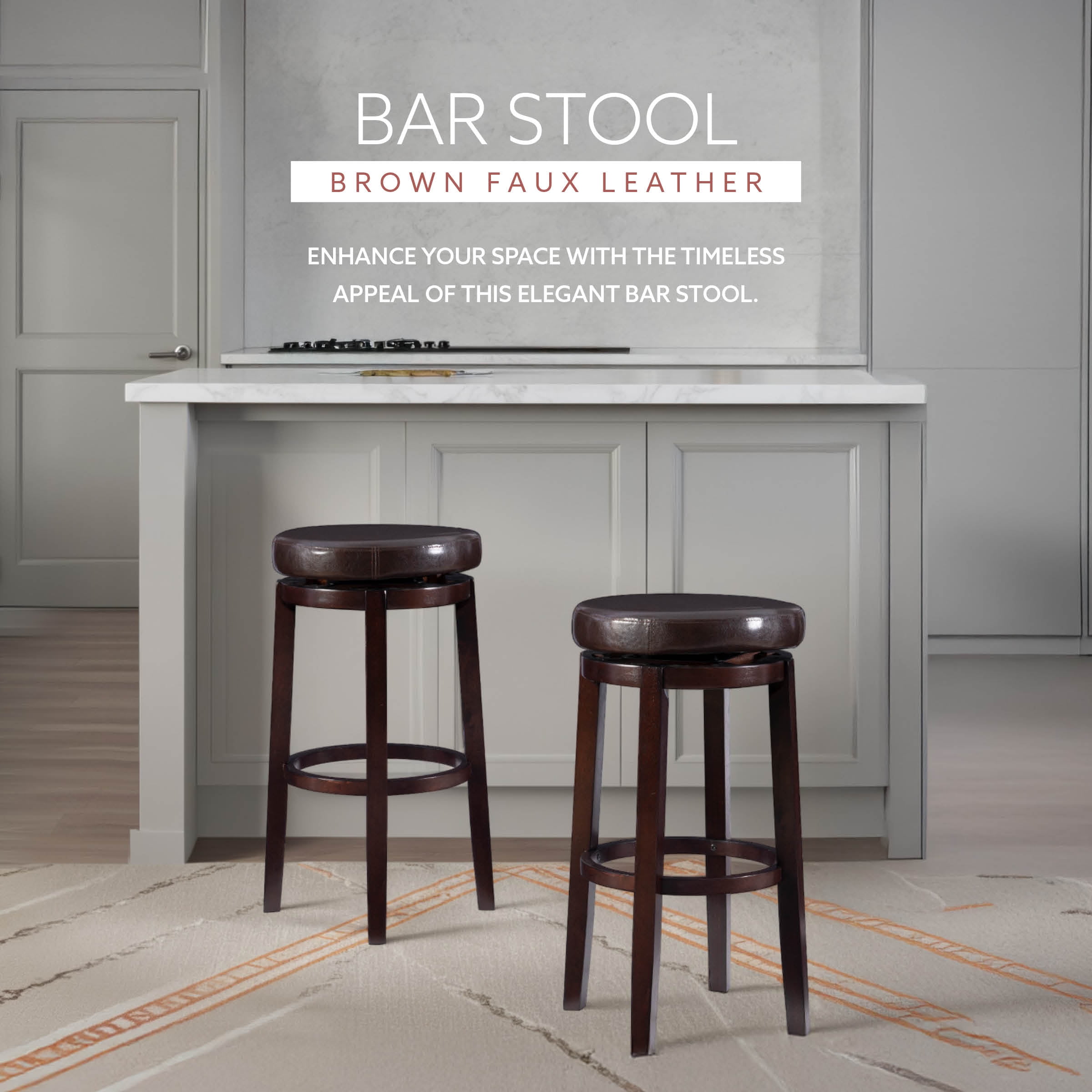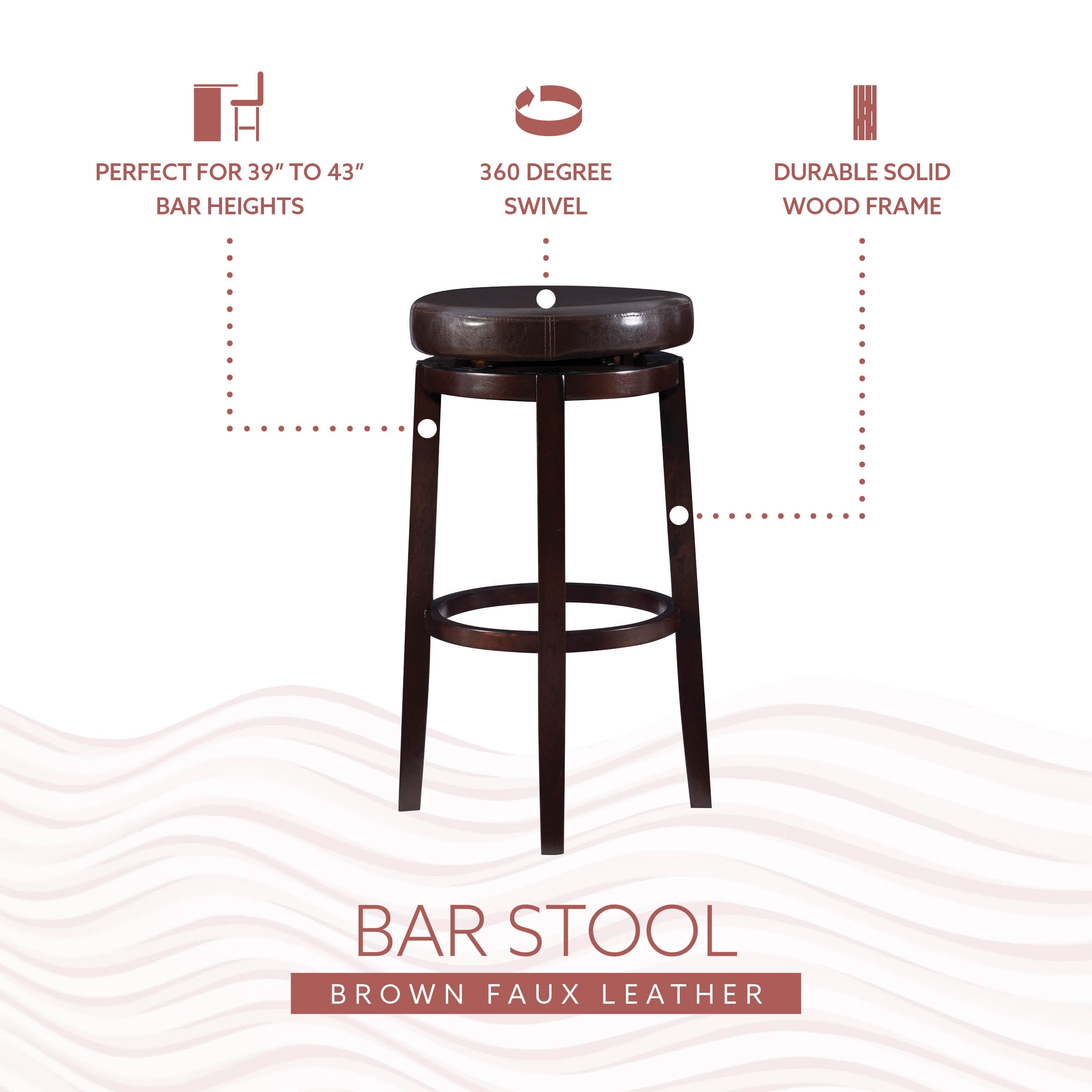 Linon Arlene 31″ Indoor Backless Swivel Bar Stool, Brown/Brown Faux Leather