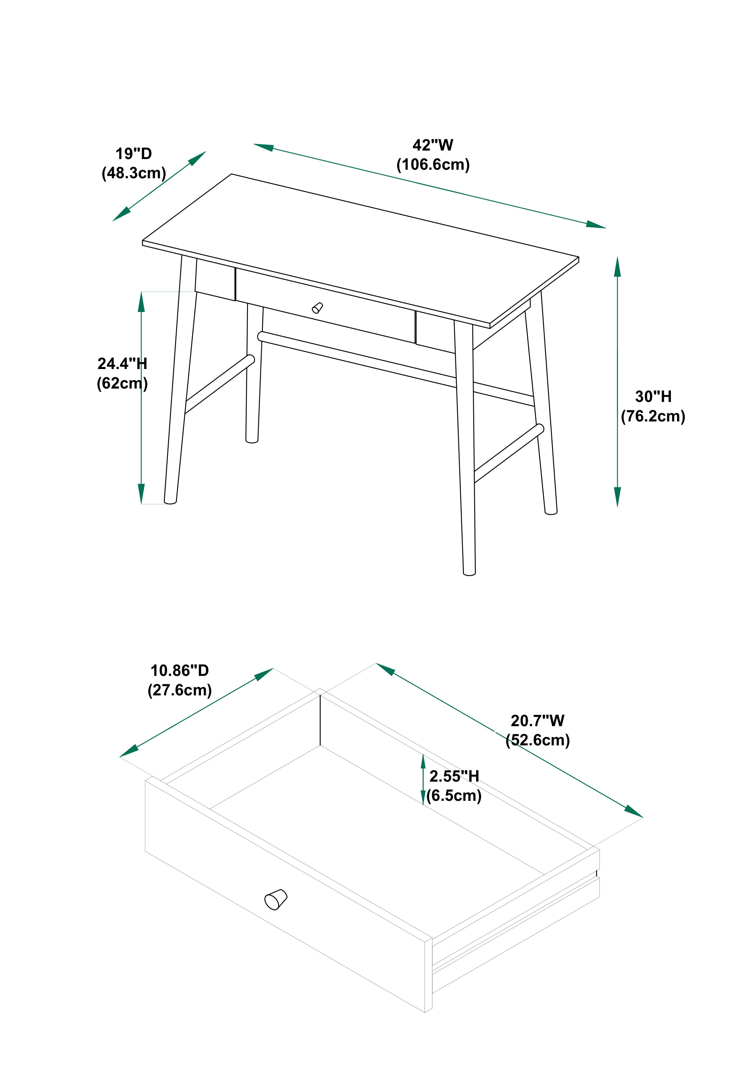 - Assembled Dimensions: 42″ W x 19″ D x 30″ H