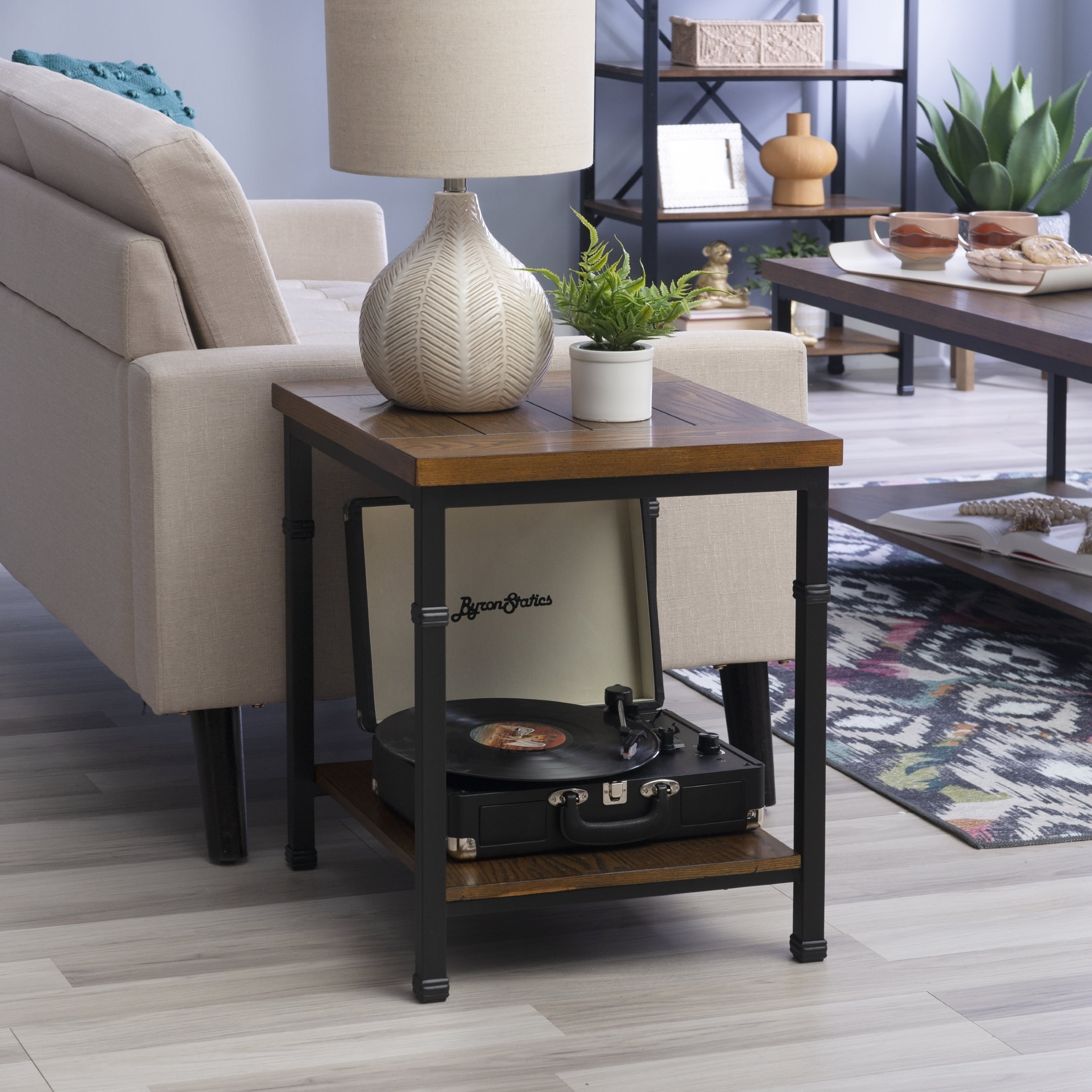 The Austin Collection features an industrial design and style that is on trend and easily versatile. The indoor End Table has a spacious top and bottom shelf for displaying and storing a variety of items. The Black Powder Coated Metal frame and Ash Veneer tops easily complete a variety of decor color schemes. Sturdy and durable construction. Table Dimensions: 20″ W x 18″ D x 22″ H, 24.2 lbs.