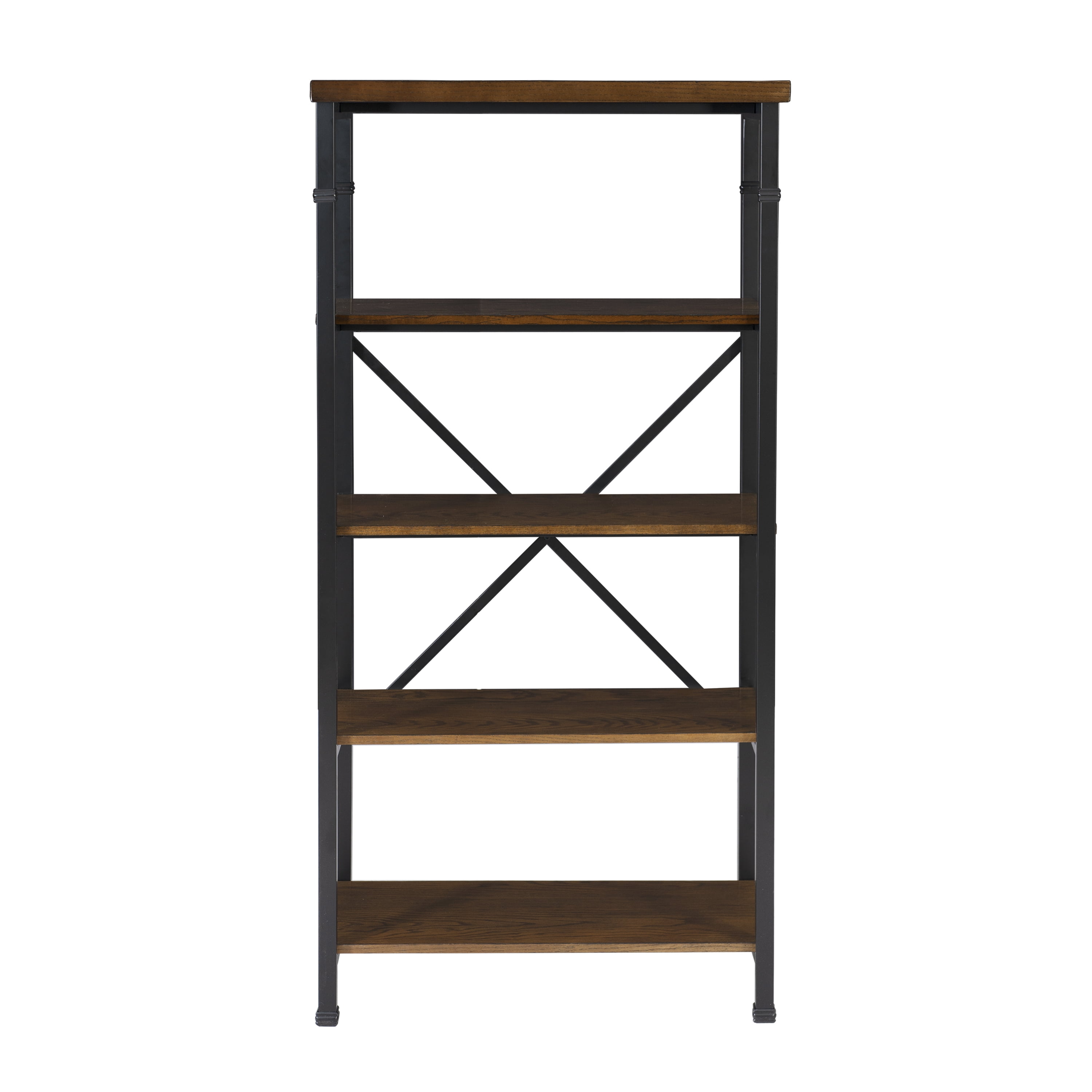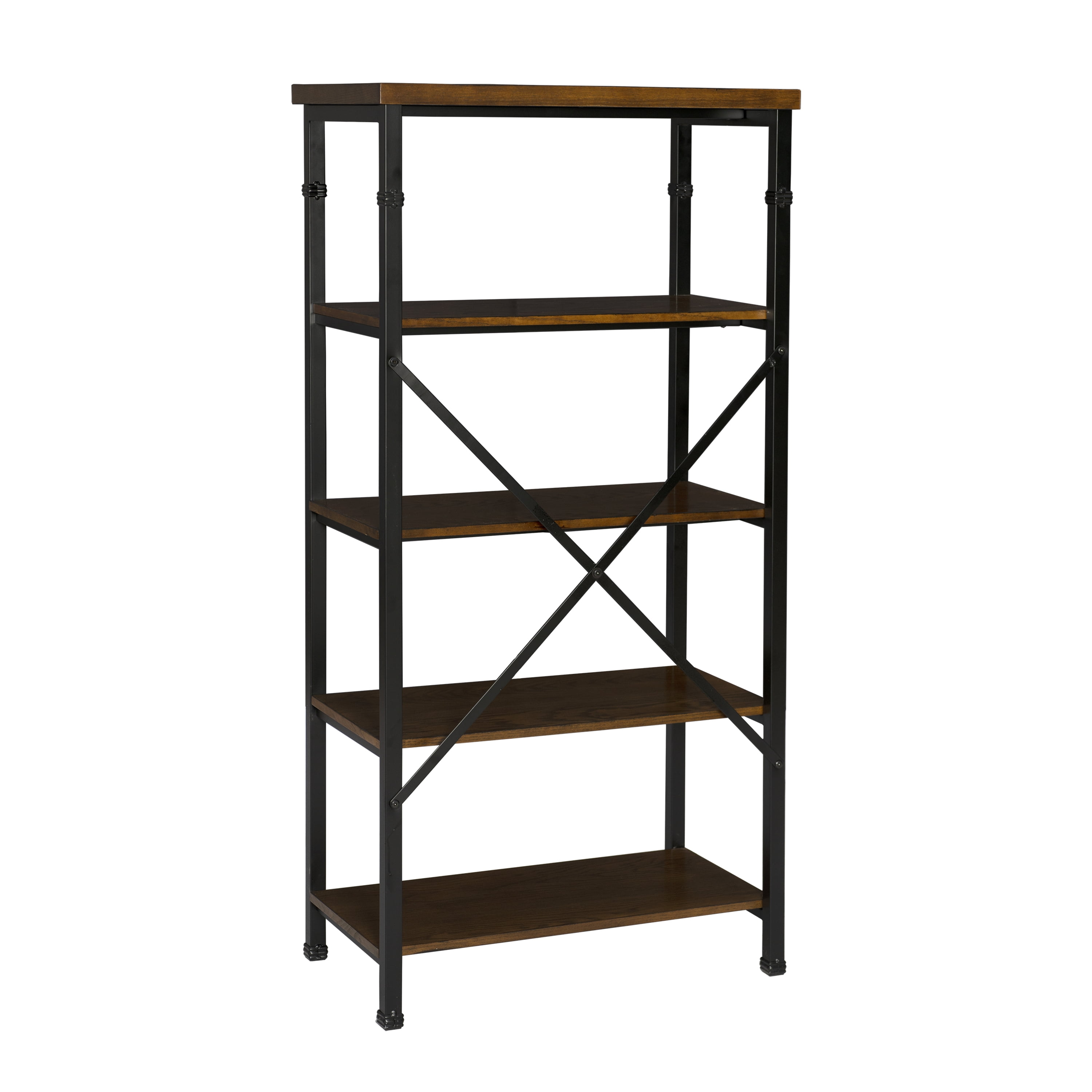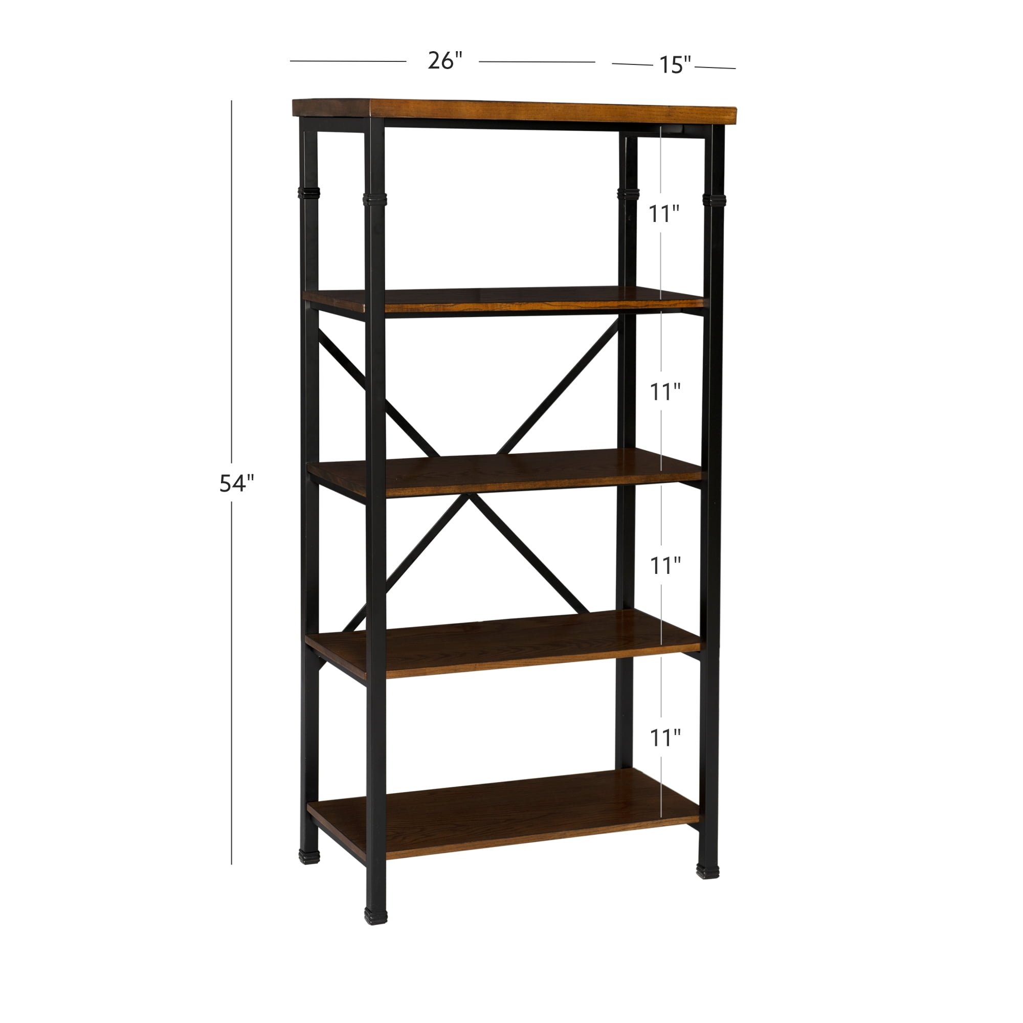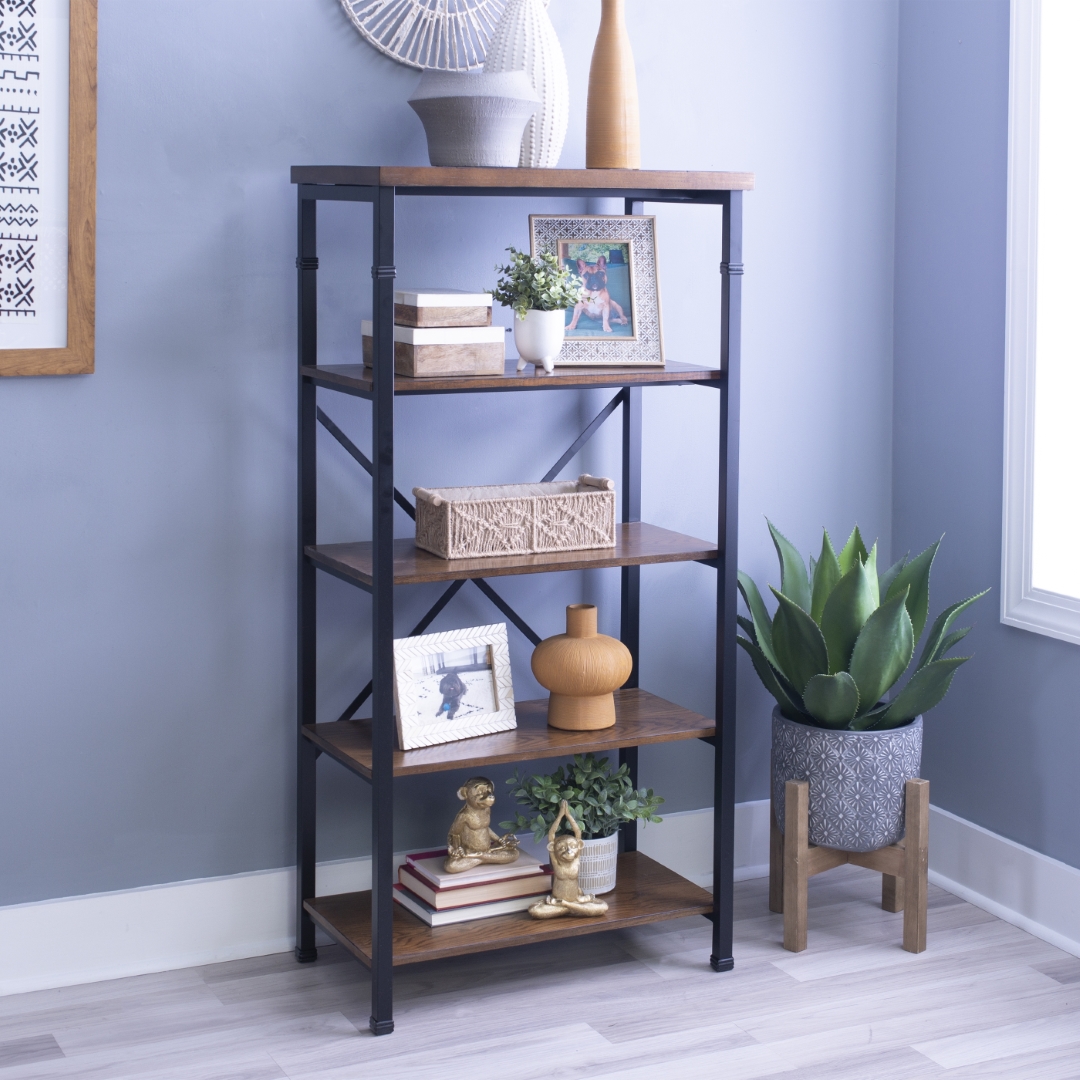 The Austin Collection features an industrial design and style that is on trend and easily versatile. The Bookcase has a four shelves perfect for displaying and storing a variety of items. The Black Powder Coated Metal frame and Ash Veneer tops easily complete a variety of decor color schemes. Sturdy and durable construction. Features: Crafted from MDF, Ash Veneer, Metal and Hardware Brown Stained Wood and Black Powder Coated Metal Finish Rustic Industrial design and style Sturdy, durable wood and metal frame Roomy desk top has a handsome planked design Efficient and stylish storage for the office, living room, bedroom or kitchen Specifications: Product Dimensions: 26″w x 15″d x 54″h Product Weight: 47.74 lbs Assembly Required: Some Assembly Required Weight Capacity: Top: 15 lbs, Shelves: 40 lbs