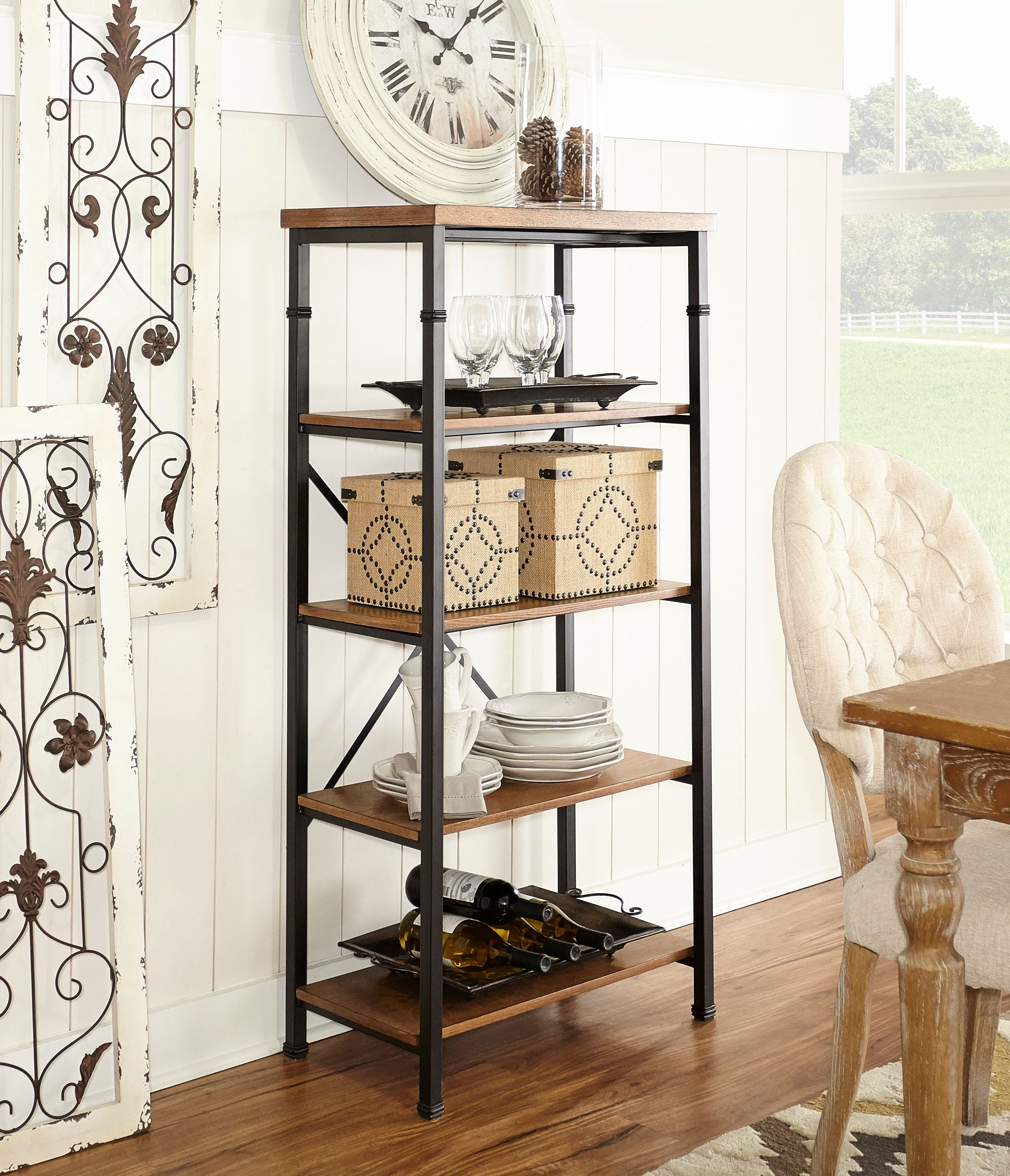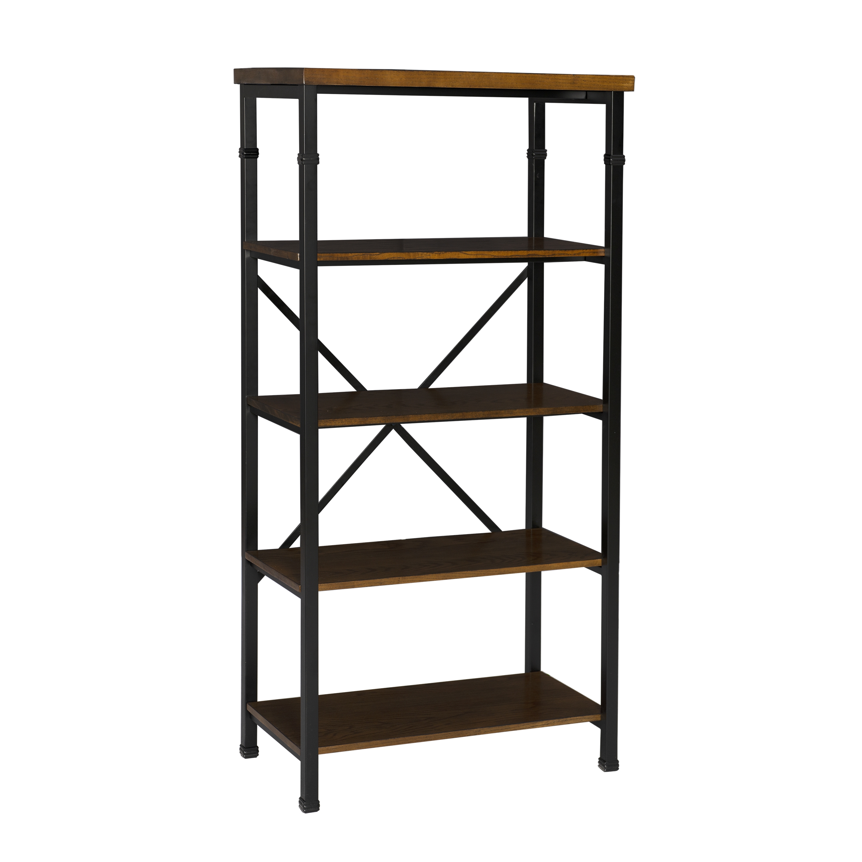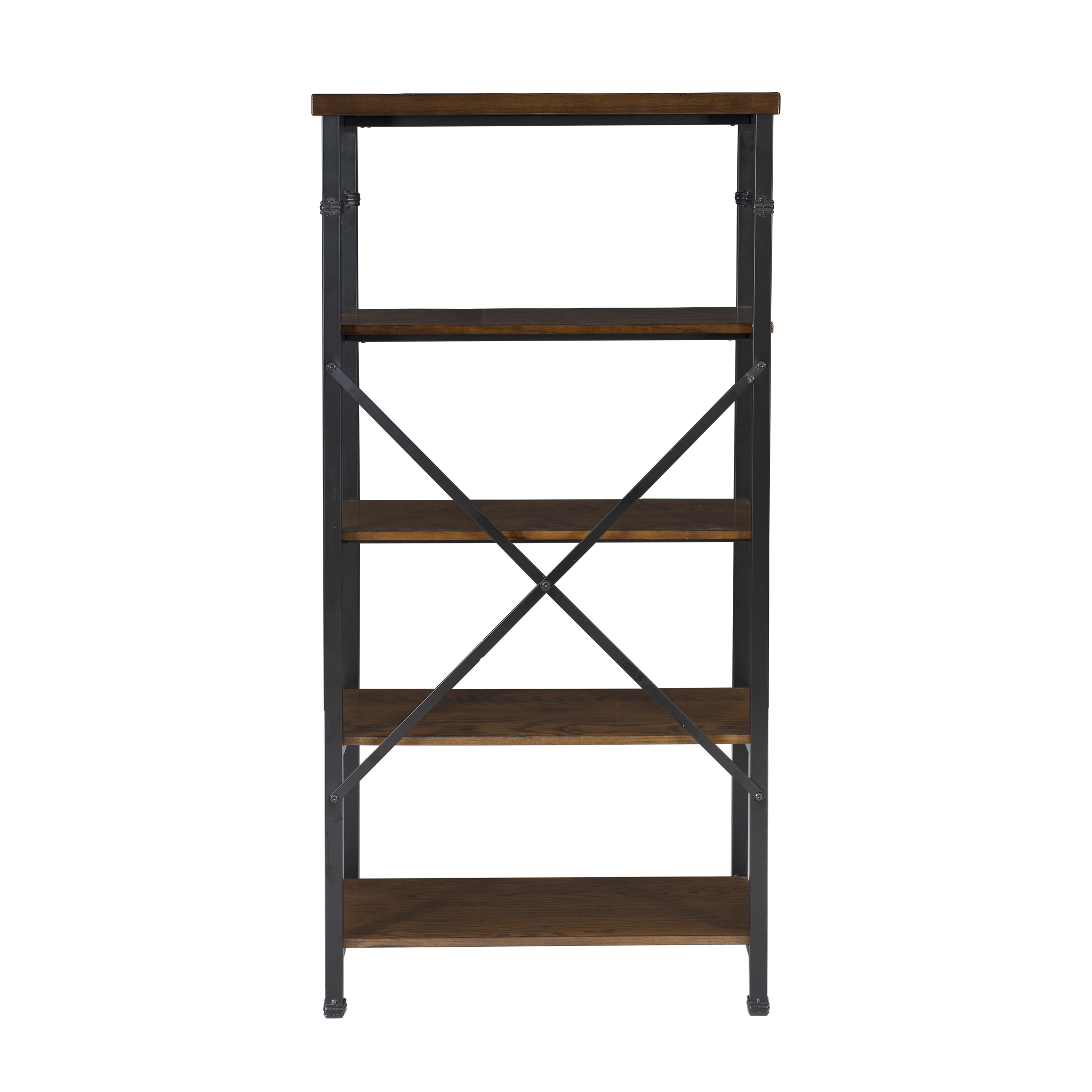 The Austin Collection features an industrial design and style that is on trend and easily versatile. The Bookcase has a four shelves perfect for displaying and storing a variety of items. The Black Powder Coated Metal frame and Ash Veneer tops easily complete a variety of decor color schemes. Sturdy and durable construction. Features: Crafted from MDF, Ash Veneer, Metal and Hardware Brown Stained Wood and Black Powder Coated Metal Finish Rustic Industrial design and style Sturdy, durable wood and metal frame Roomy desk top has a handsome planked design Efficient and stylish storage for the office, living room, bedroom or kitchen Specifications: Product Dimensions: 26″w x 15″d x 54″h Product Weight: 47.74 lbs Assembly Required: Some Assembly Required Weight Capacity: Top: 15 lbs, Shelves: 40 lbs