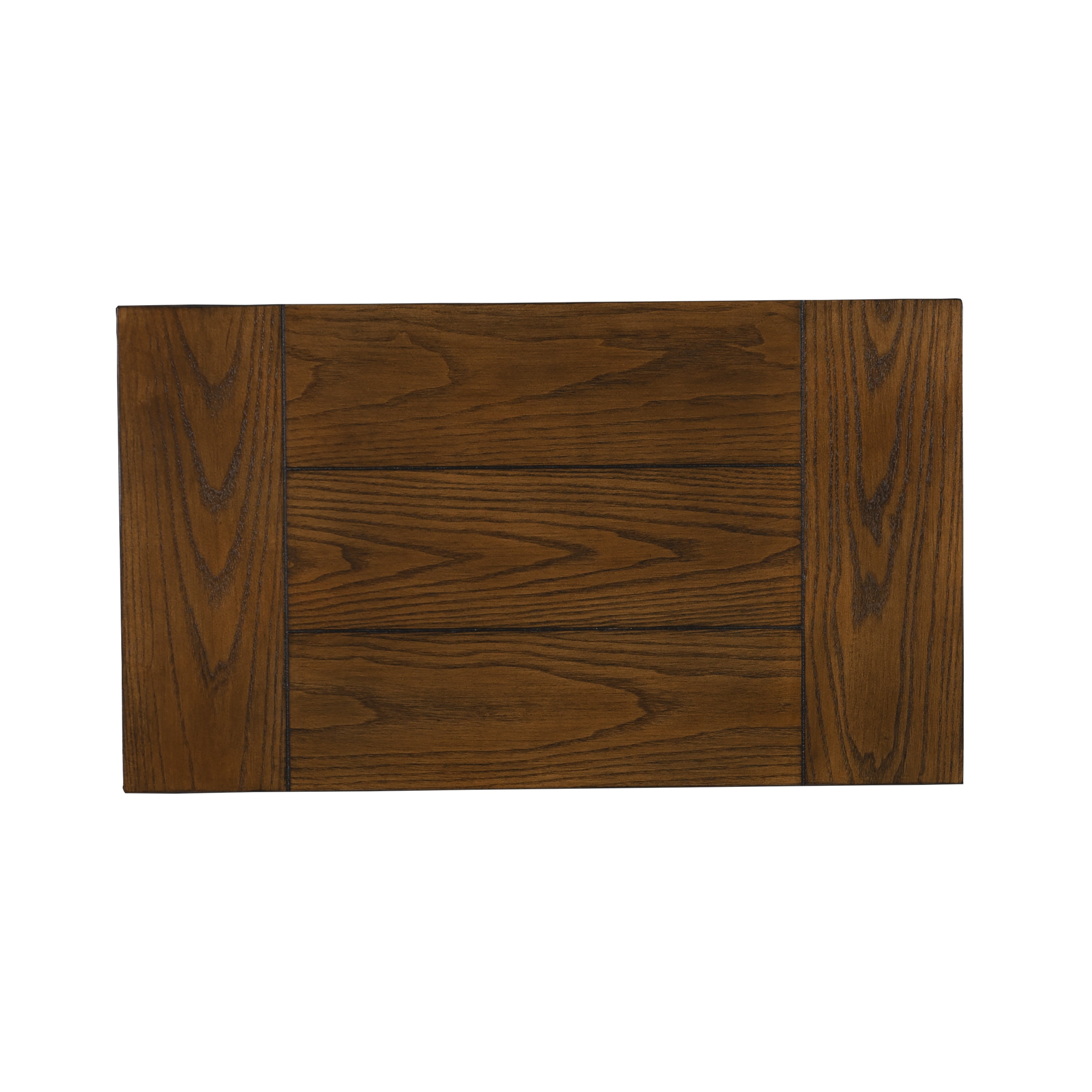 Crafted from MDF, Ash Veneer, Metal and Hardware Brown Stained Wood and Black Powder Coated Metal Finish Rustic Industrial design and style Sturdy, durable wood and metal frame Roomy desk top has a handsome planked design Efficient and stylish storage for the office, living room, bedroom or kitchen