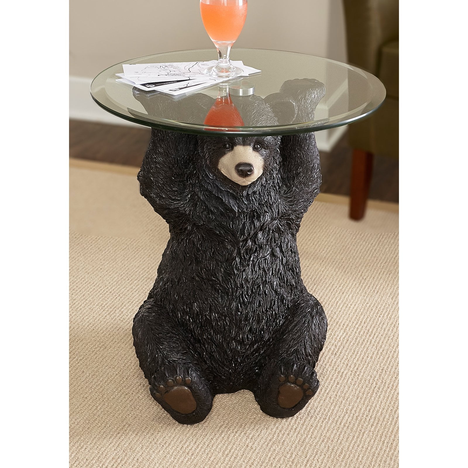 Add a unique accent to any room in your home with this whimsical Barney Bear Side Table. A clear, tempered glass top with a beveled edge is held up by the adorable hand-painted dark brown resin bear. A fun addition to a cabin or mountain home! Features: Crafted from MGO (Resin), Tempered Glass and Plastic Dark brown hand painted finish Features a beveled edge tempered glass top Perfect for a cabin or mountain home Unique decor addition Great for placing by a sofa or accent chair This item will ship in multiple cartons. Cartons may arrive separately Specifications: Assembly Required: Some Assembly Required Product Dimensions: 20″w x 20″d x 22.75″h Product Weight: 33.12 lbs Weight Capacity: 30 lbs