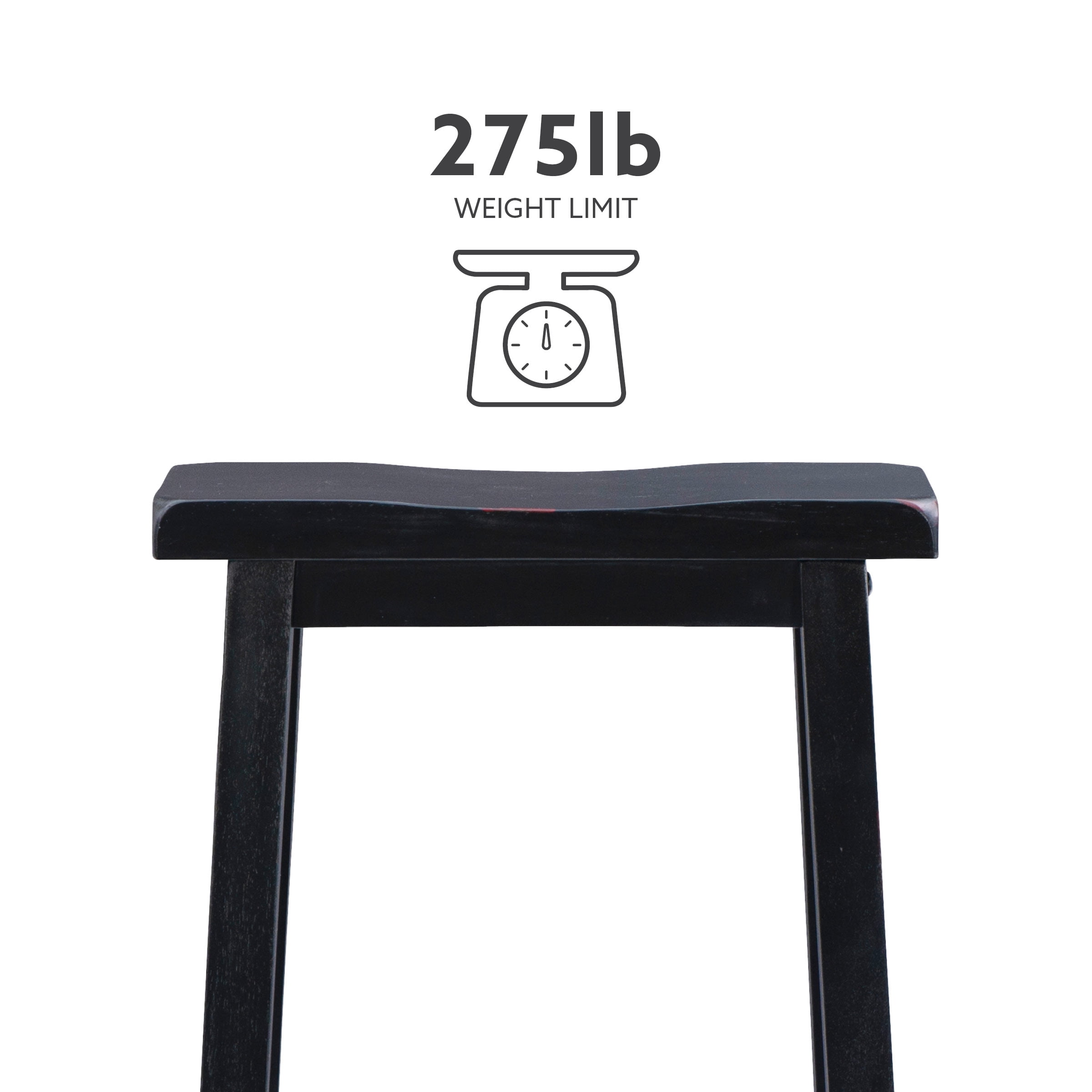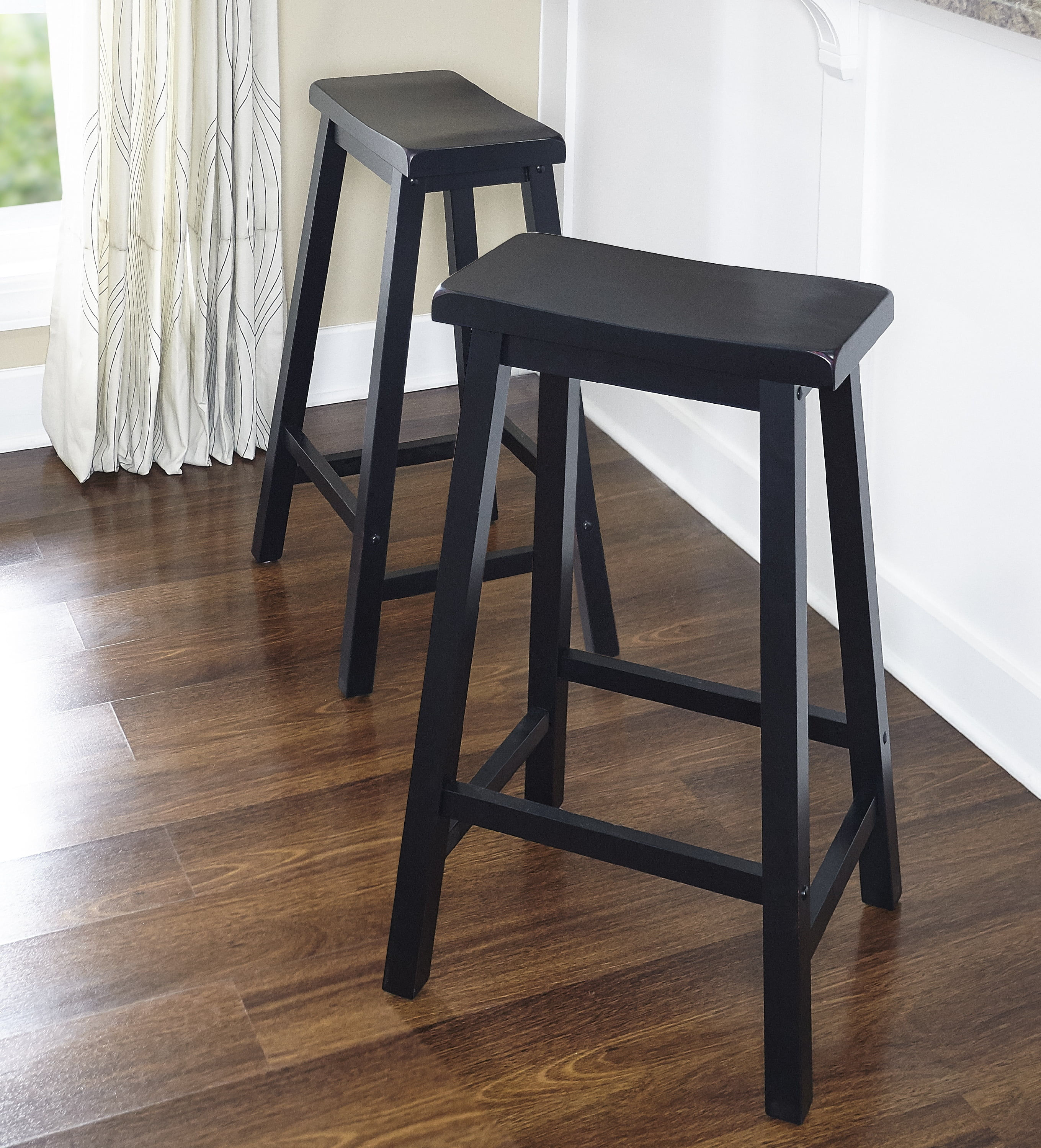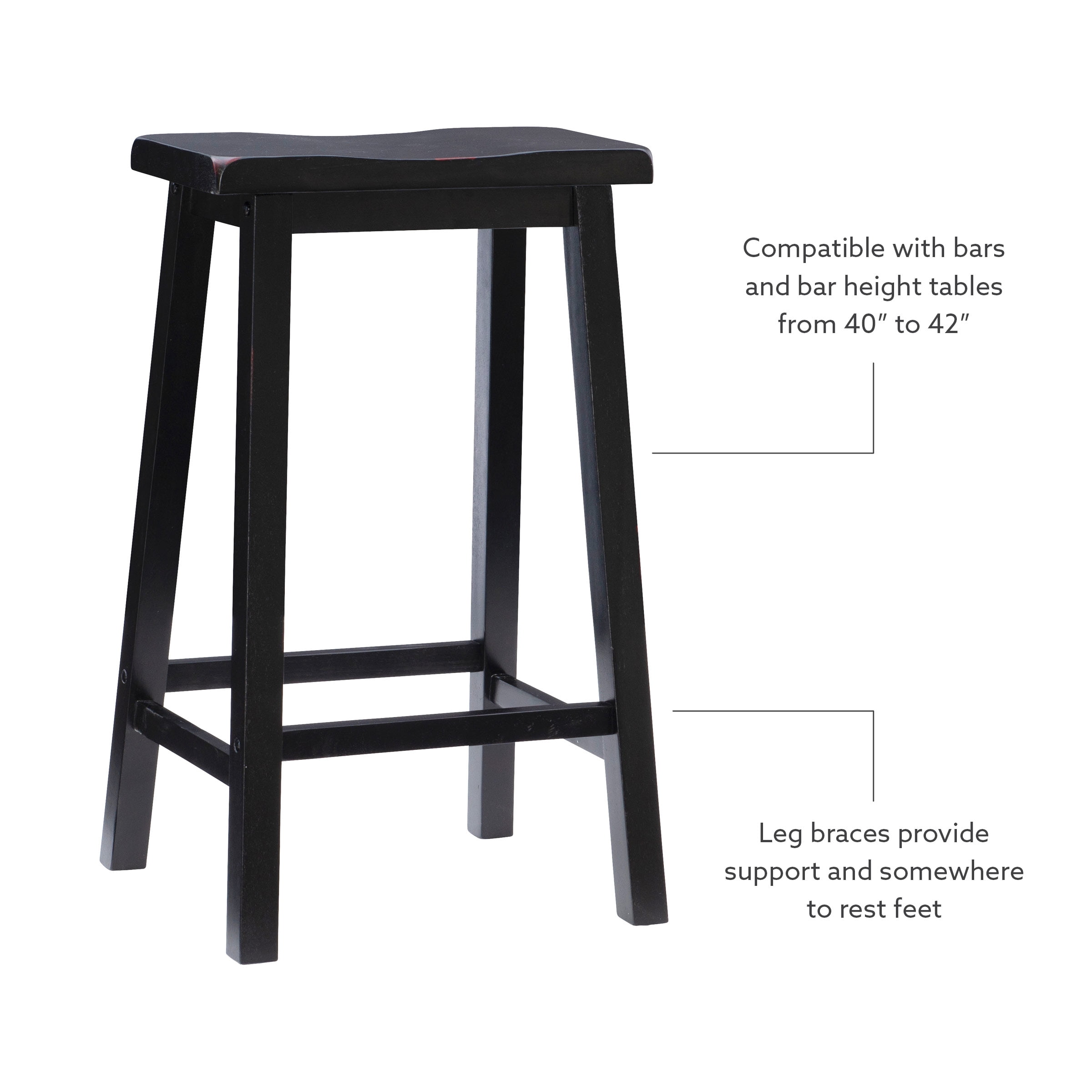 Comfortable seating for meal occasions and a place for guests to relax, this barstool is a stylish value. A backless design, it can go wherever needed in a home. The sturdy rubberwood stool has a 350 lb. Weight capacity and 29″ high seat that fits with bars and bar height counters and tables around 40″ to 42″ high. The fashionable antique black finish means it can enhance most room decor, and braces support the fashionably angled legs, also acting as footrests. Features: Crafted from Rubberwood Antique Black with Sand Through Terra Cotta Finish Compatible with bars and bar height tables and counters ranging 40″ to 42″ high Lightly distressed Antique Black finish Leg braces provide support and somewhere to rest feet Transitional style with rustic and modern influences suits most any room Bar Height Specifications: Assembly Required: Some Assembly Required Product Dimensions: 18.13″w x 15.75″d x 29″h Product Weight: 14.5 lbs Seat Height: 29″ Weight Capacity: 350 lbs