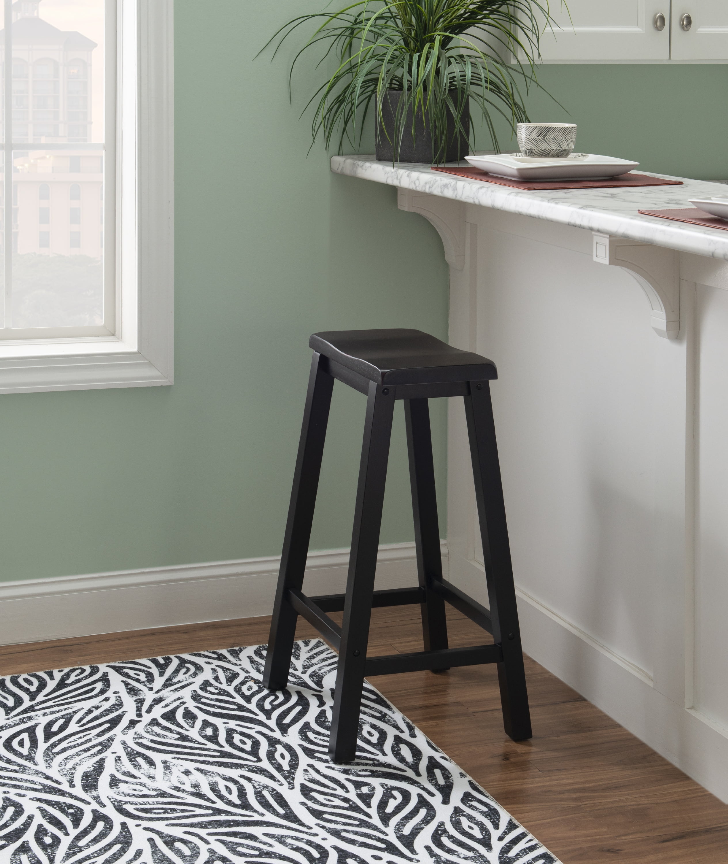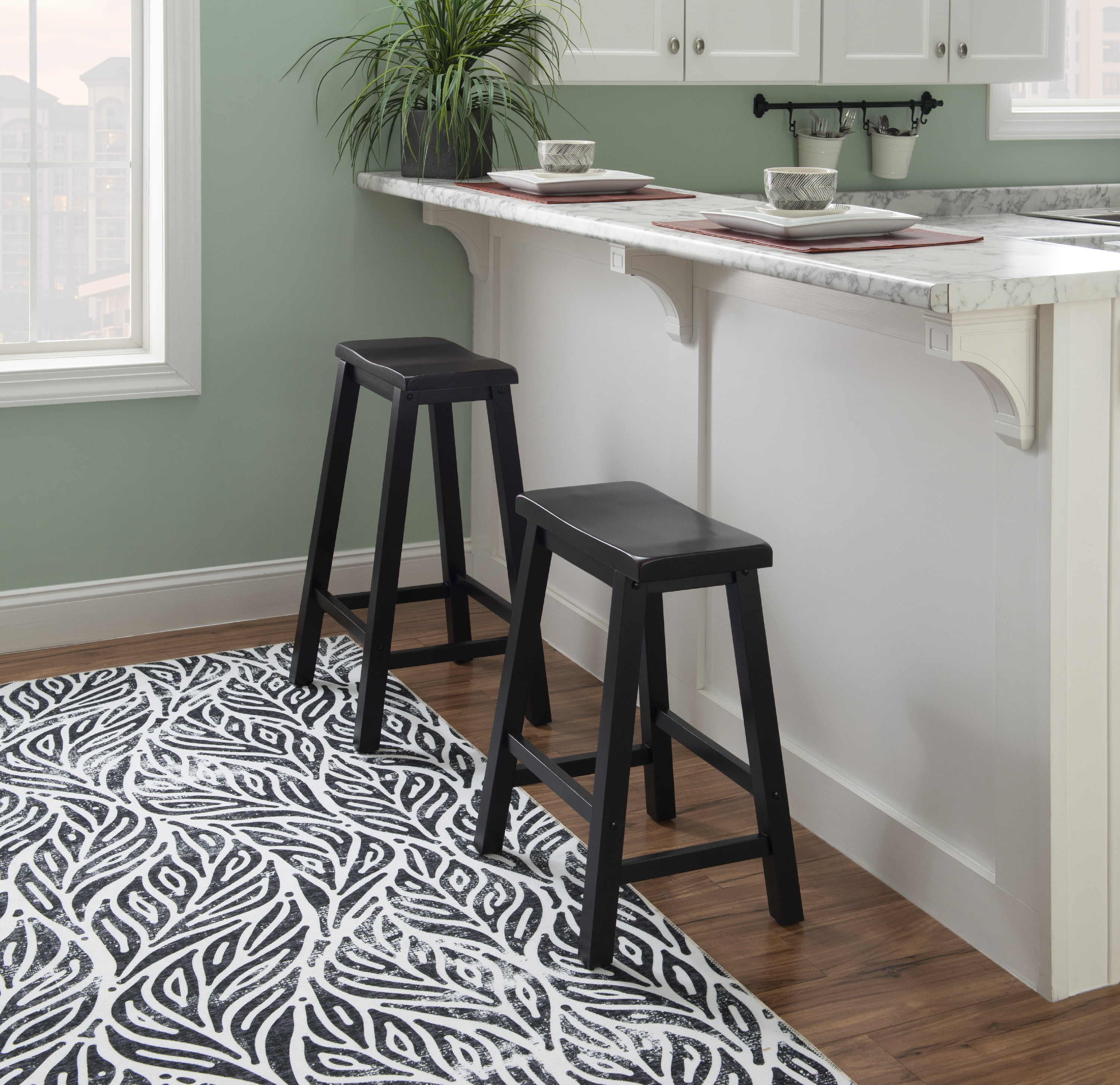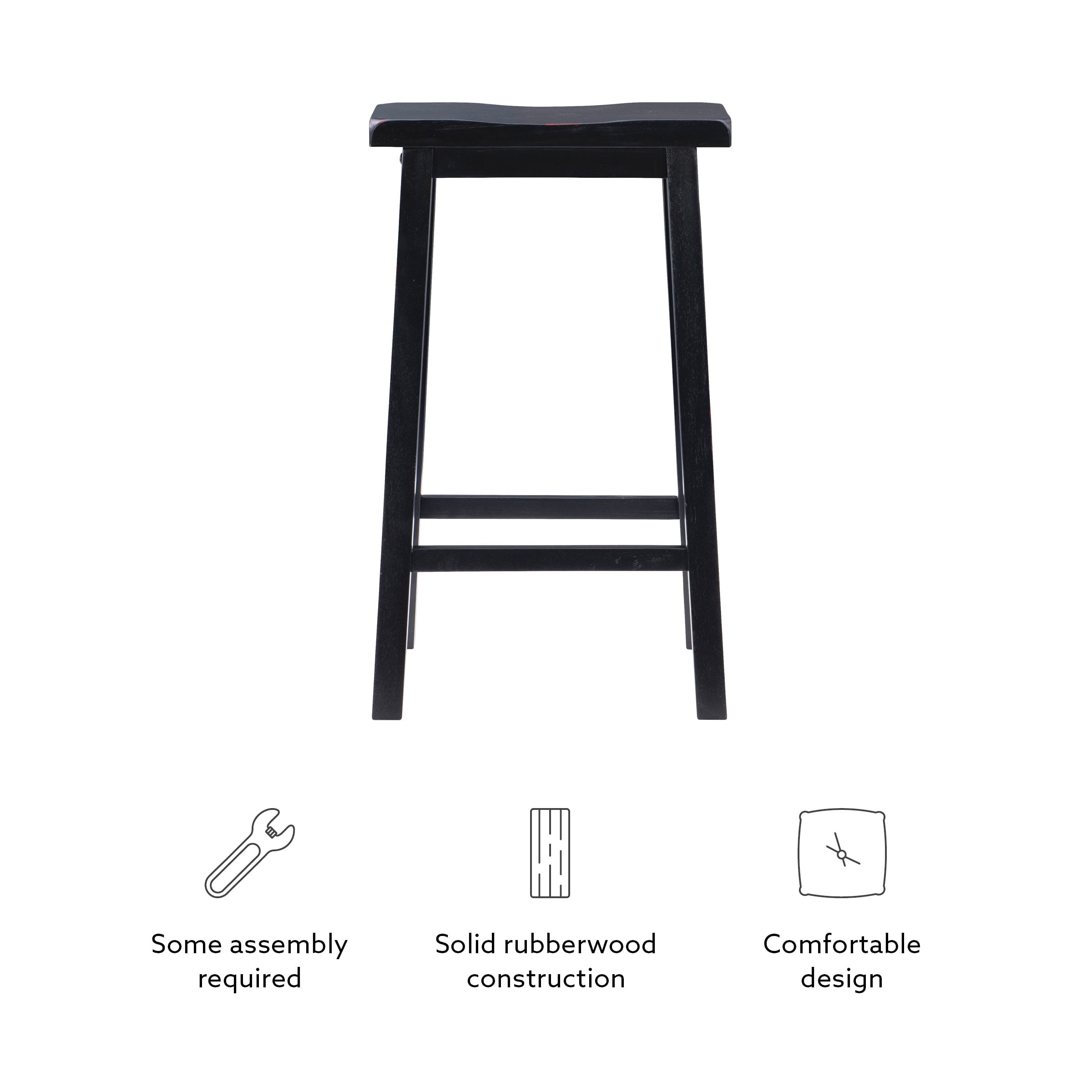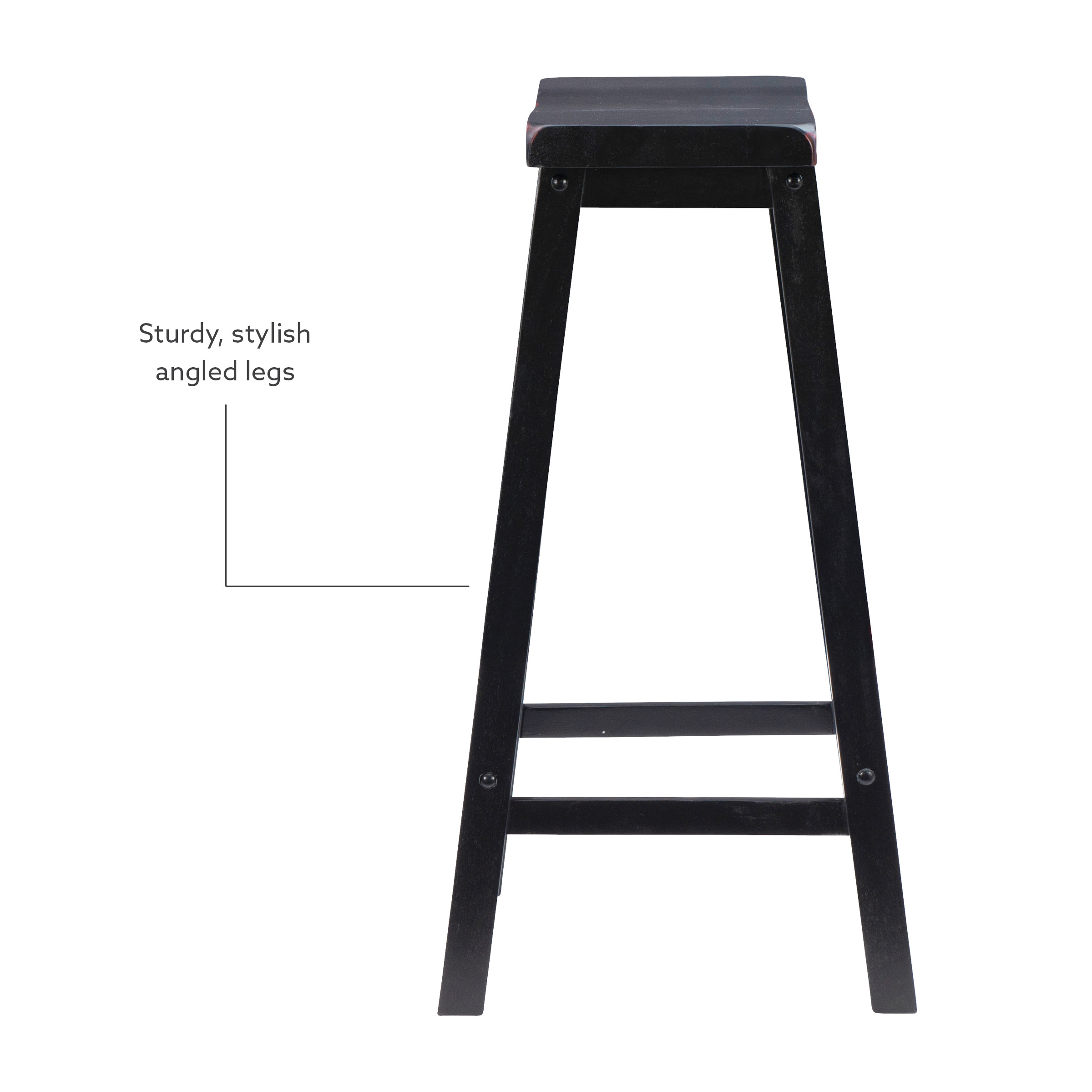 Comfortable seating for meal occasions and a place for guests to relax, this barstool is a stylish value. A backless design, it can go wherever needed in a home. The sturdy rubberwood stool has a 350 lb. Weight capacity and 29″ high seat that fits with bars and bar height counters and tables around 40″ to 42″ high. The fashionable antique black finish means it can enhance most room decor, and braces support the fashionably angled legs, also acting as footrests. Features: Crafted from Rubberwood Antique Black with Sand Through Terra Cotta Finish Compatible with bars and bar height tables and counters ranging 40″ to 42″ high Lightly distressed Antique Black finish Leg braces provide support and somewhere to rest feet Transitional style with rustic and modern influences suits most any room Bar Height Specifications: Assembly Required: Some Assembly Required Product Dimensions: 18.13″w x 15.75″d x 29″h Product Weight: 14.5 lbs Seat Height: 29″ Weight Capacity: 350 lbs