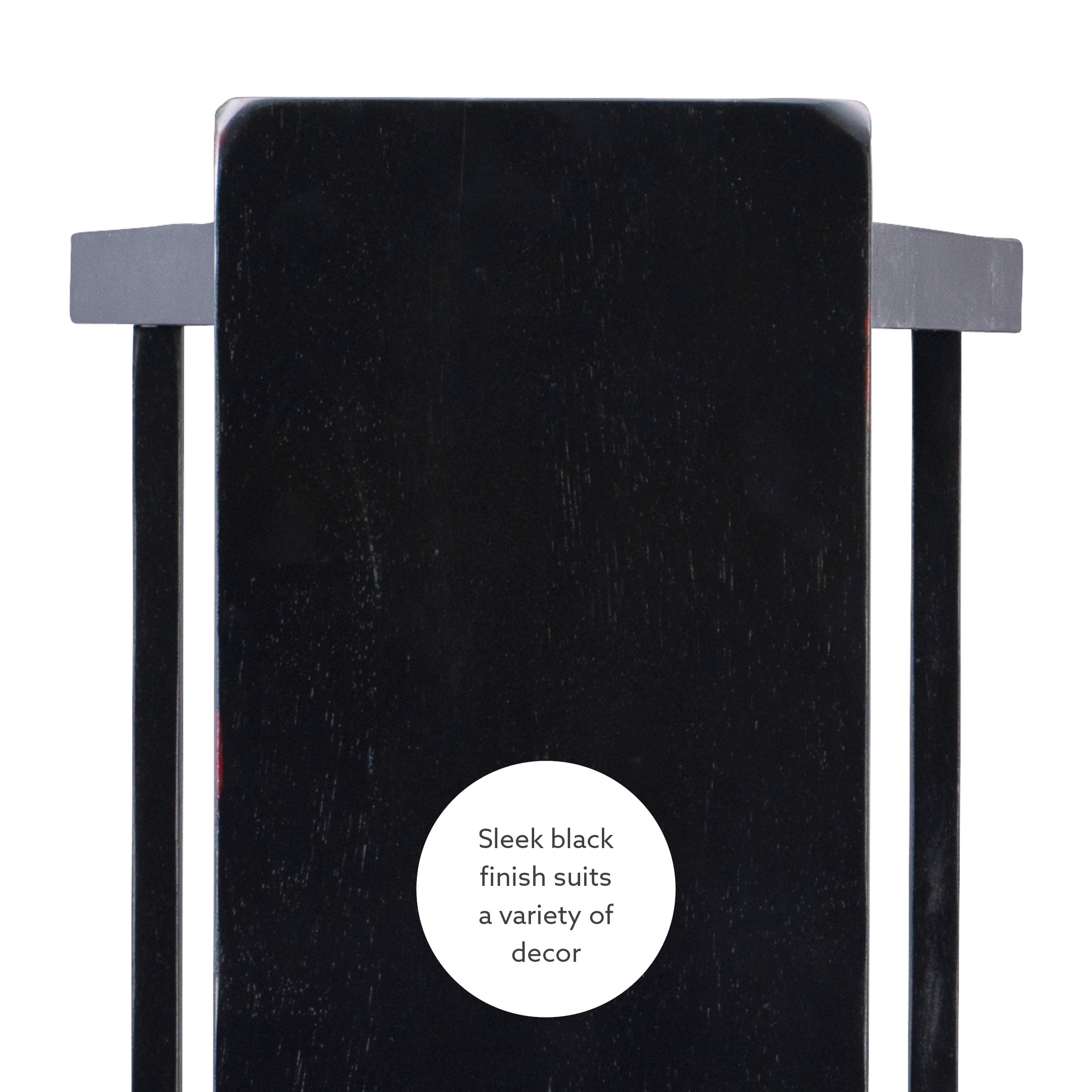 Crafted from Rubberwood Antique Black with Sand Through Terra Cotta Finish Compatible with bars and bar height tables and counters ranging 40″ to 42″ high Lightly distressed Antique Black finish Leg braces provide support and somewhere to rest feet Transitional style with rustic and modern influences suits most any room Bar Height