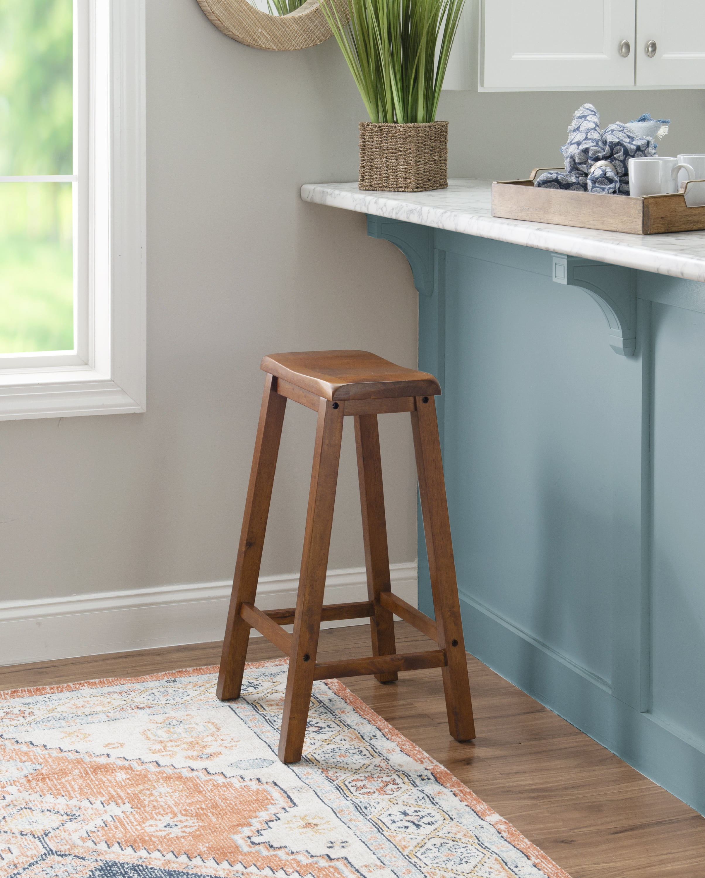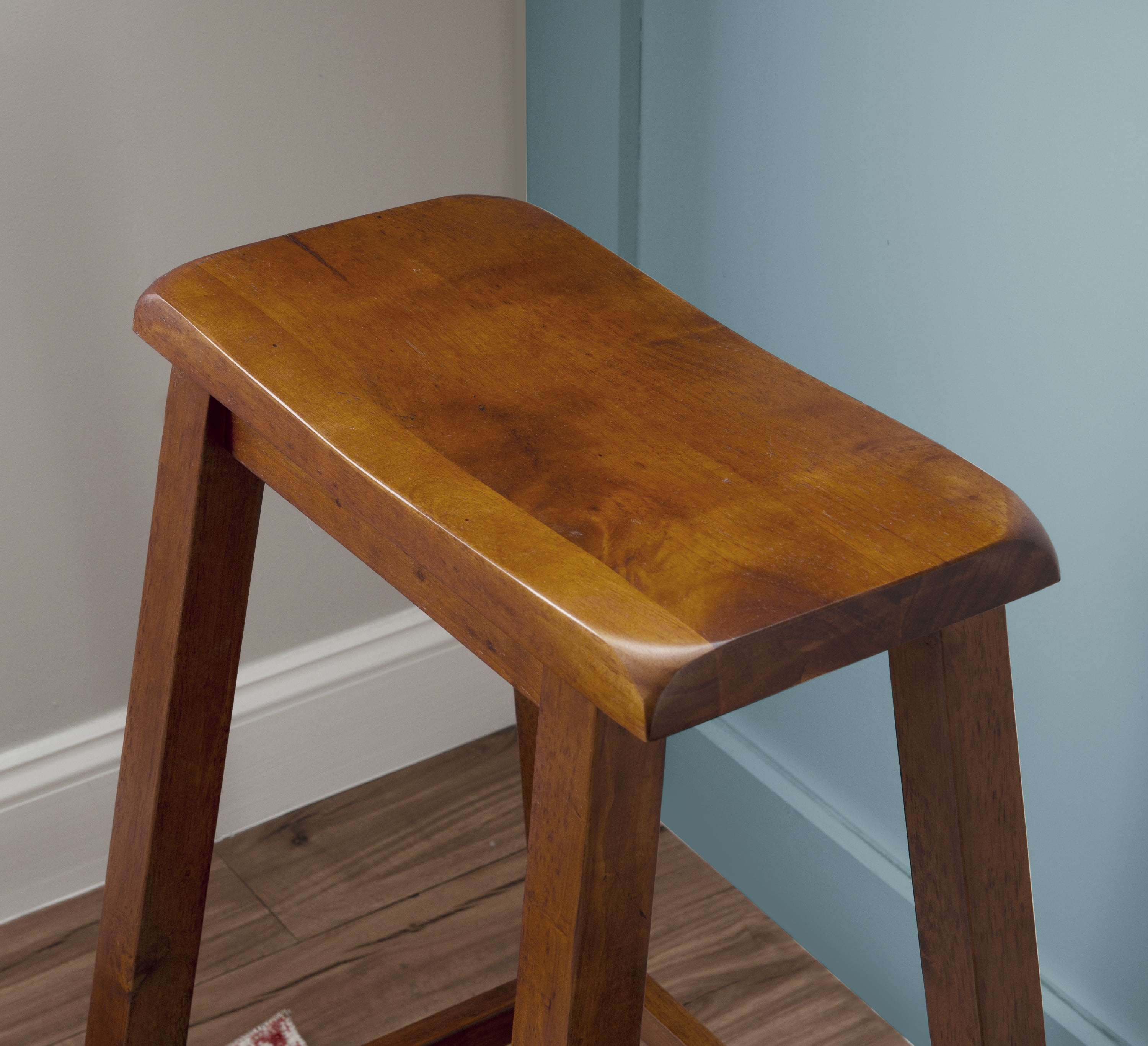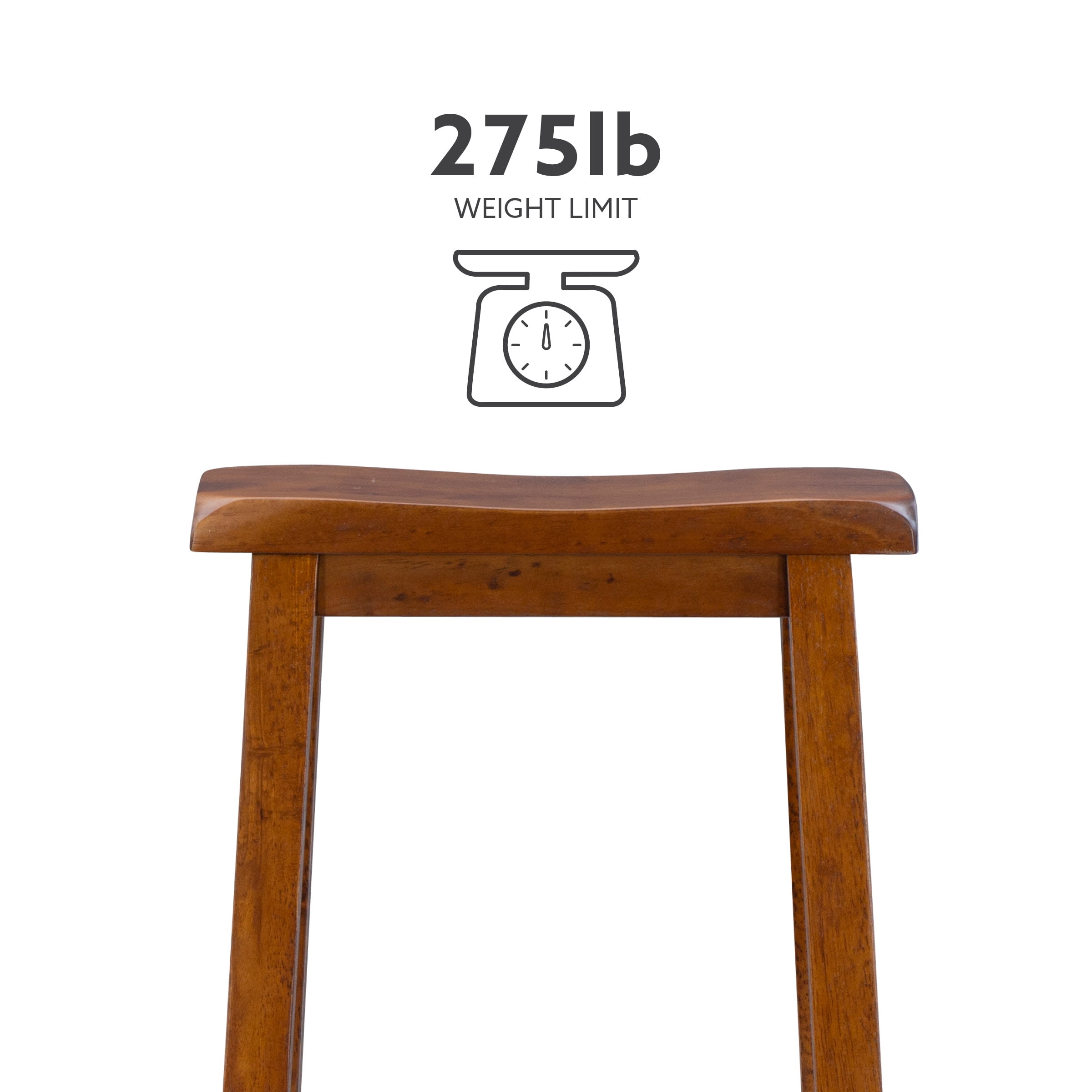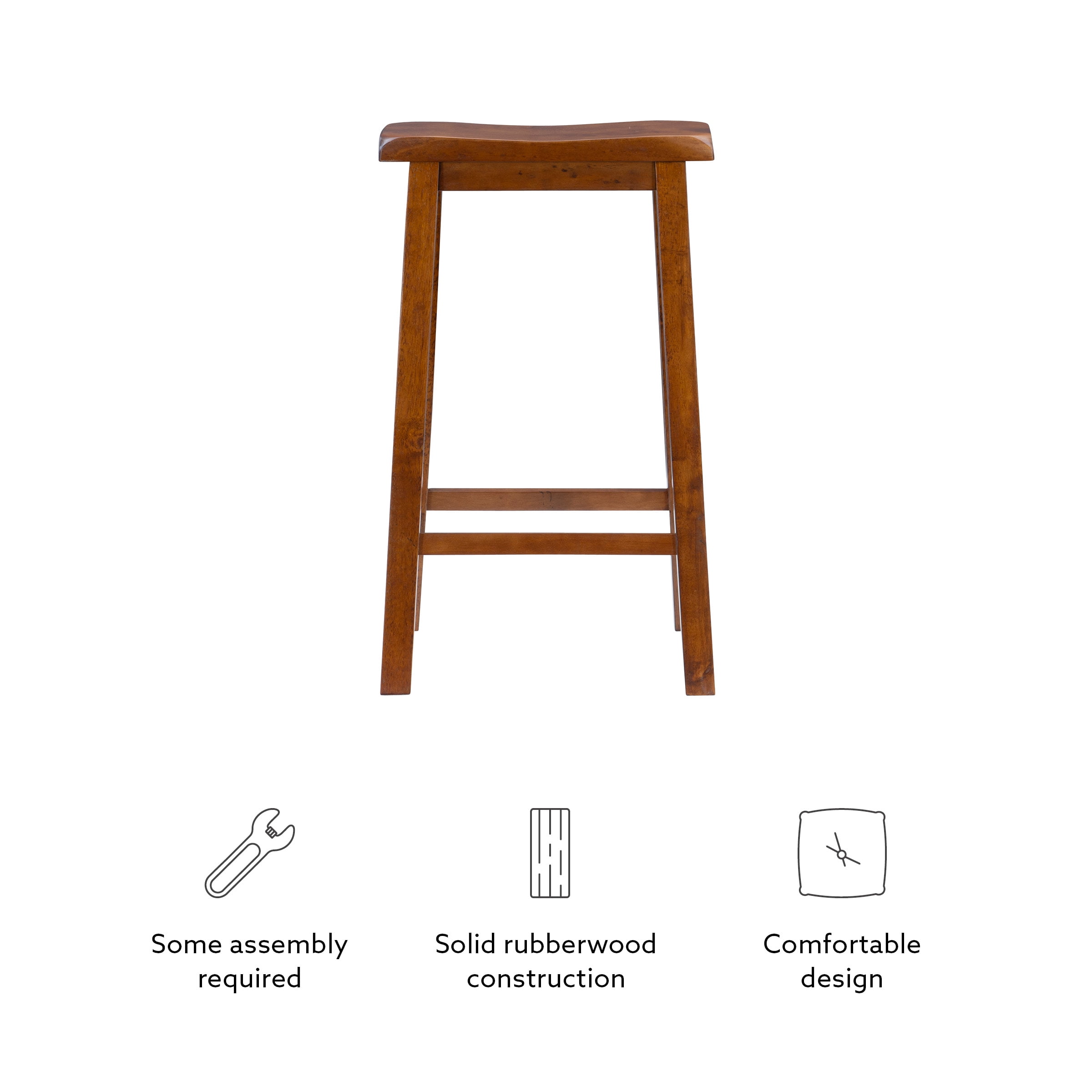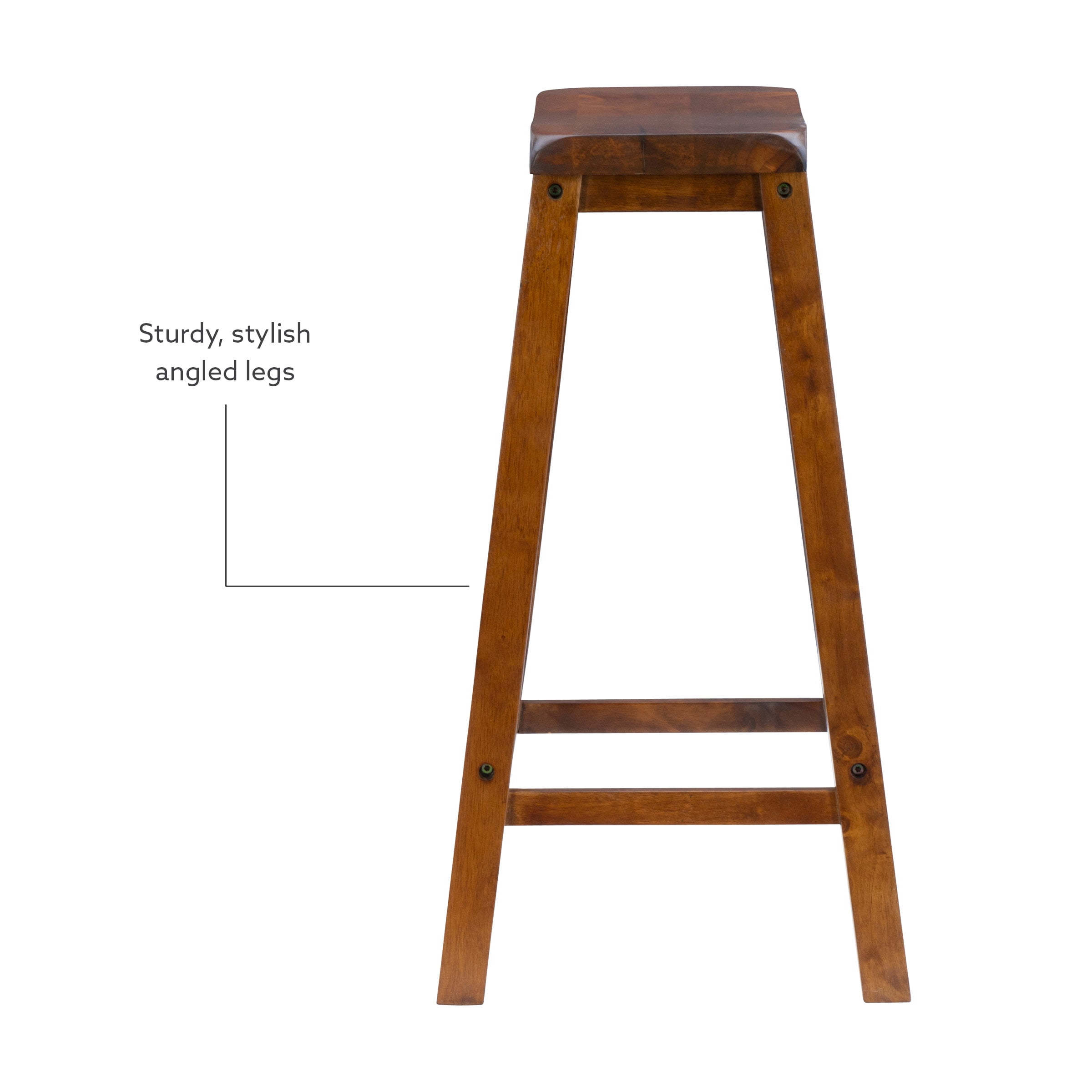 Comfortable seating for meal occasions and a place for guests to relax, this barstool is a stylish value. A backless design, it can go wherever needed in a home. The sturdy rubberwood stool has a 350 lb. Weight capacity and 29″ high seat that fits with bars and bar height counters and tables around 40″ to 42″ high. The fashionable honey brown finish means it can enhance most any room decor, and braces support the fashionably angled legs, also acting as footrests. Features: Crafted from Rubberwood Distressed “Honey Brown” Finish Compatible with bars and bar height tables and counters ranging 40″ to 42″ high Honey brown stained finish suits casual and classic decors Leg braces provide support and somewhere to rest feet Transitional style with modern and country influences suits most any room Sturdy solid wood angled legs and 29″ seat height Specifications: Assembly Required: Some Assembly Required Product Dimensions: 18.13″w x 15.75″d x 29″h Product Weight: 14.5 lbs Seat Height: 29″ Weight Capacity: 350 lbs