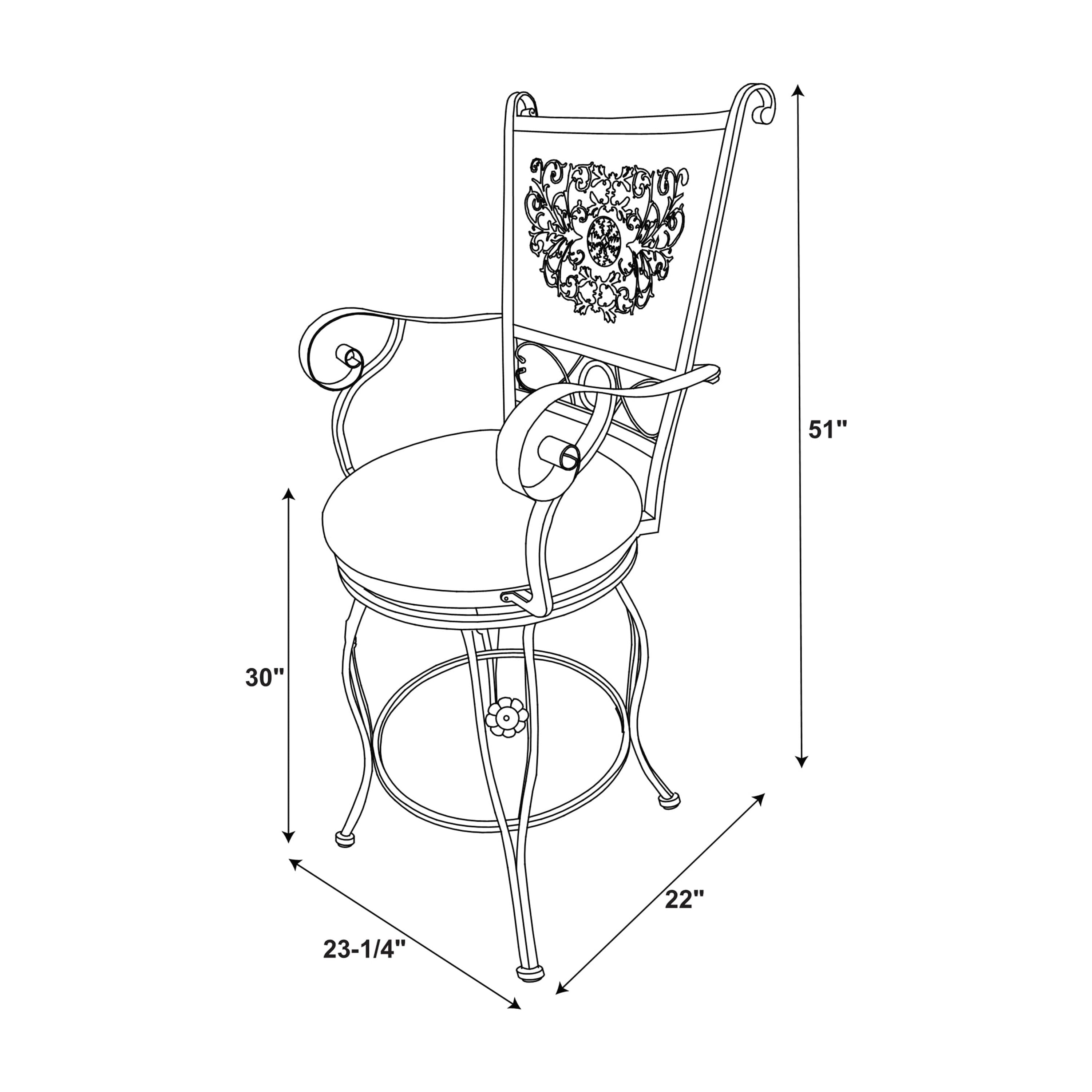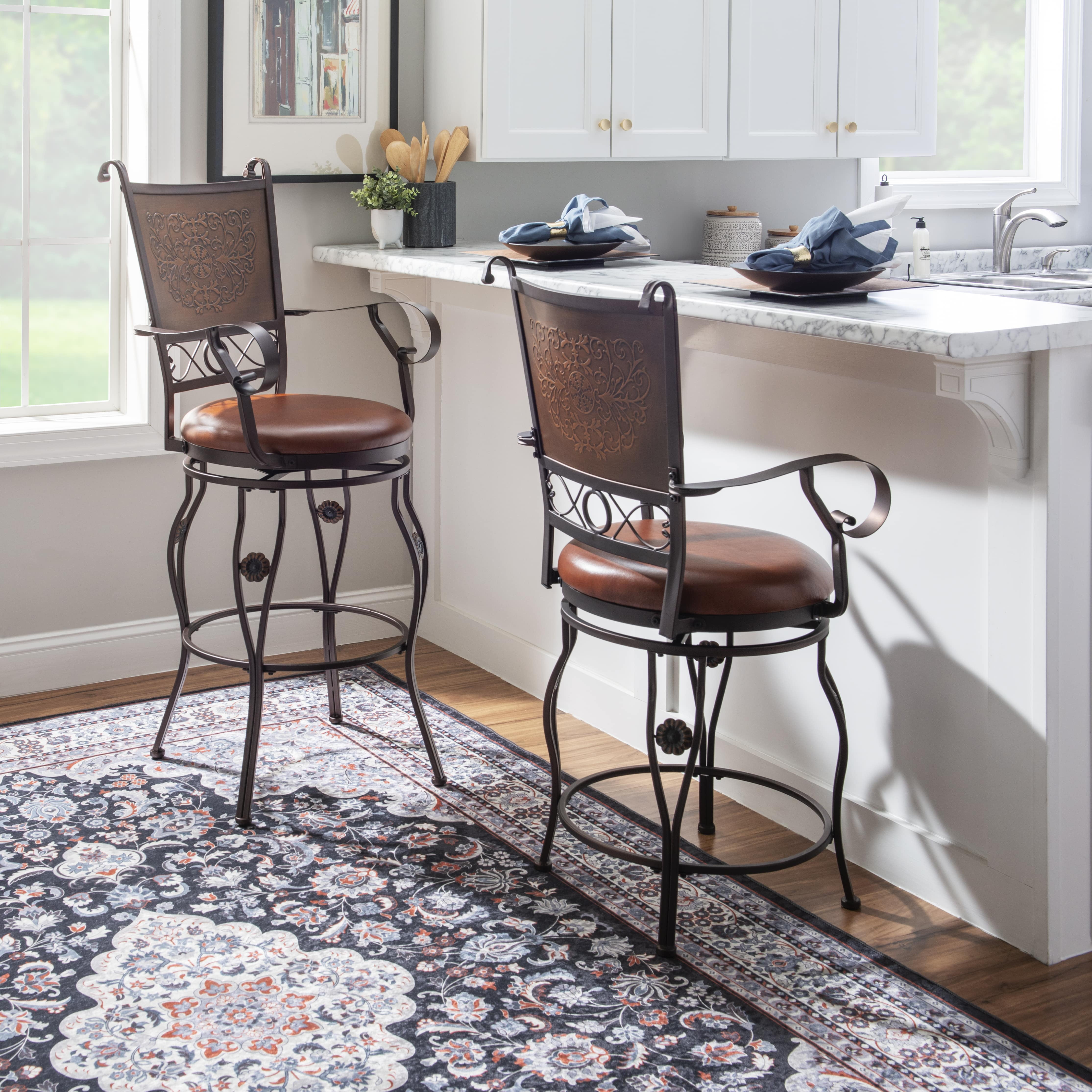 Everyone can sit comfortably when they have an oversized 400 lb. weight capacity Big & Tall Barstool at their disposal. The plush faux leather upholstered seat has a generous swivel design, optimizing comfort. A stamped back enhances the look while the curved arms and legs provide a charming delicacy that balances the more robust features. Suitable for a bar, bar height counter, table or kitchen island around 40″ to 42″ high, this Bronze finish metal stool is stylish and accommodating anywhere you put it! Features: Crafted from Steel, Particleboard, Plywood, Foam and Faux Leather Rich Bronze Powder Coated Finish Compatible with bars and bar height tables and counters ranging 40″ to 42″ high 360 degree swivel spins for easy seat access and following surrounding conversations Warm rust faux leather seat is cushioned, comfortable and easy to clean Round metal brace acts as a footrest and adds strengthens to the stool Bar Height Simple Assembly Required Specifications: Assembly Required: Some Assembly Required Product Dimensions: 23.62″w x 23.03″d x 50.59″h Product Weight: 32.56 lbs Seat Height: 30″ Seat Dimensions: 19″ Diameter Weight Capacity: 400 lbs