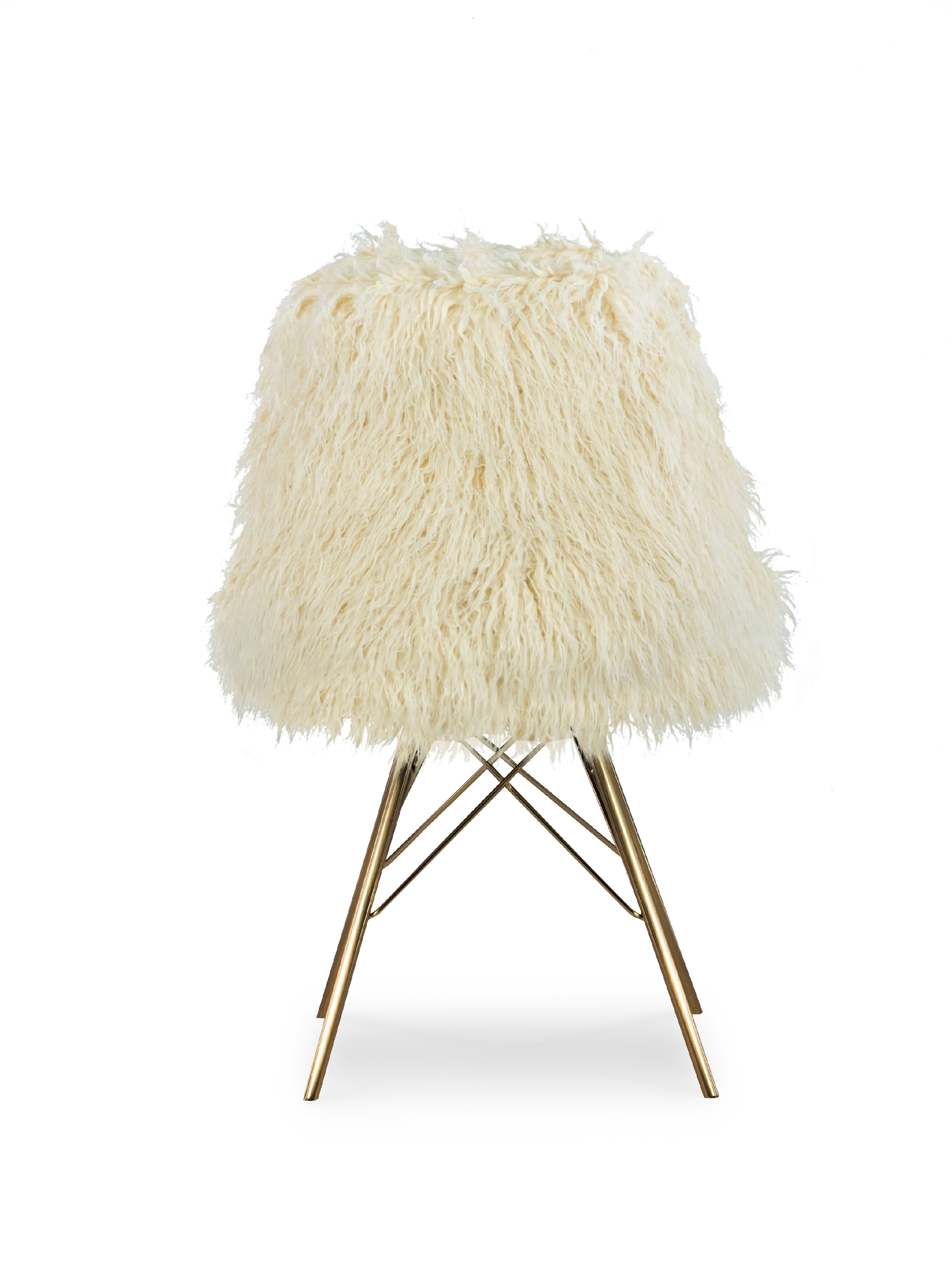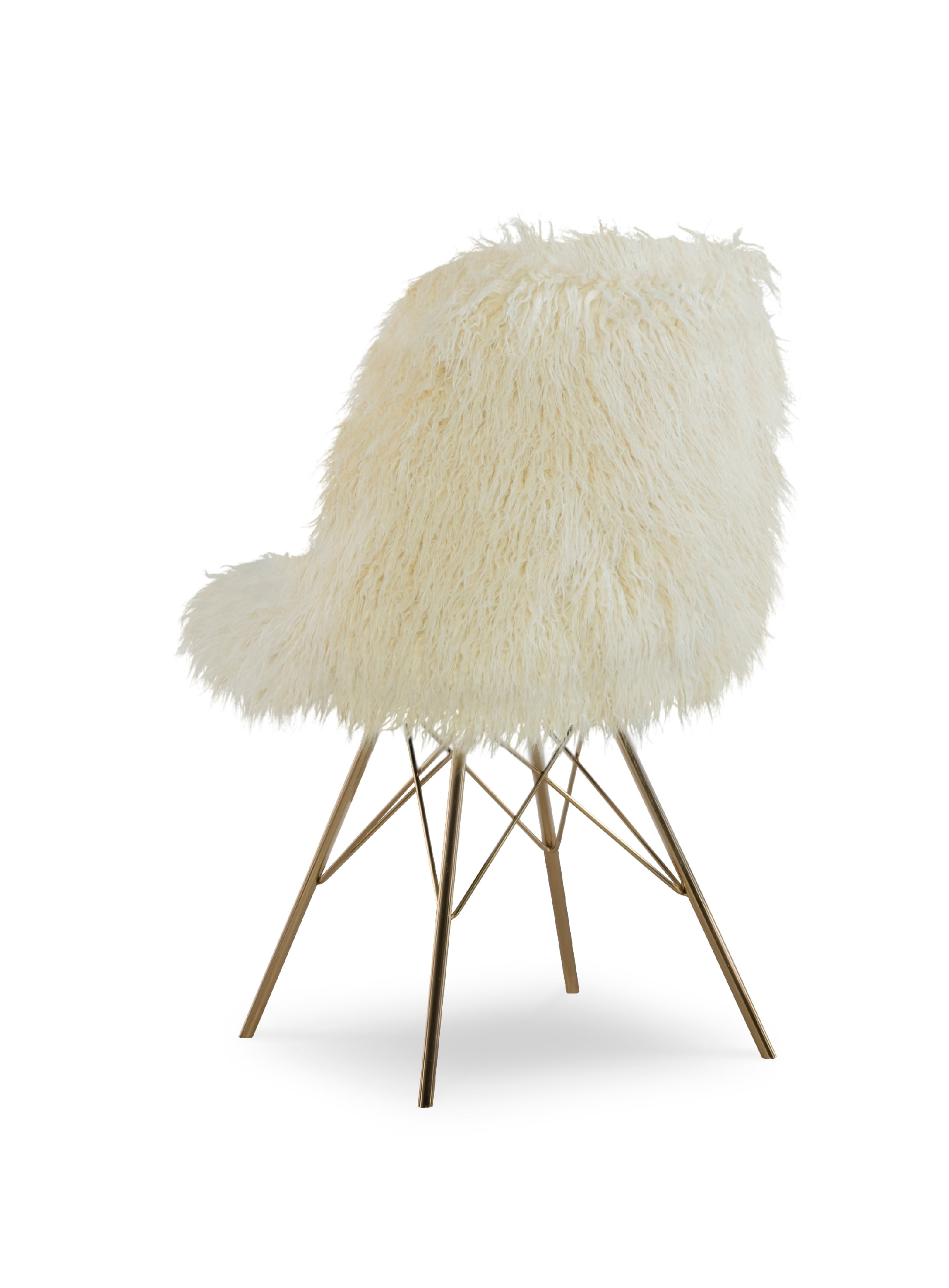 Cream Faux Fur Seat Brushed Gold Metal Legs Dramatic and bold design Perfect for adding texture to your space Trendy Styling Foam Fill Material Assembled Dimensions: 22.75″ w x 19.62″ d x 34″ h Weight Capacity: 15 lbs each shelf Assembly Required Ships in 1 box