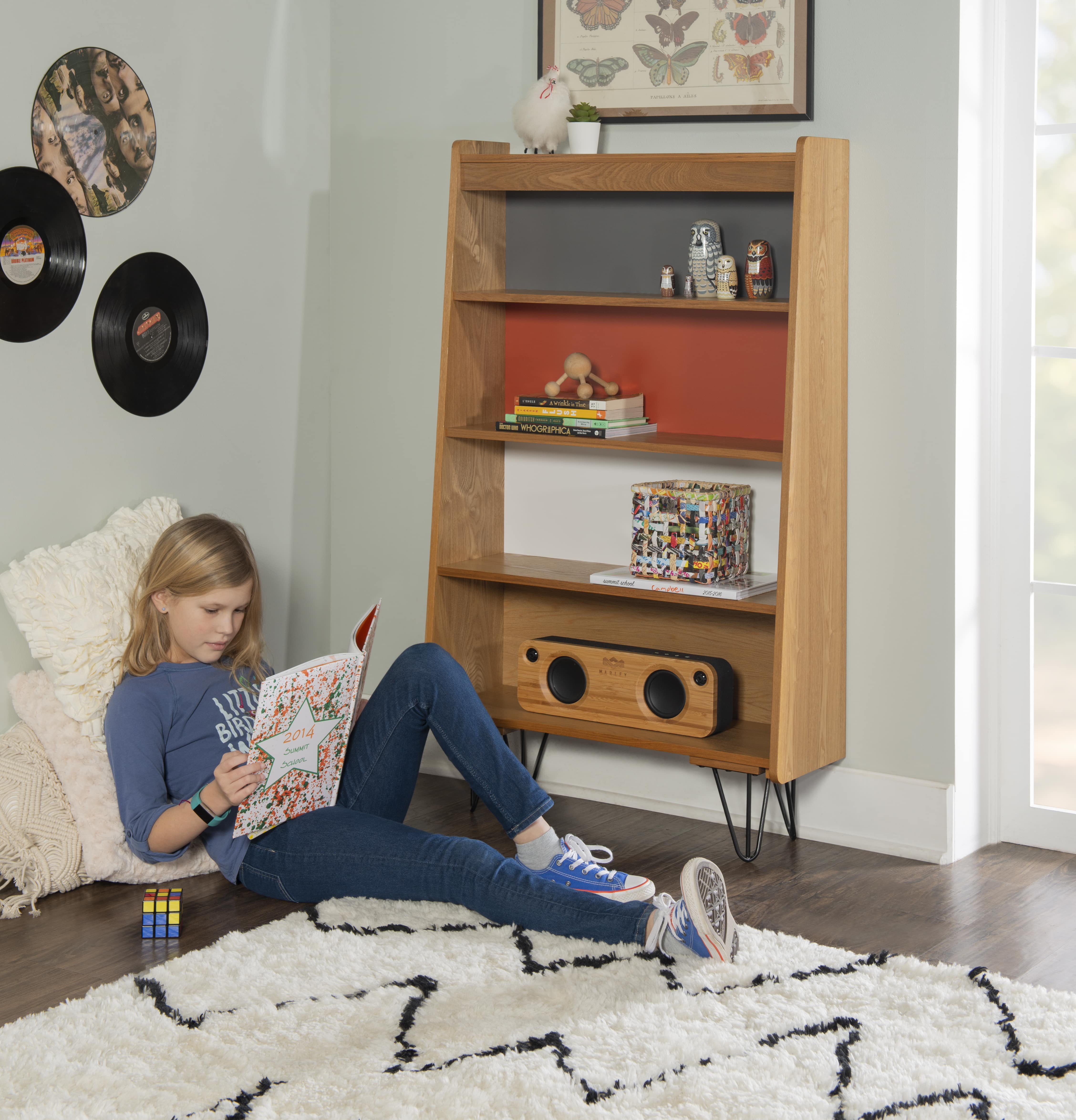 Linon Campton Mid-Century 4-Shelf Standard Bookcase with Hairpin Legs, Natural/Charcoal/Orange/White