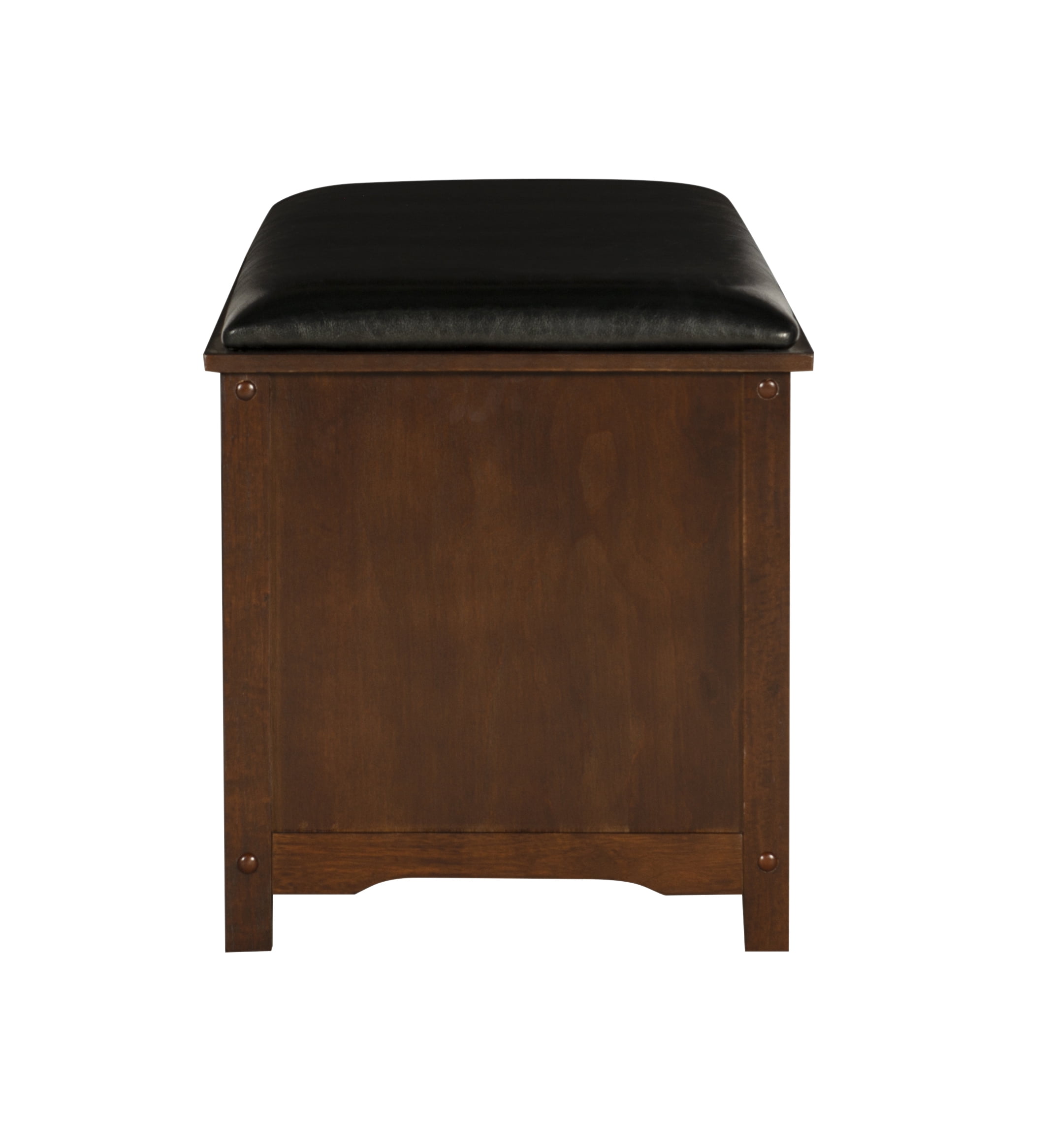 Crafted from Solid Wood, Rubberwood, Local Hardwood, MDF, Birch Veneer and PU Dark Walnut Brown Finish Perfect for adding to an entry or hall. Plush Dark Brown PU Cushioned Top Ten storage cubes Seat Cushion is not removable Storage Compartment Dimensions: 7.75″w x 13.75″d x 5.75″