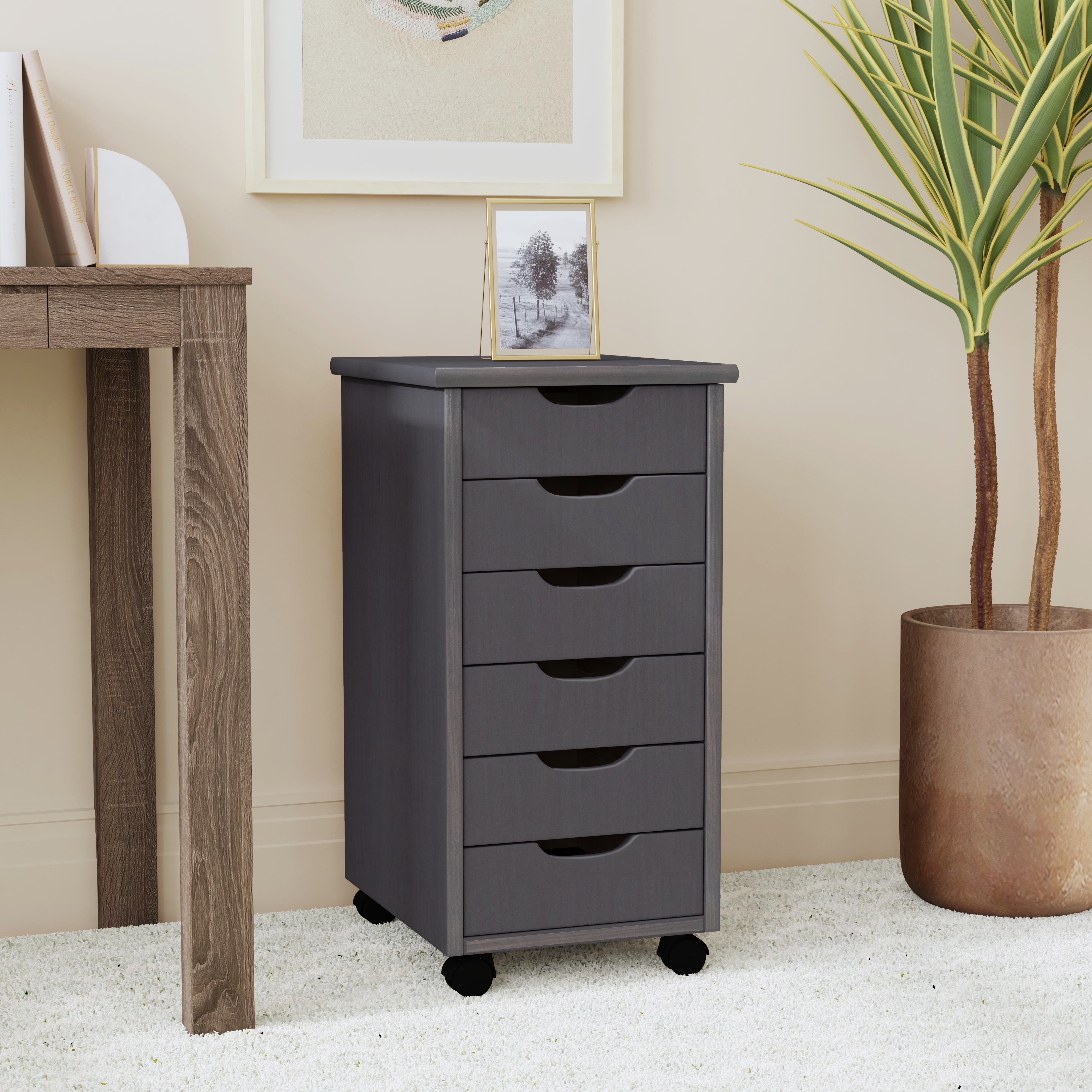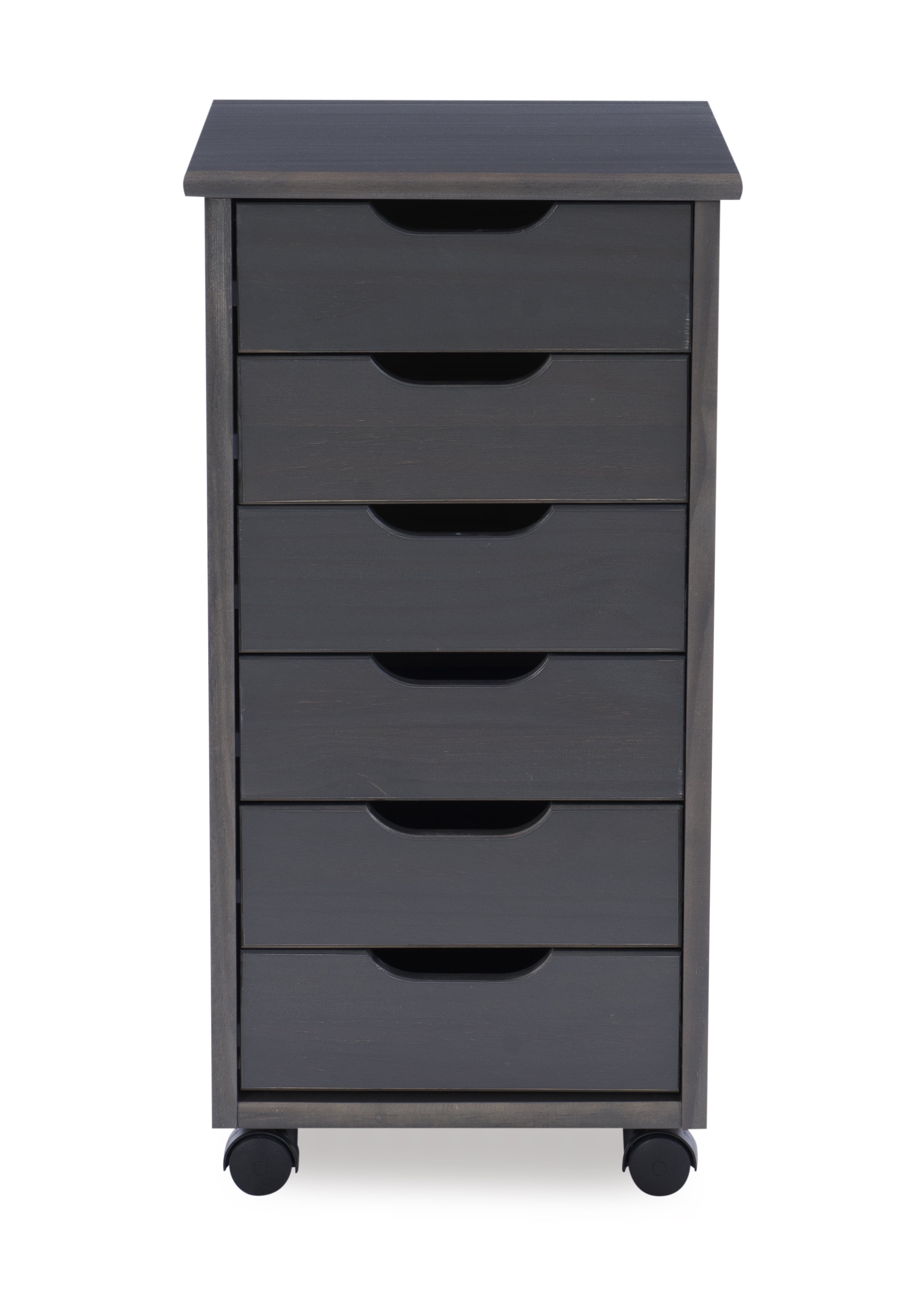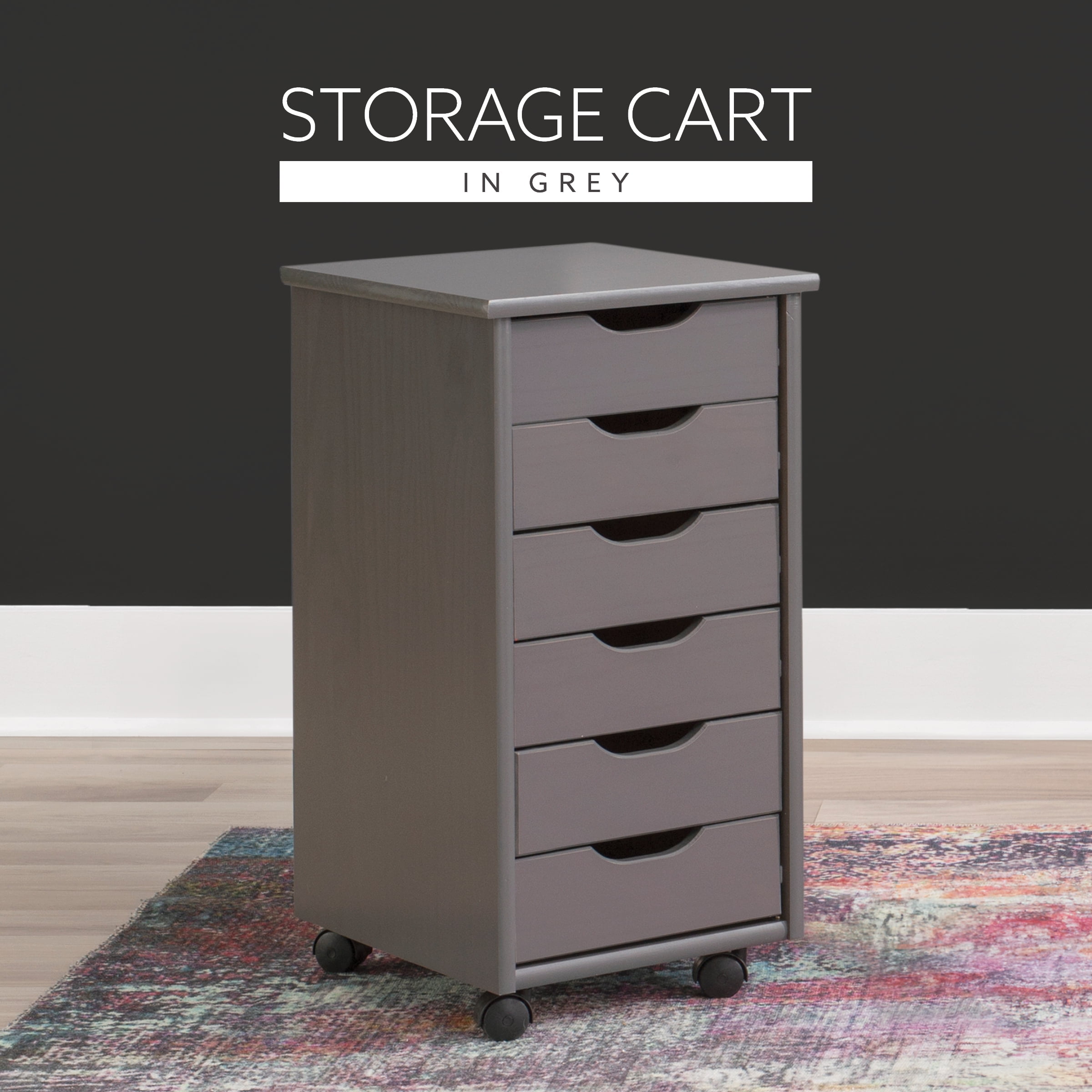 Linon Cary Six Drawer Rolling Storage Cart, Gray Finish