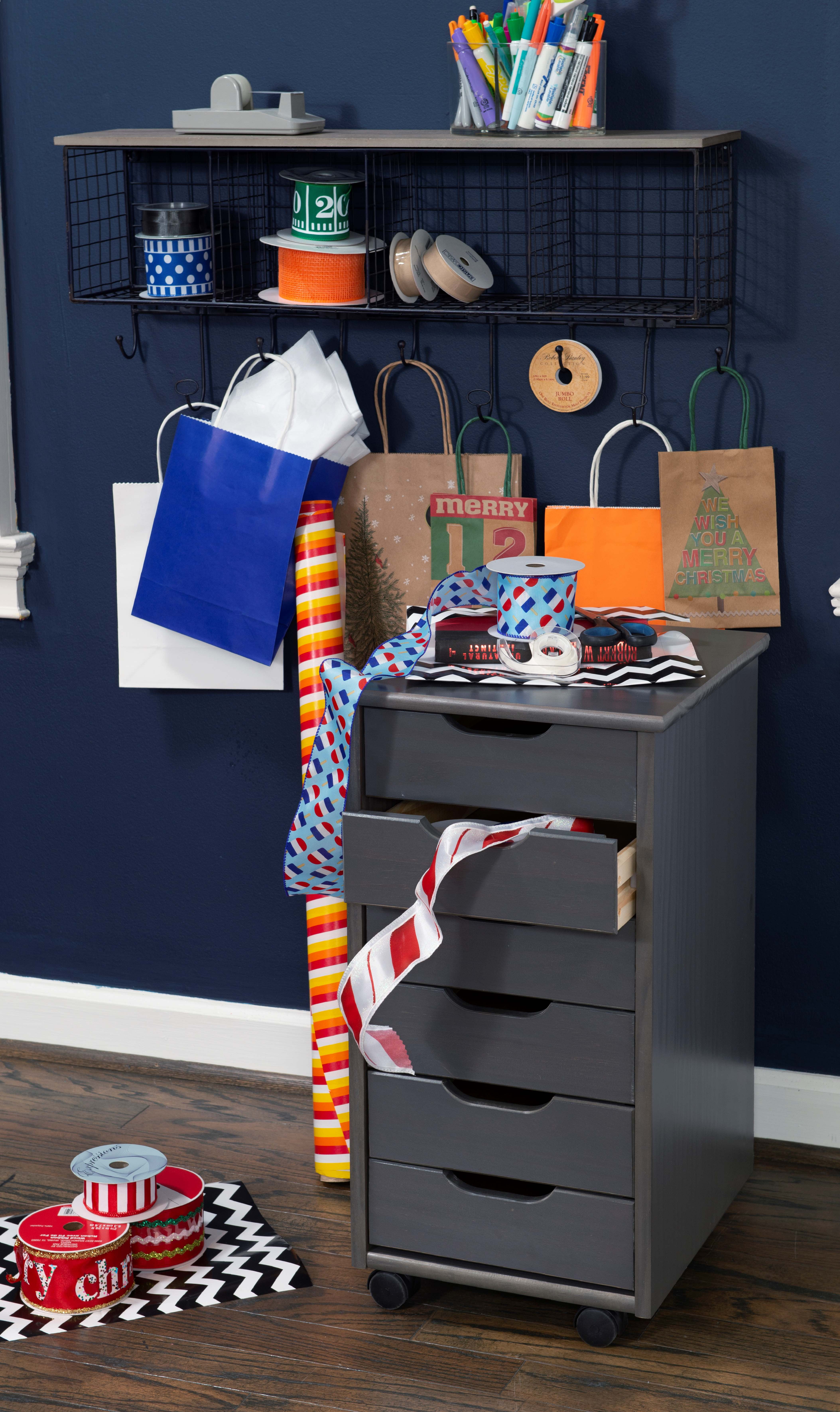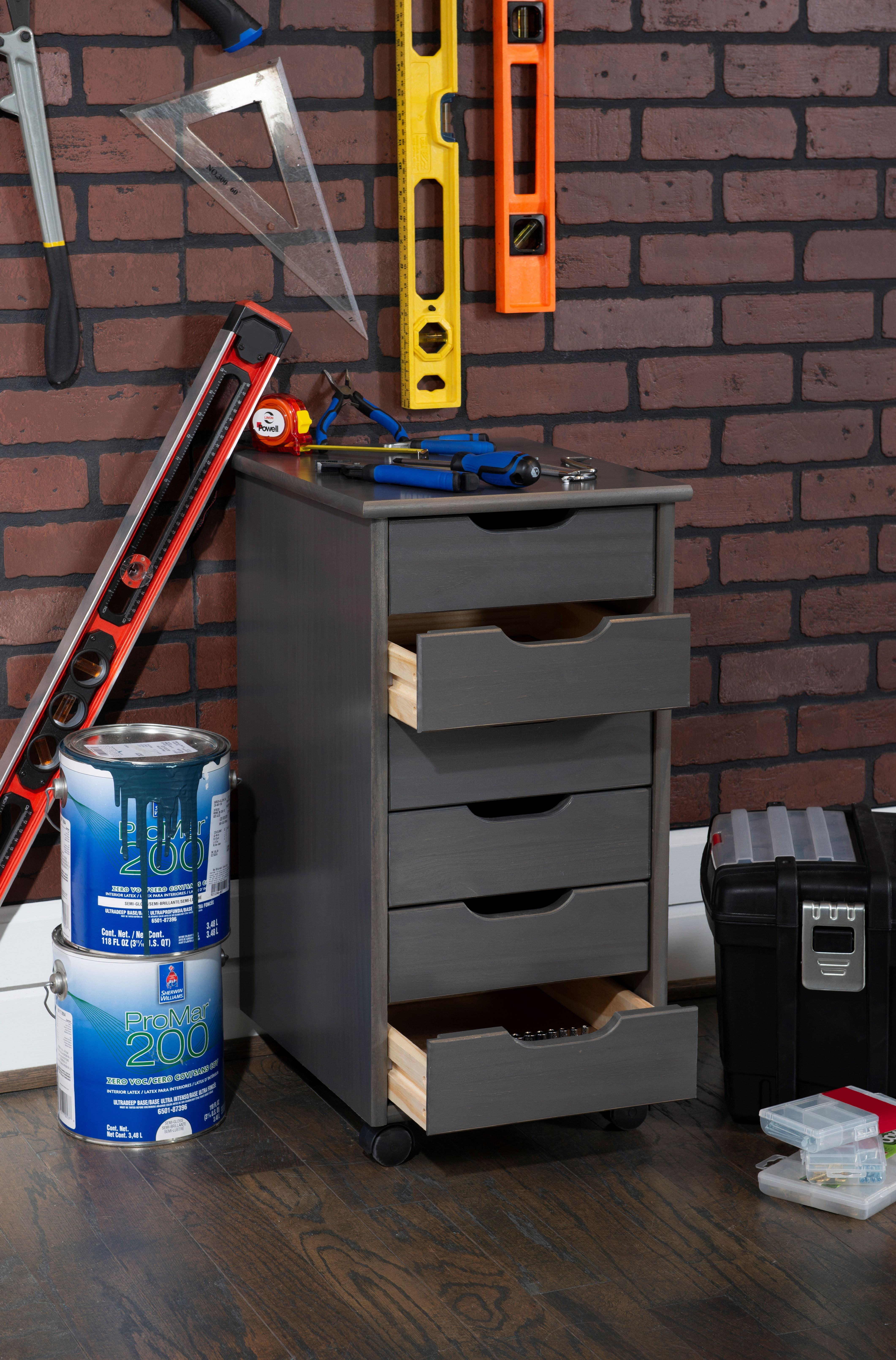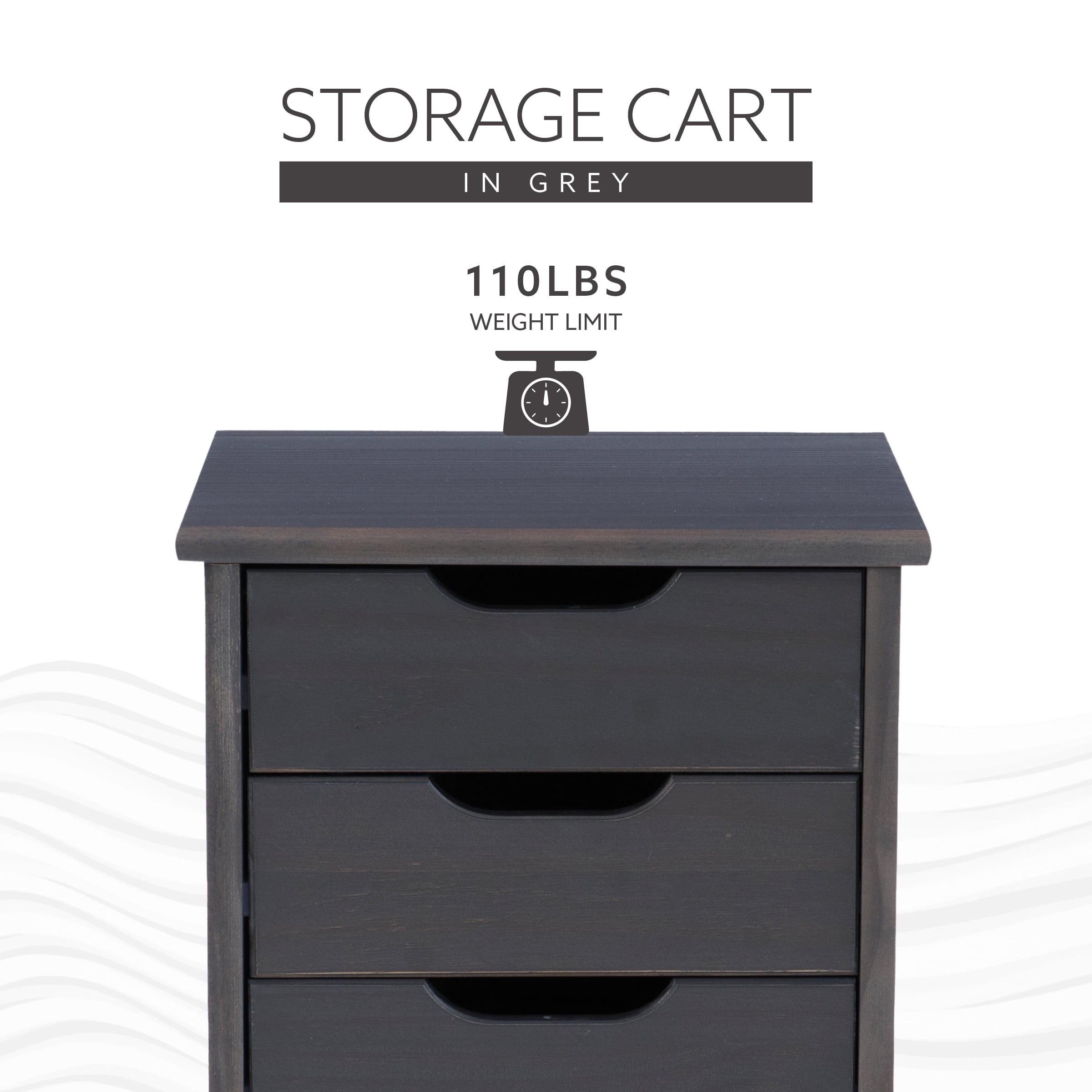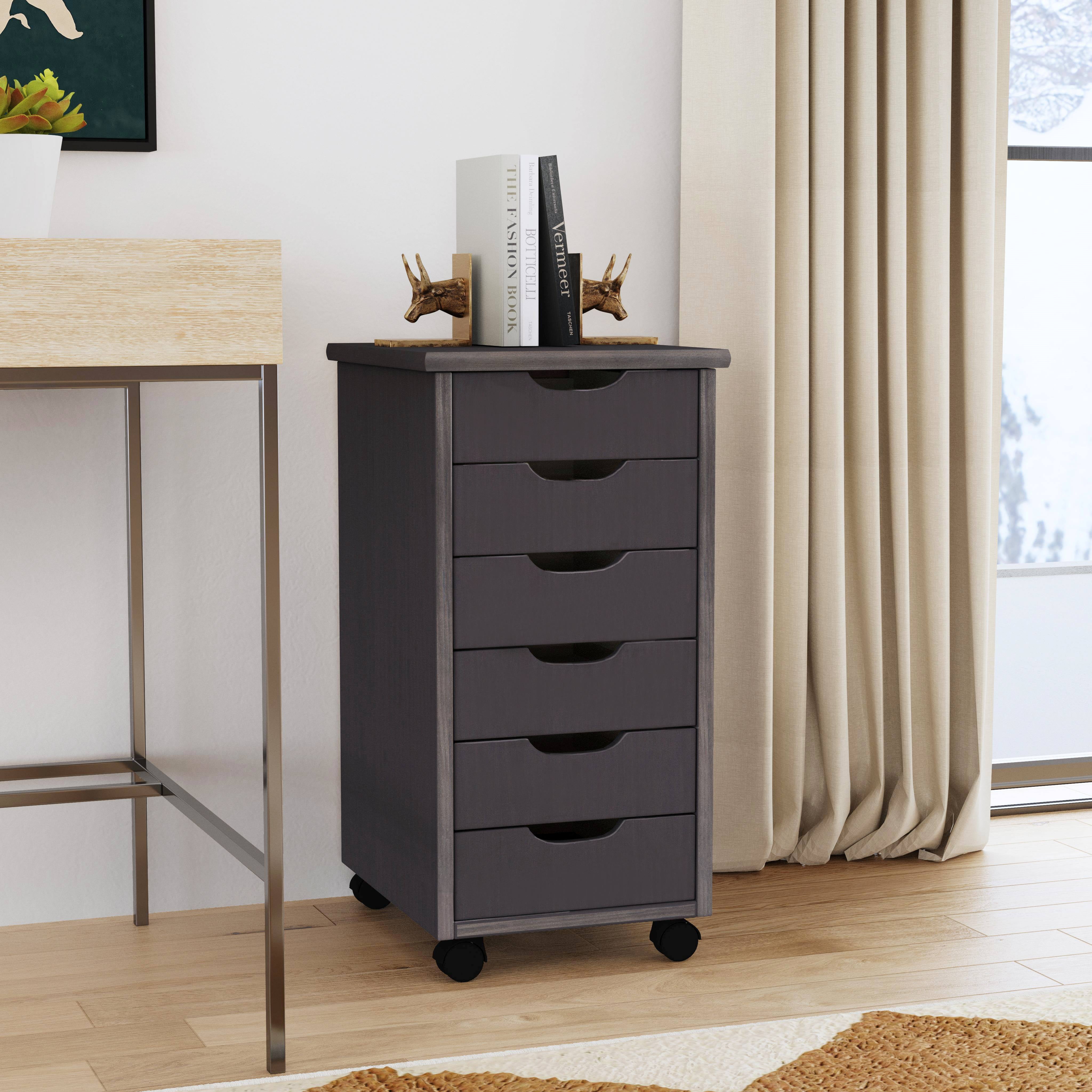 Linon Cary Six Drawer Rolling Storage Cart, Gray Finish