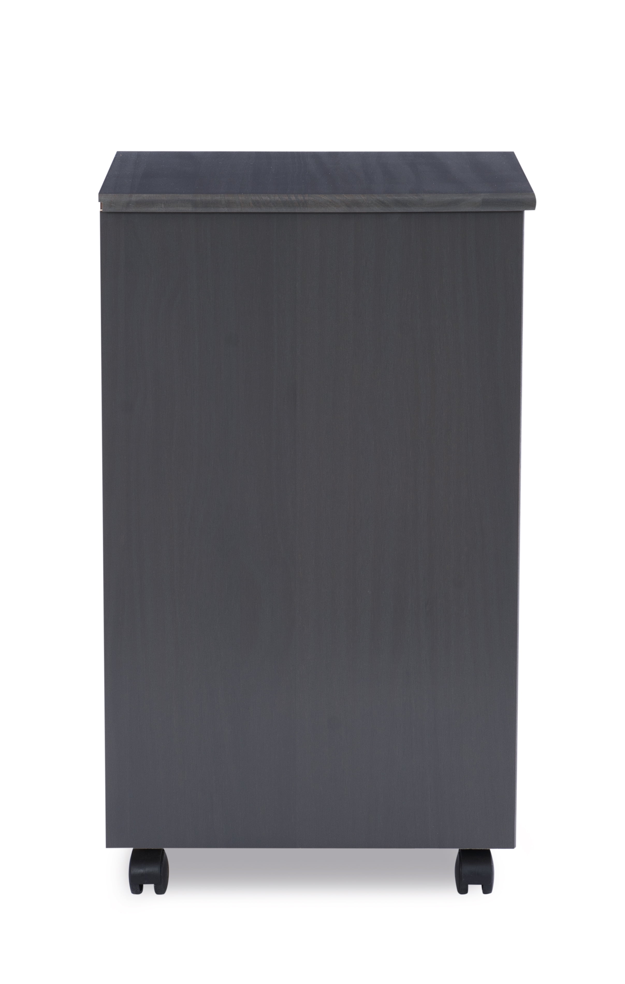 This six drawer rolling storage cart is a versatile storage solution for office, kitchen, bedroom or anywhere where organization is needed. In a rich grey finish that will allow this mobile piece to blend into any décor. Six equal size drawers and an ample top can go next to a desk or craft table to put items within reach. Soft contoured handle cut out is easy on the touch and creates a clean, modern look. Drawers can be easily removed and used as a tray to transport your items to your workspace. Casters make this piece mobile to go into any room easily. For Indoor use only. Condition: New