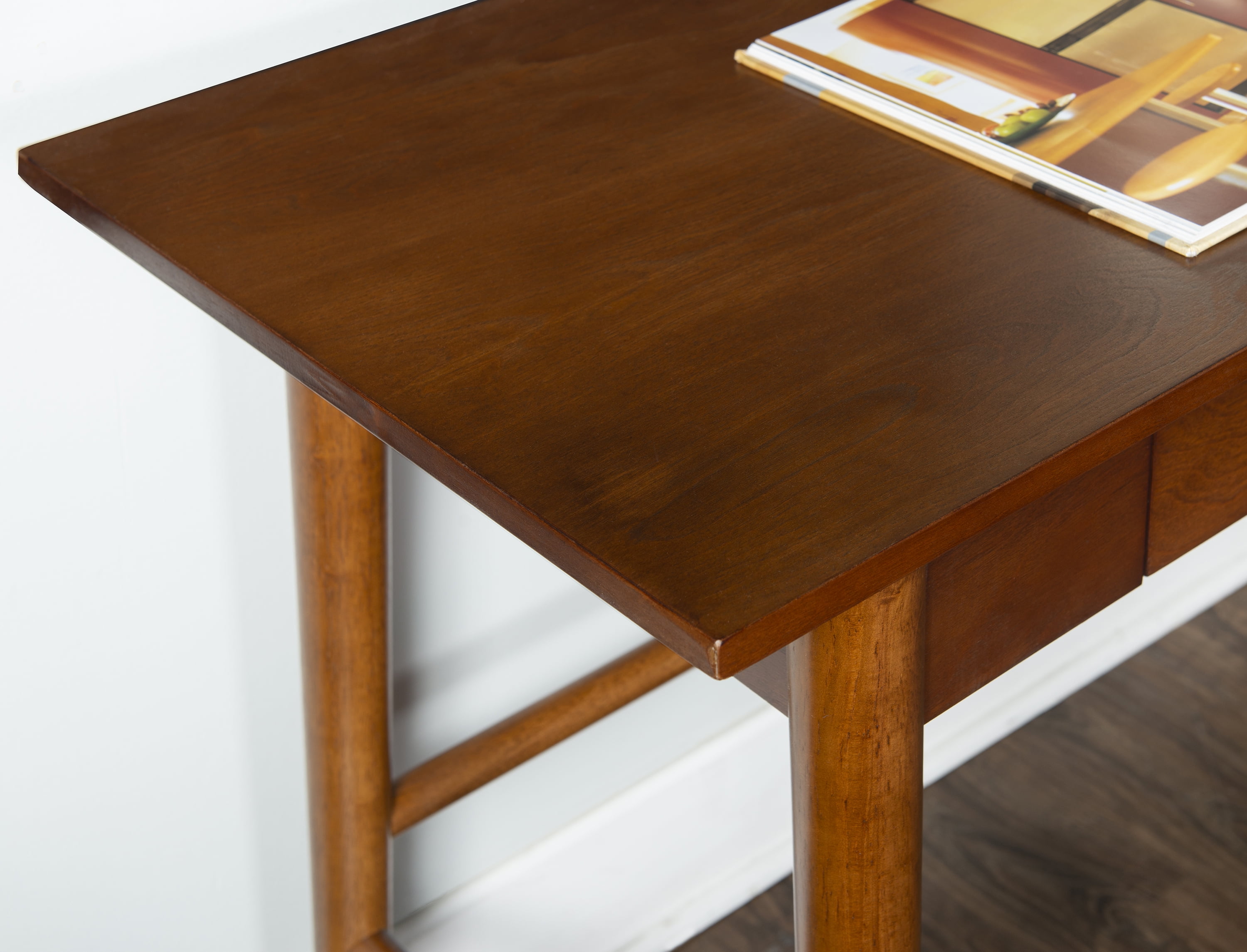 Mid-Century Modern Style Single Drawer For Storage Sleek Lined Design Rich Brown Finish Sturdy And Durable Drawer Dimension: 20.67″ X 10.9″
