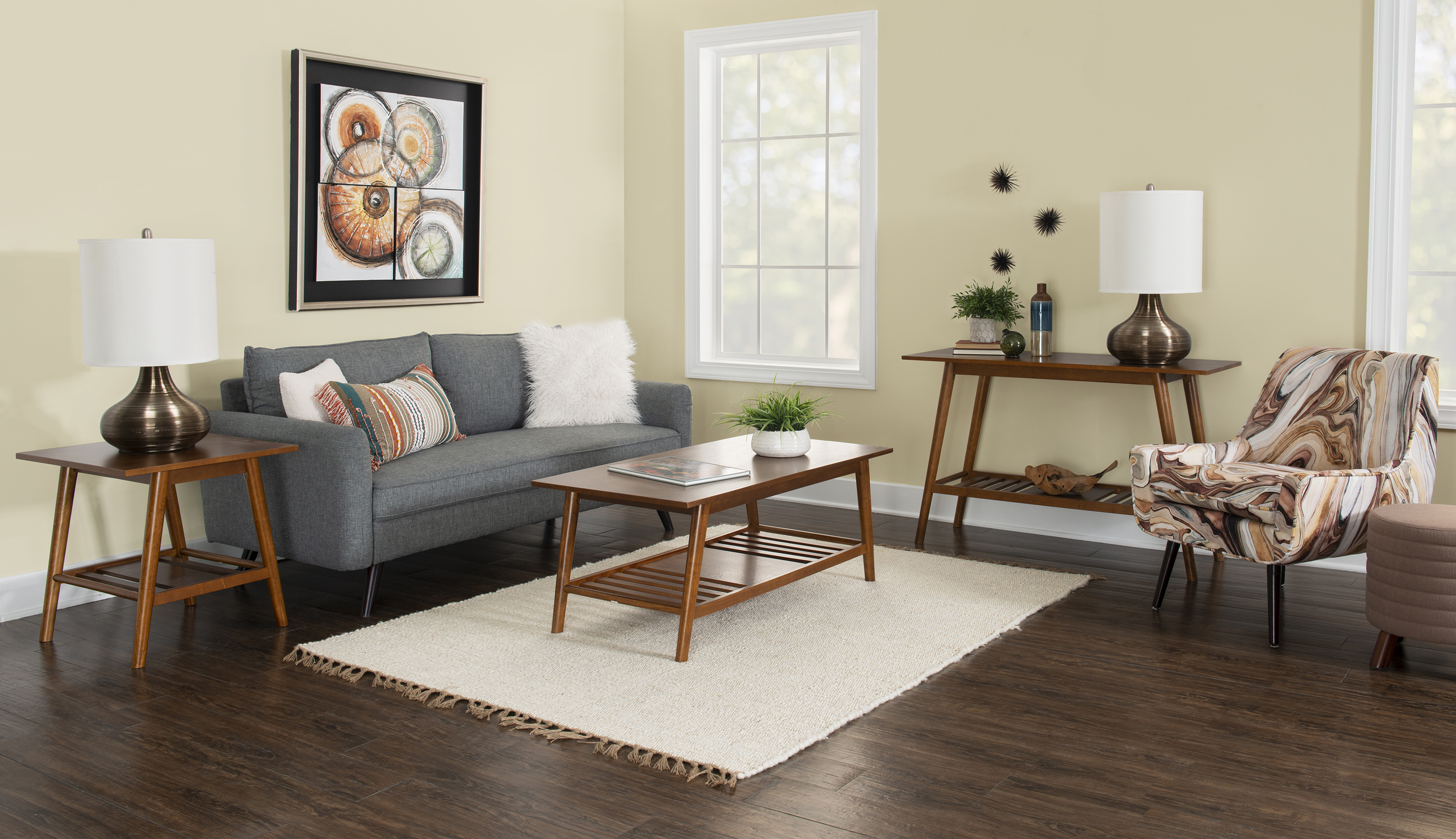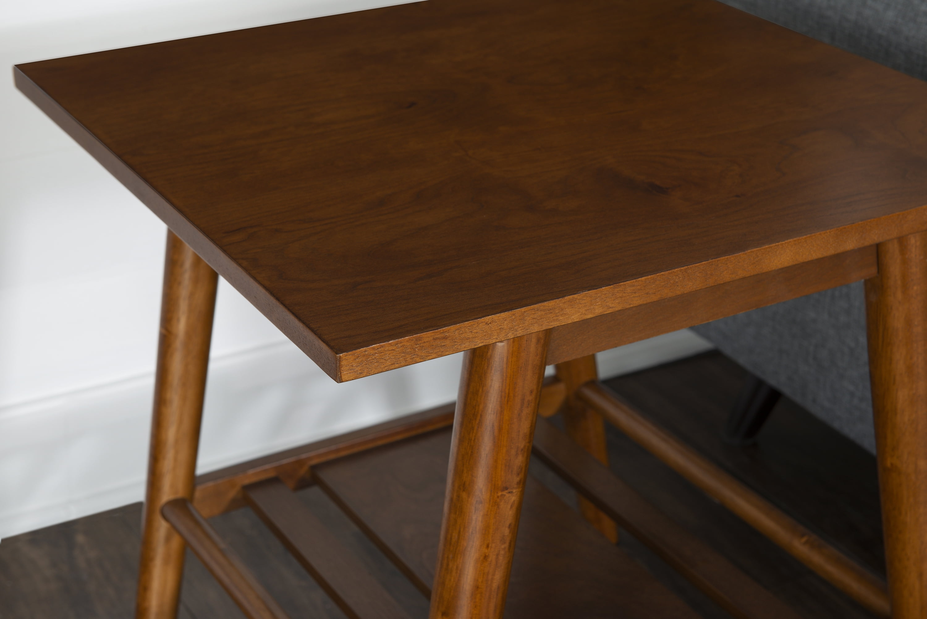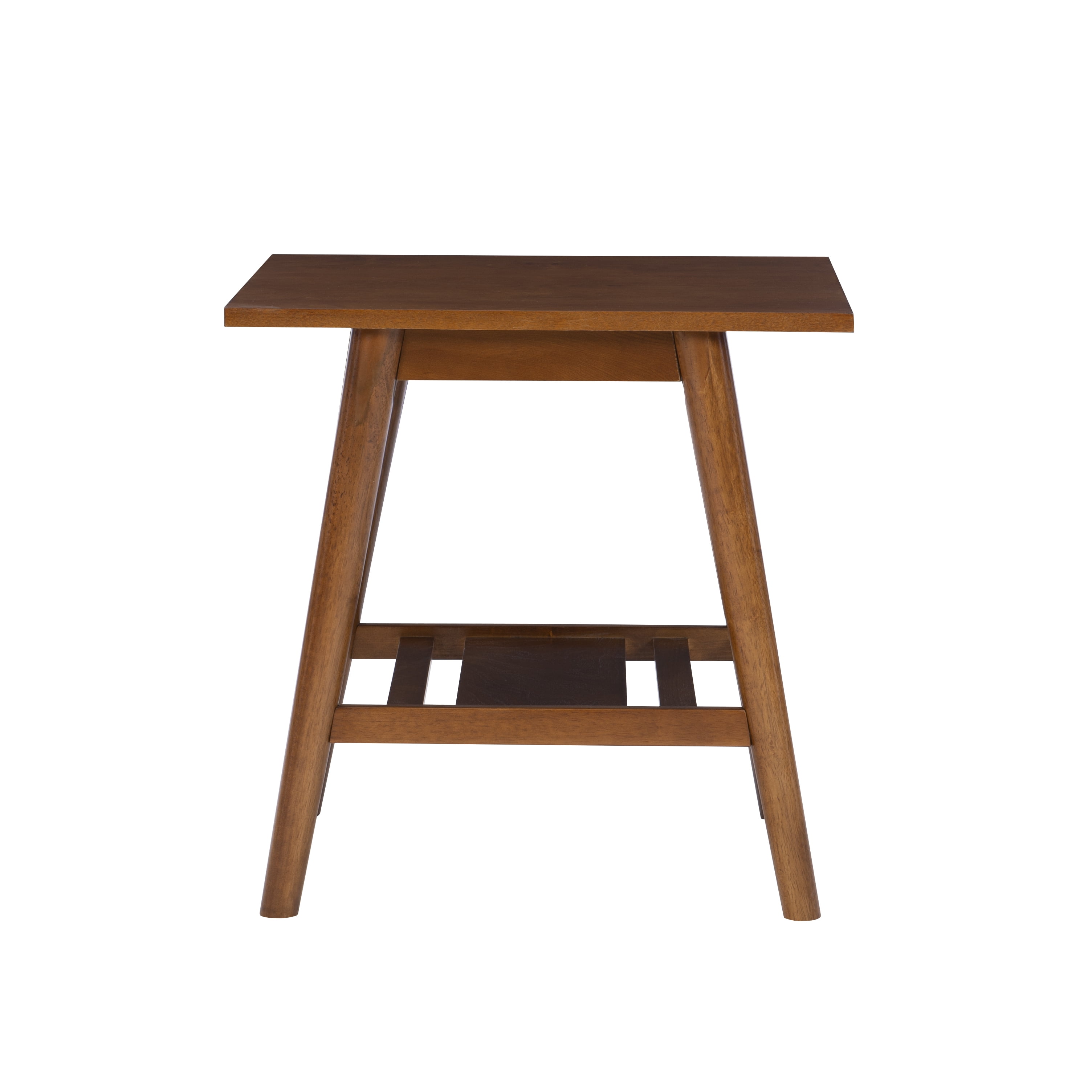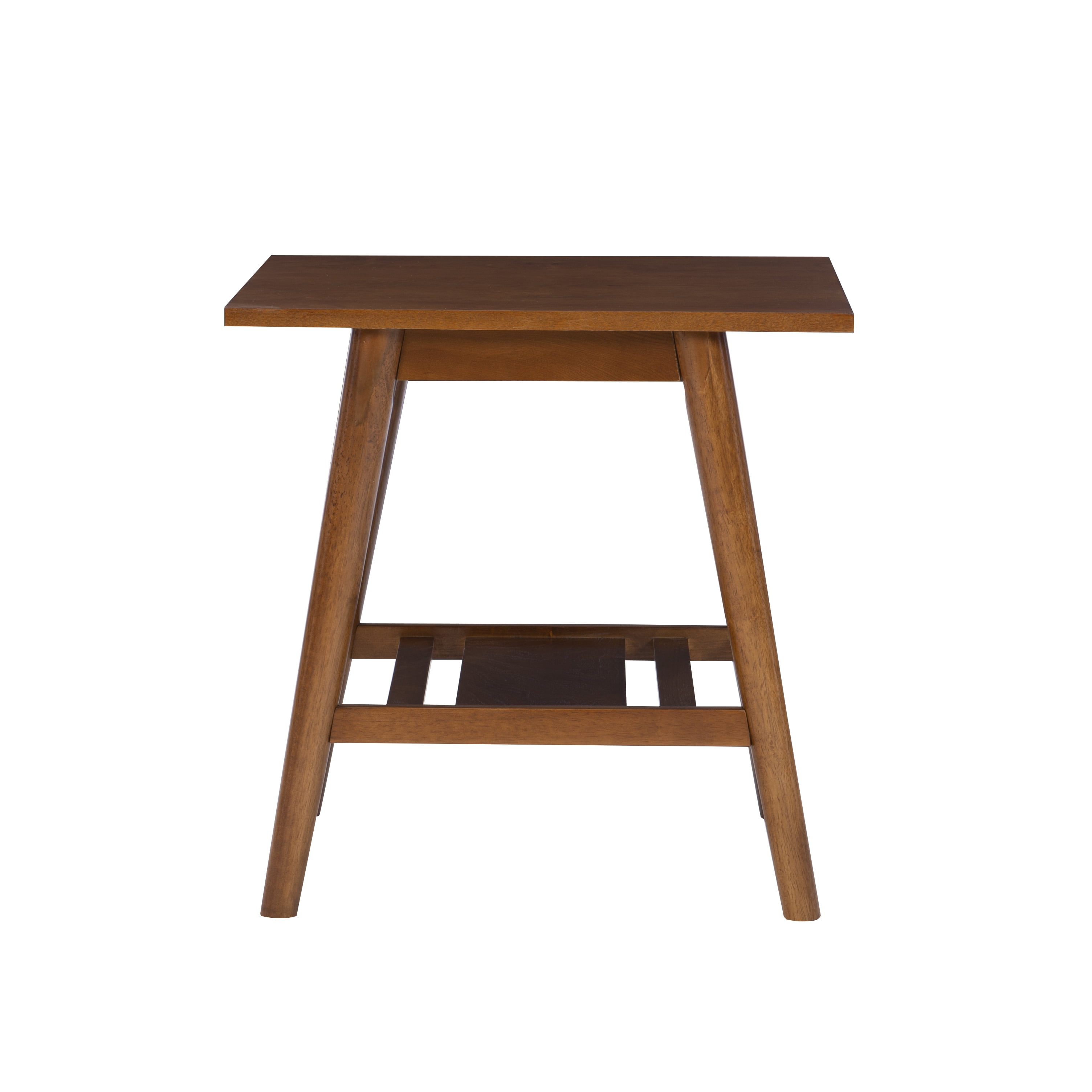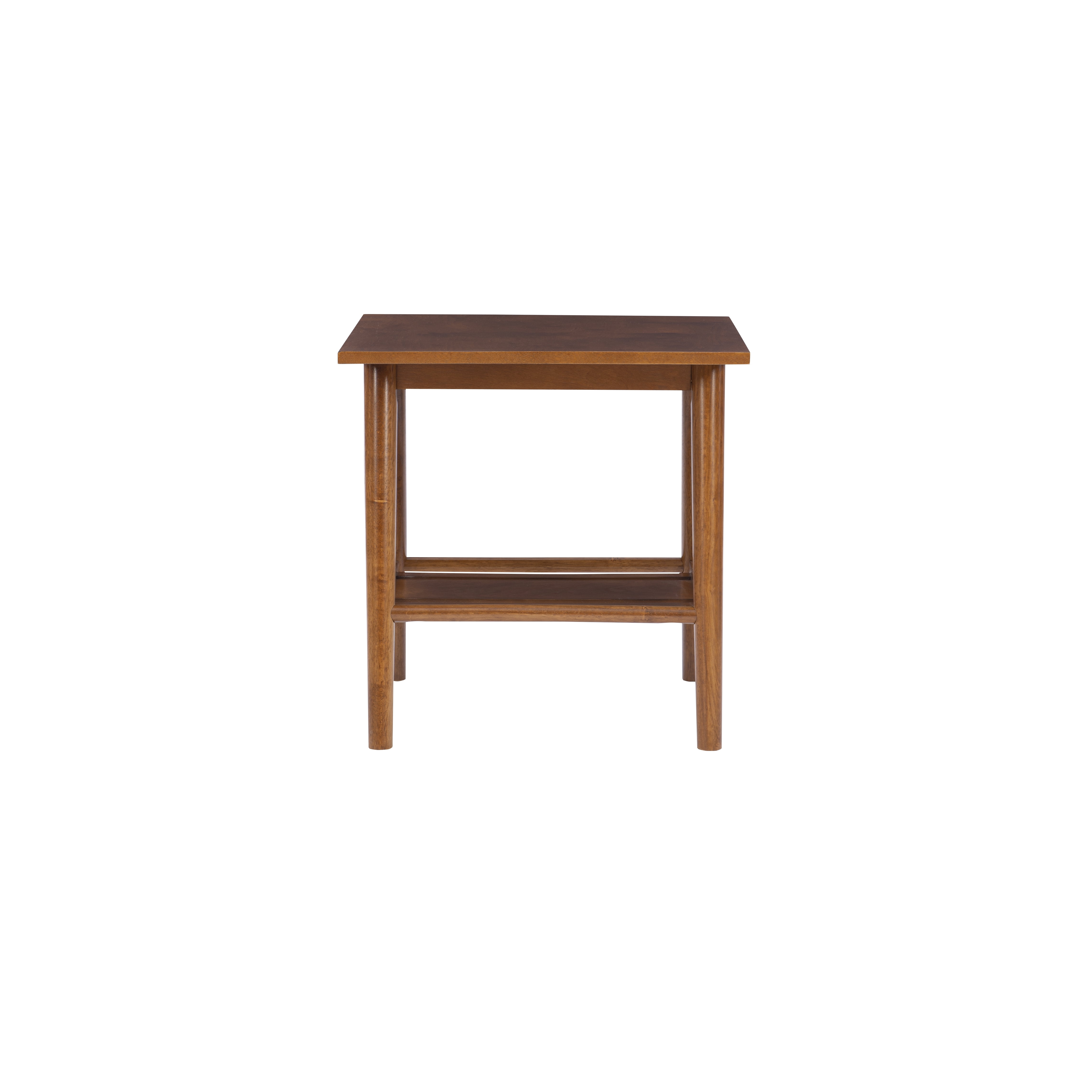 Linon Charlotte End Table, Brown, 22 inches Tall: Mid-Century Modern Style Single shelf for display and storage Sleek Lined Design Rich Brown Finish Sturdy and Durable Materials: Rubberwood, Solid Wood, MDF, Birch Veneer Dimensions: 22″w x 22″d x 22″h Carton Dimensions: 23.5″w x 23.5″d x 5″h Some Assembly Required Sku: CG134BIR01U
