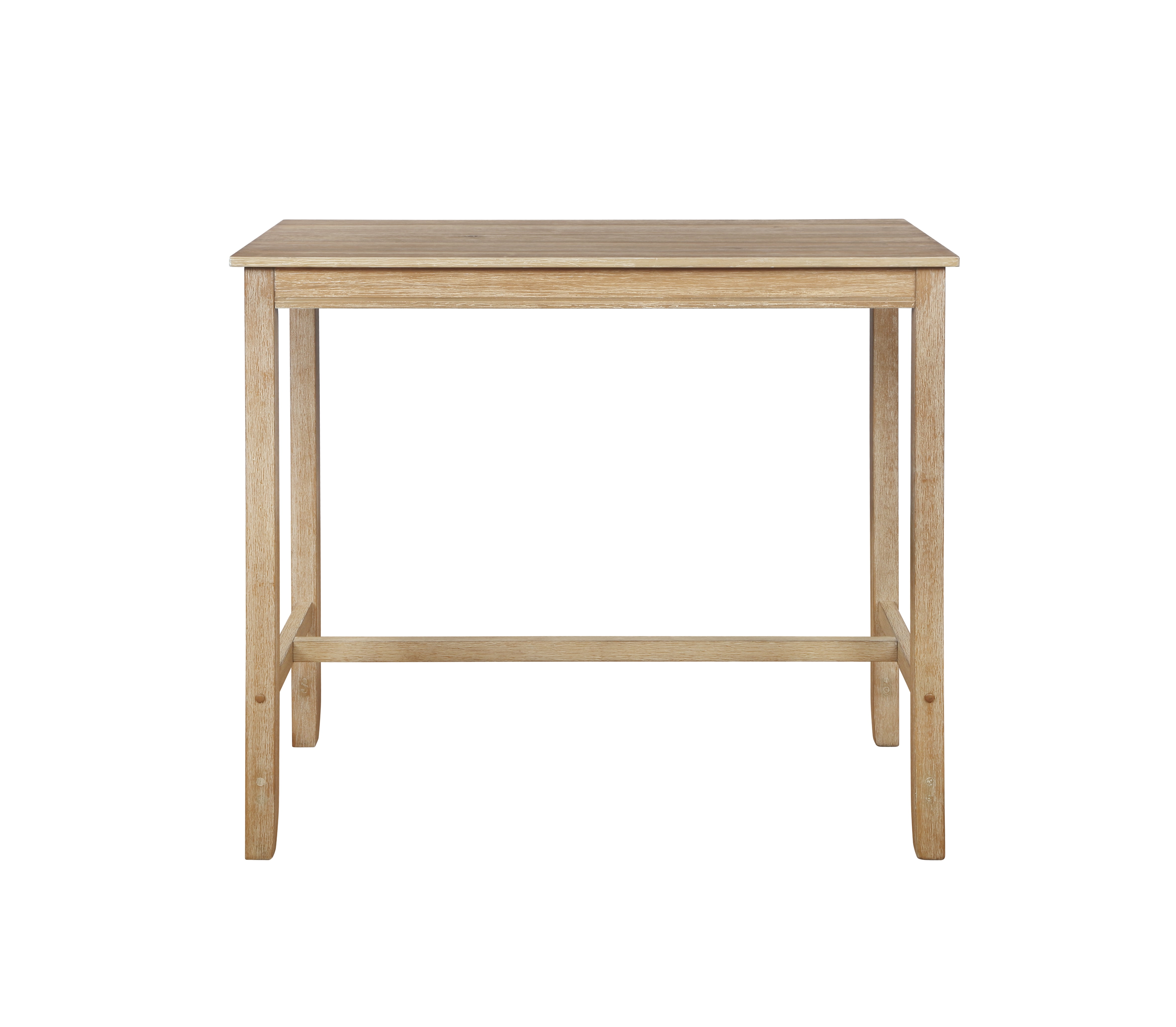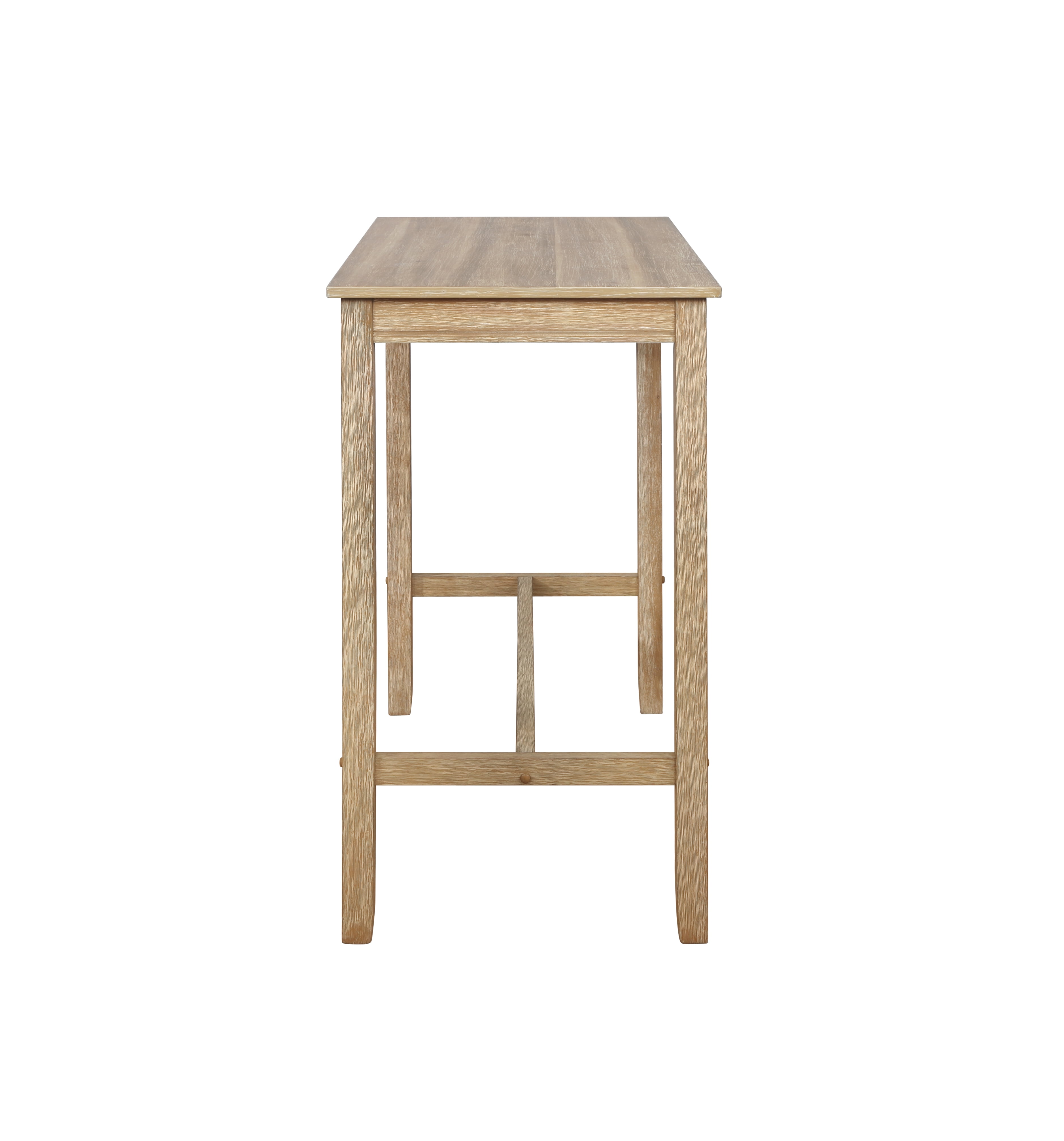 Solid rubber wood construction of base and frame for stability Distressed Acacia brown finish overall Suitable for dining, desking or entryway use Designed to coordinate with our most popular bar height stools Brace piece provides stability and foot rest Assembled dimensions: 27.25″w x 23.75″d x 42″h Provides dining for up to four people Select stools with seat height of 30 to 34 inches for best results Weight Capacity: 100lbs Assembly Required Ships in one box