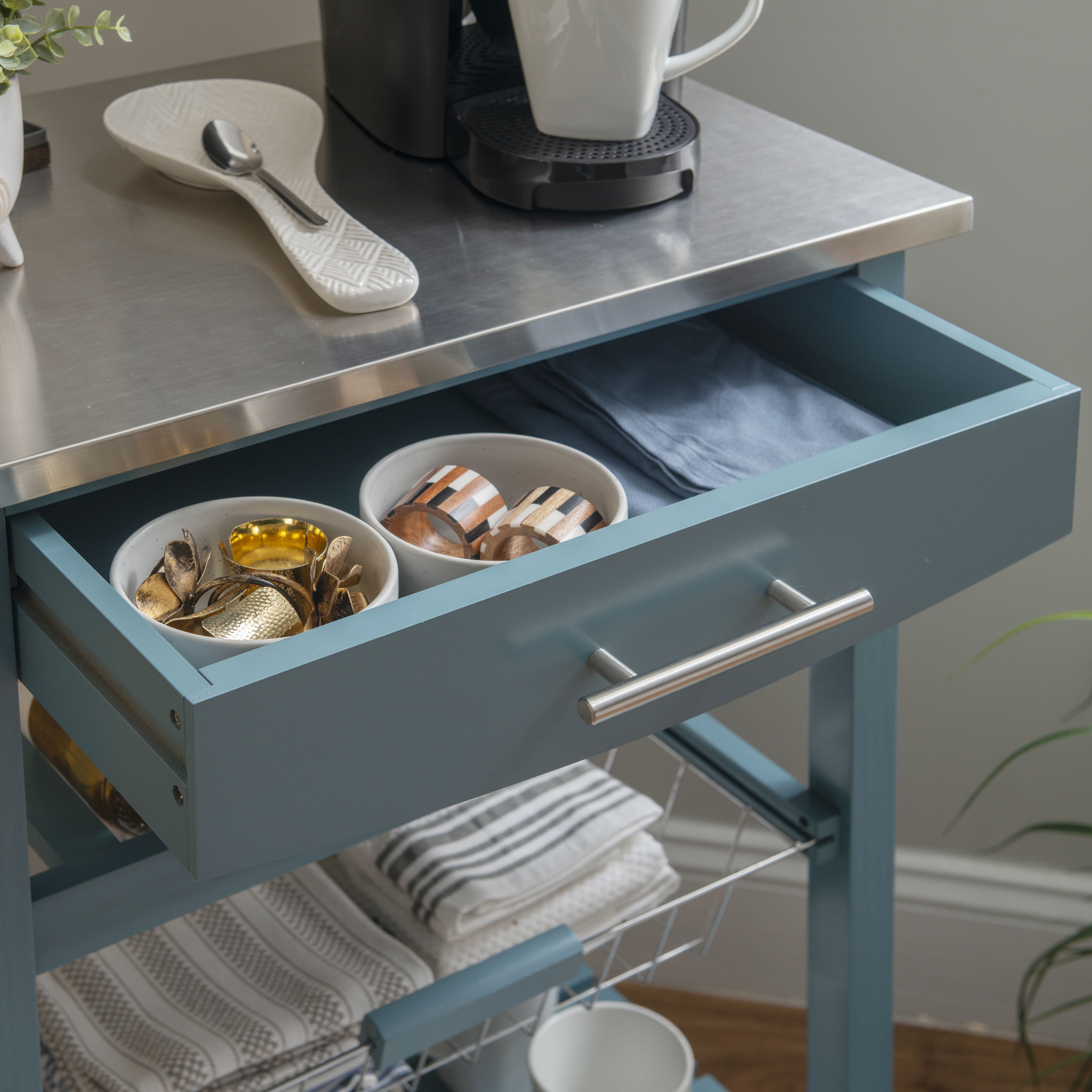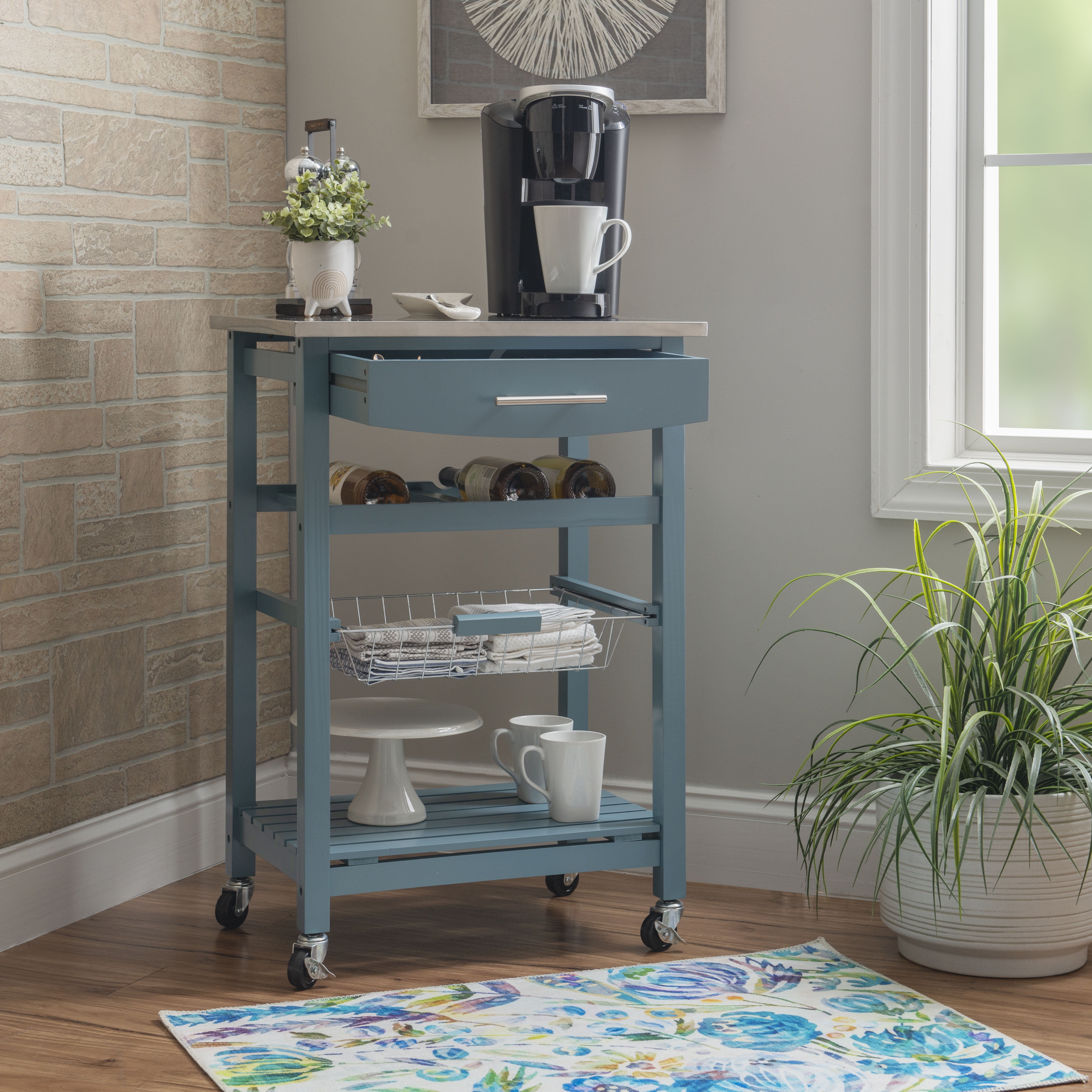 Linon Clarke 4-Tier Mobile Serving Cart with Stainless Steel Top, 22.75″ Length, Blue