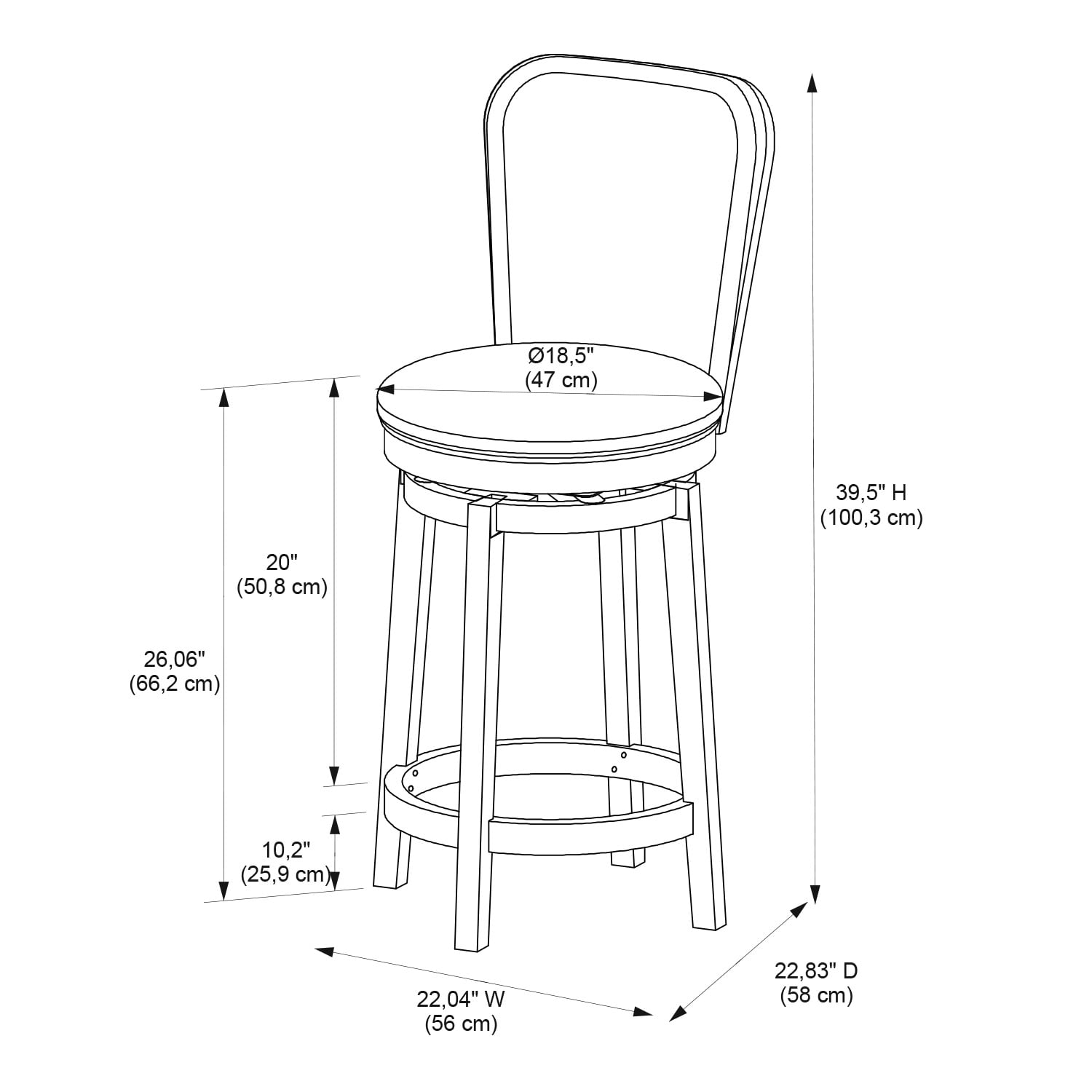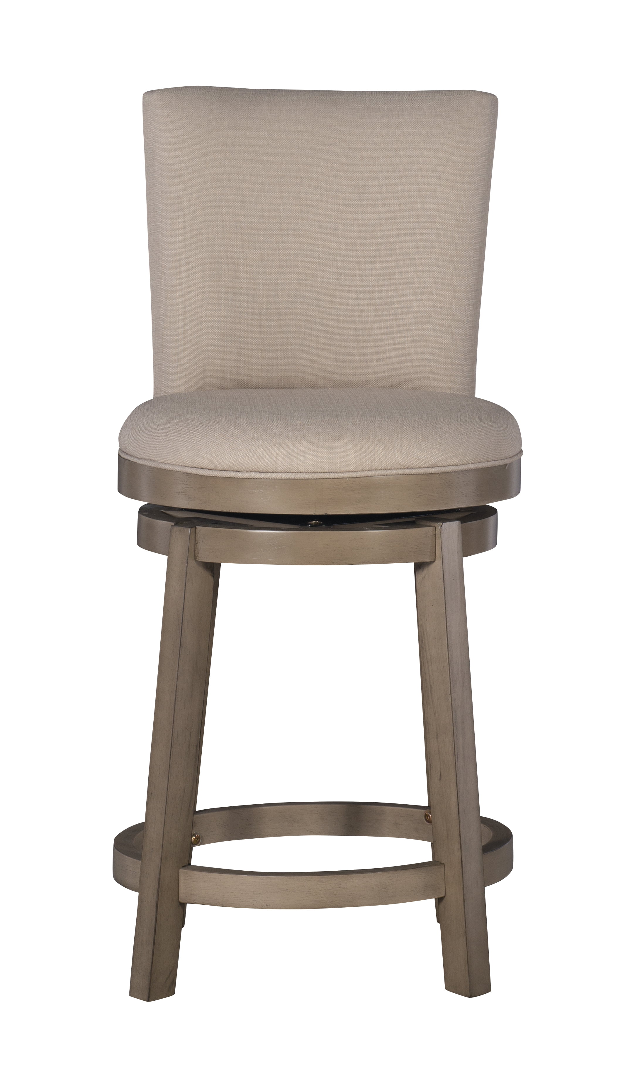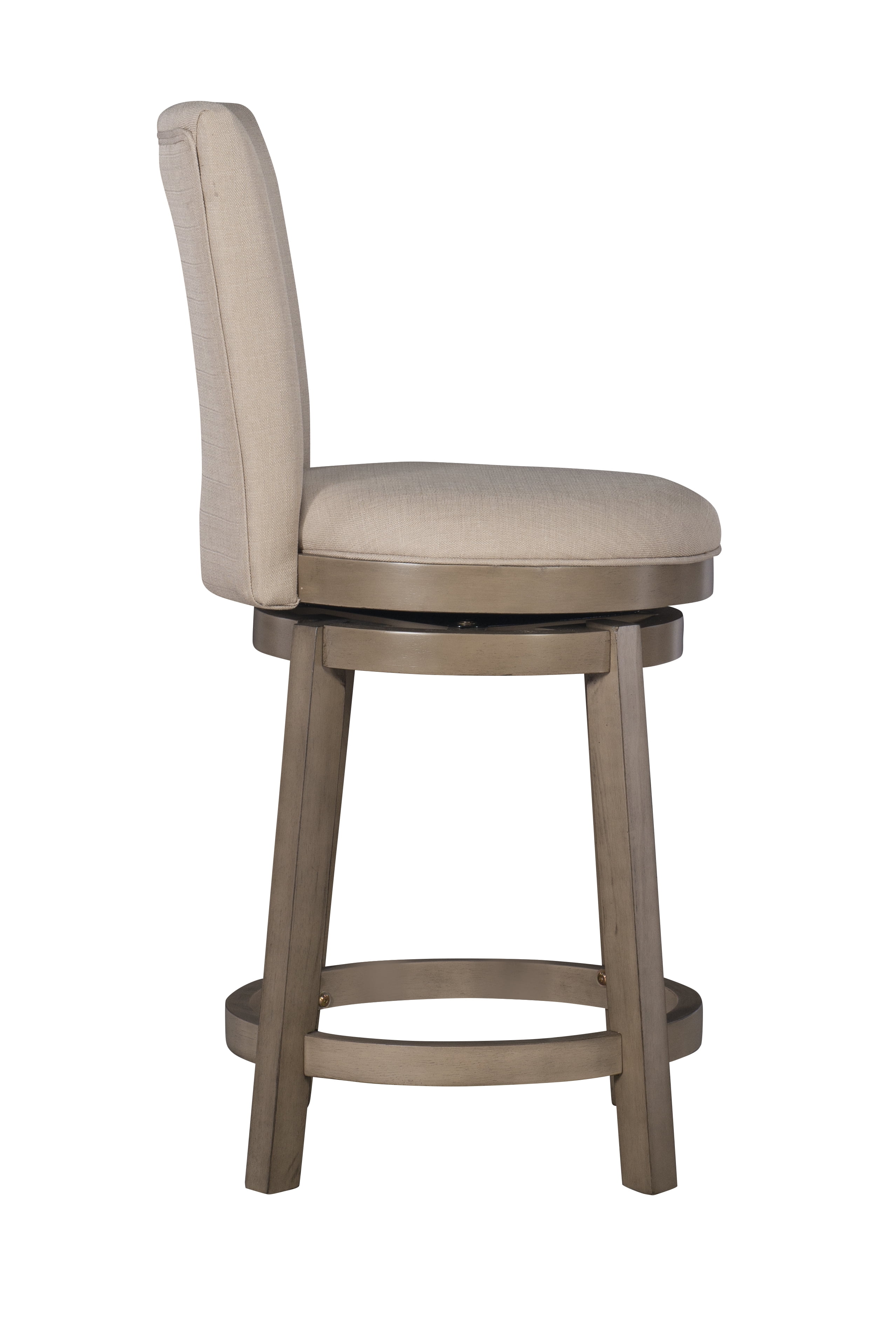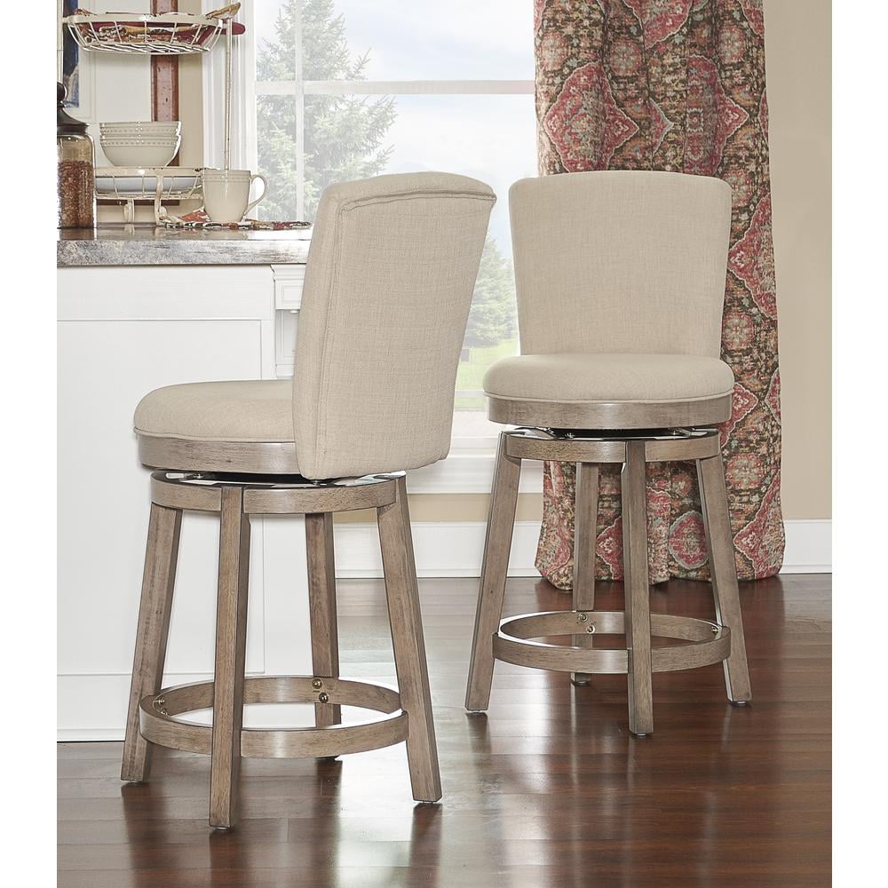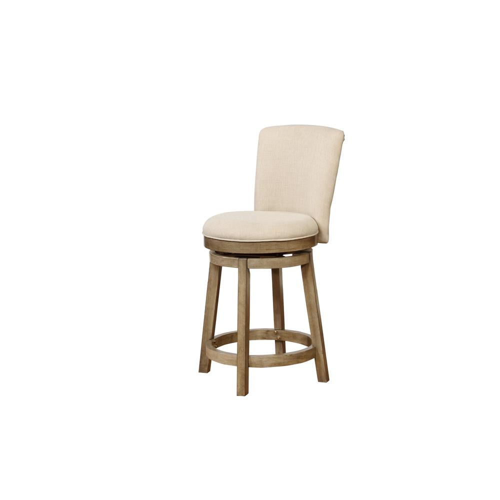 Crafted from Bentwood, Rubberwood, Foam and Fabric Natural Linen-Look Woven 100% Polyester Upholstery Beautiful Rustic Taupe Finish Comfortable and fashionable 360 degree, 10″ swivel plate Counter Height