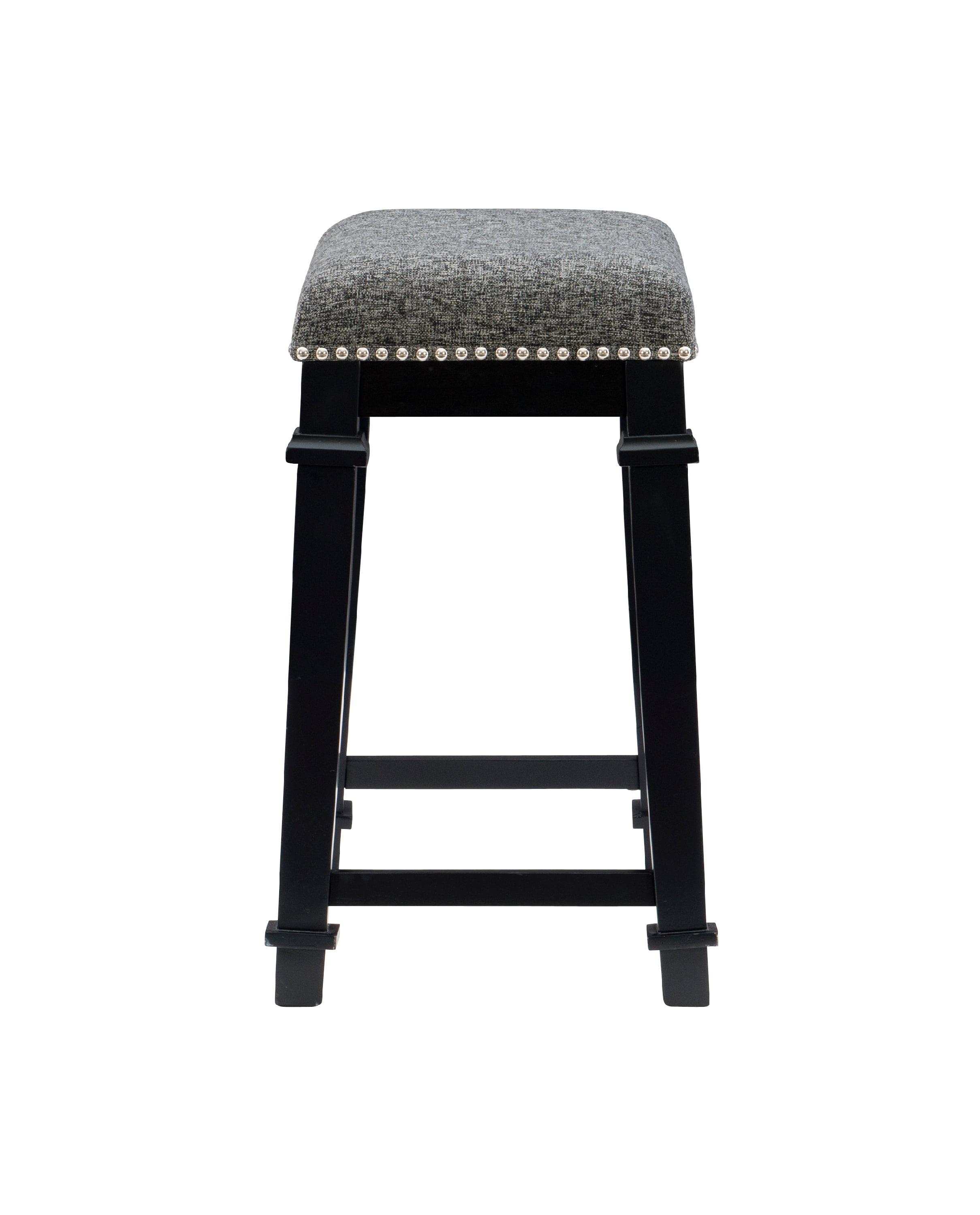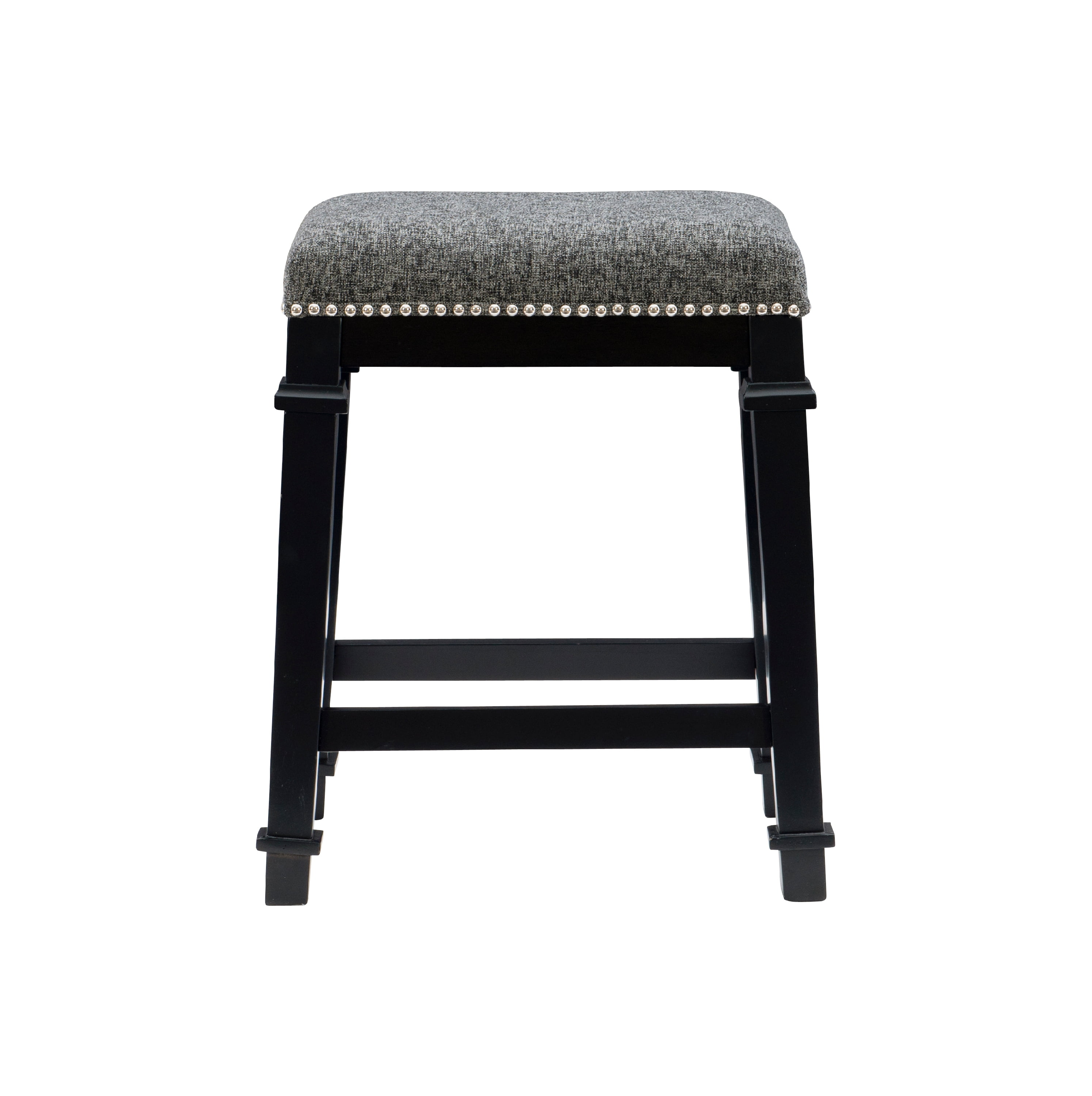 Gleaming silver nailheads accent the tweed upholstery on this backless counter stool with a crisp shine that brightens any space. Traditional design and materials make this stool an ideal choice for a rustic, farmhouse, or traditional space while the clean, sharp lines also suit contemporary spaces. Choose from multiple heights and finishes for the ideal fit for your home.