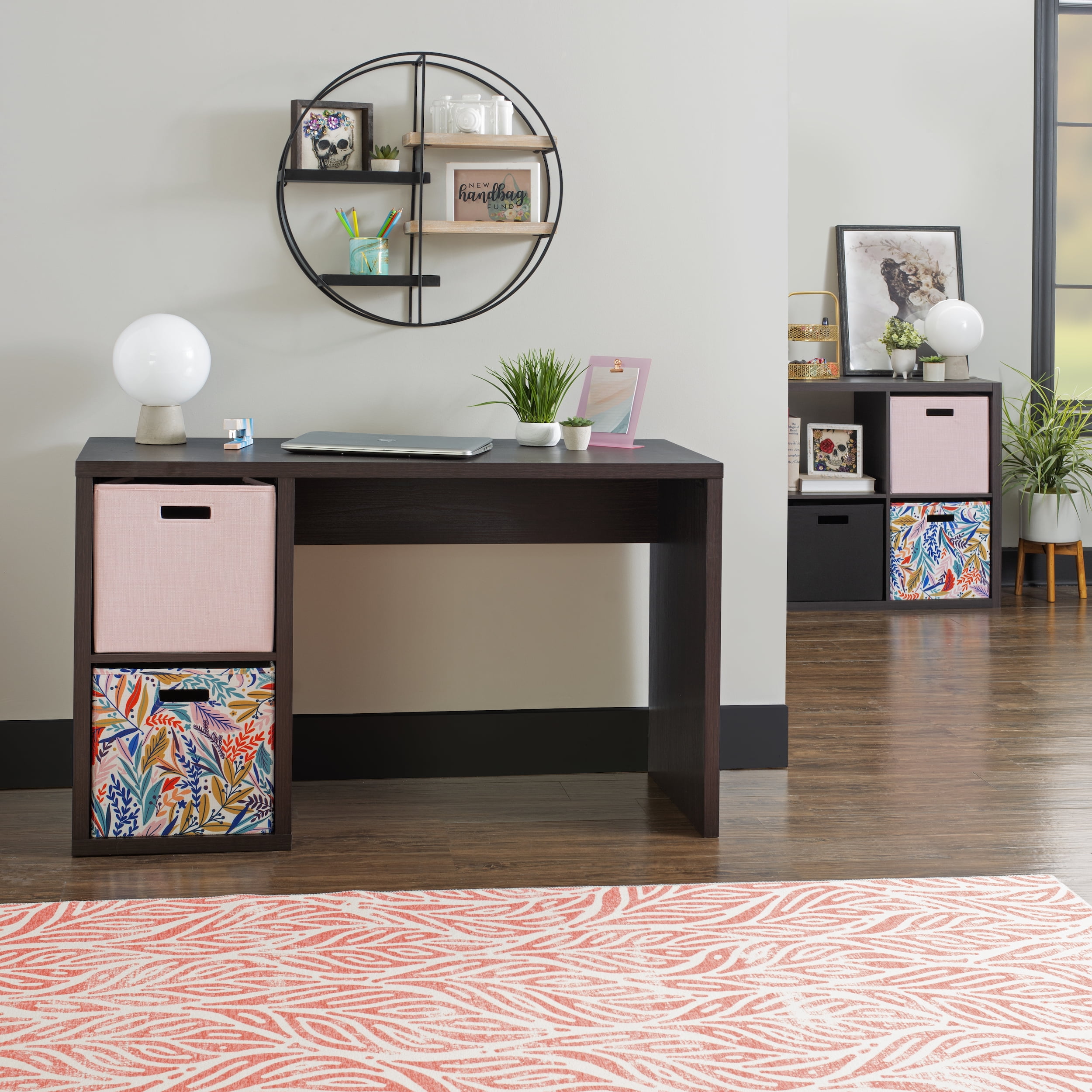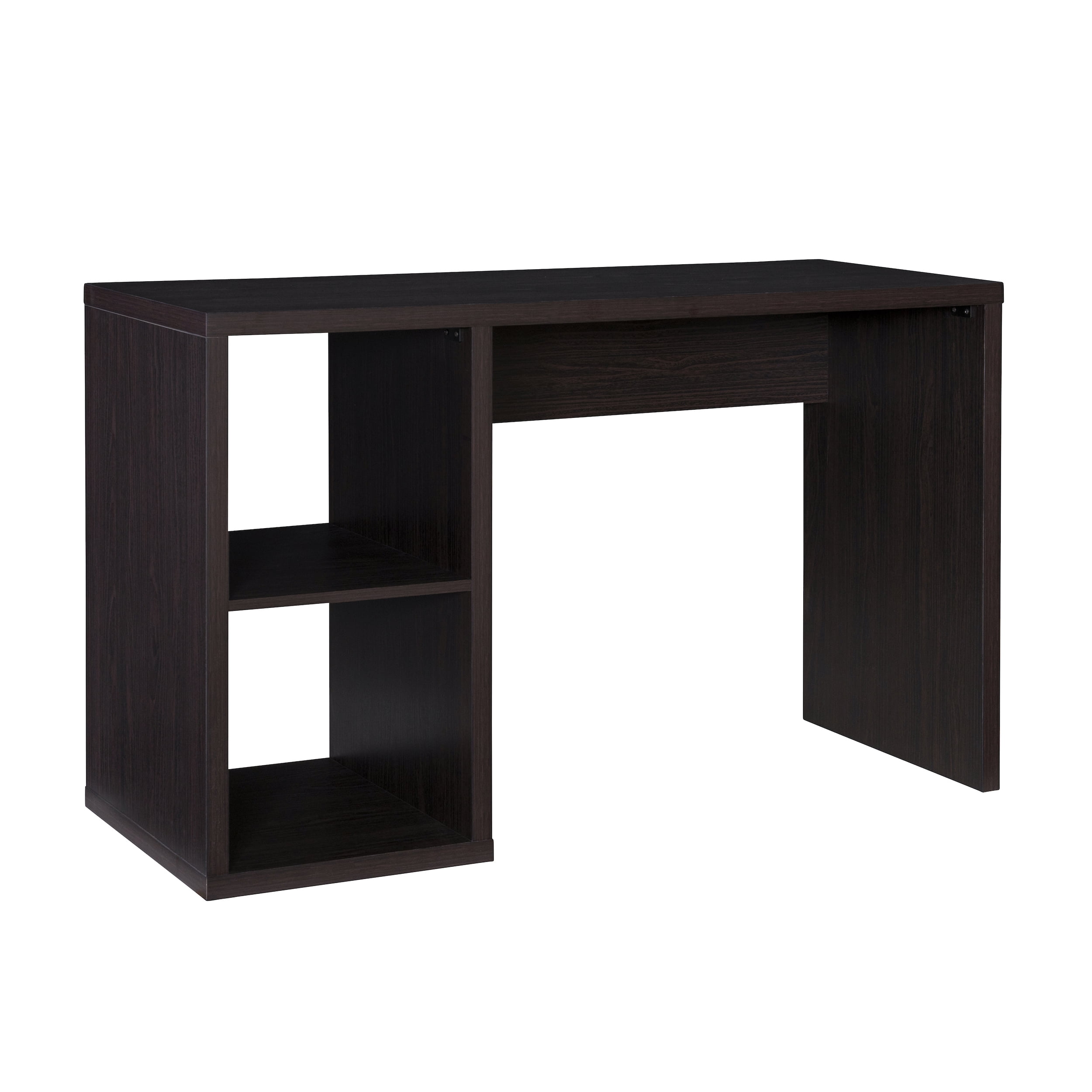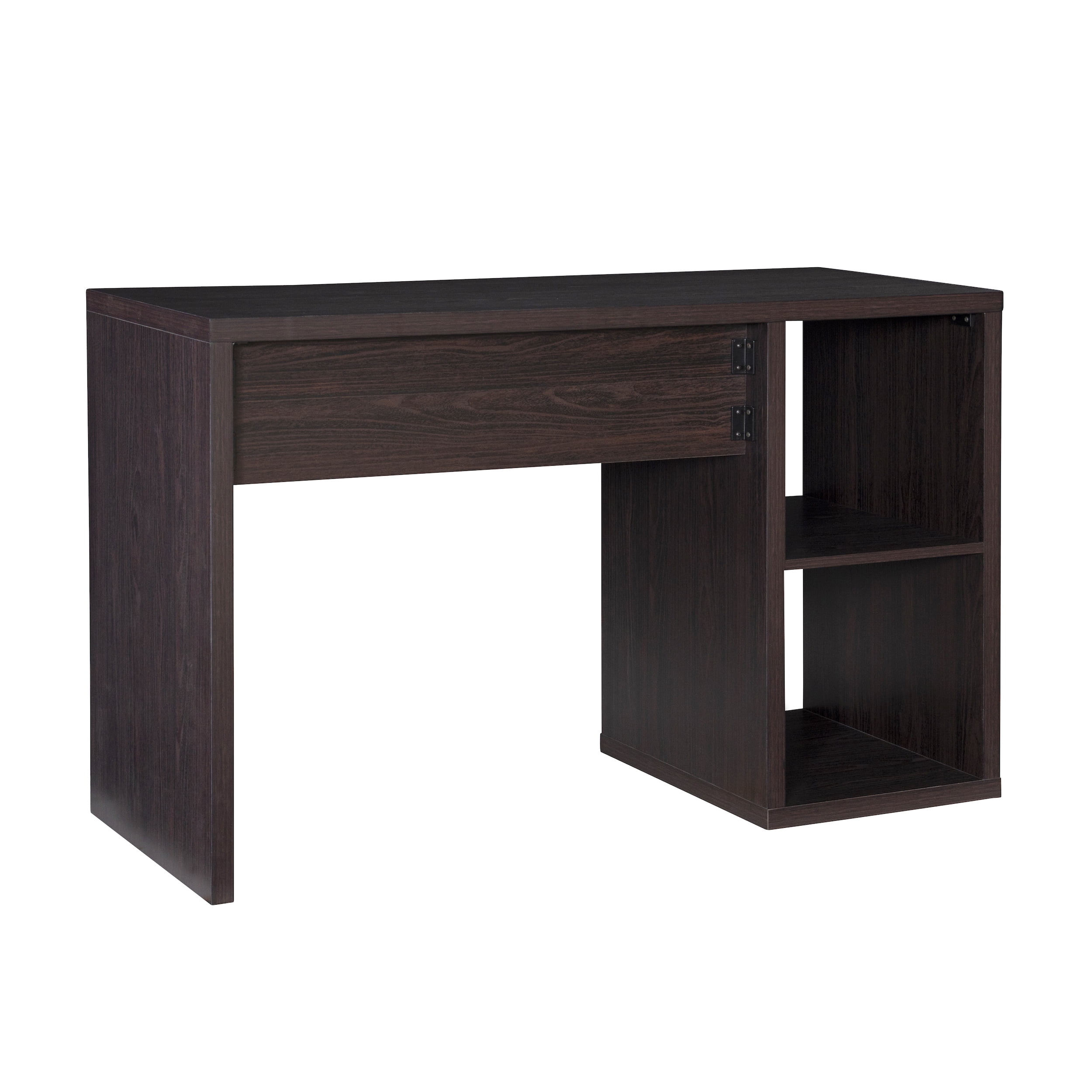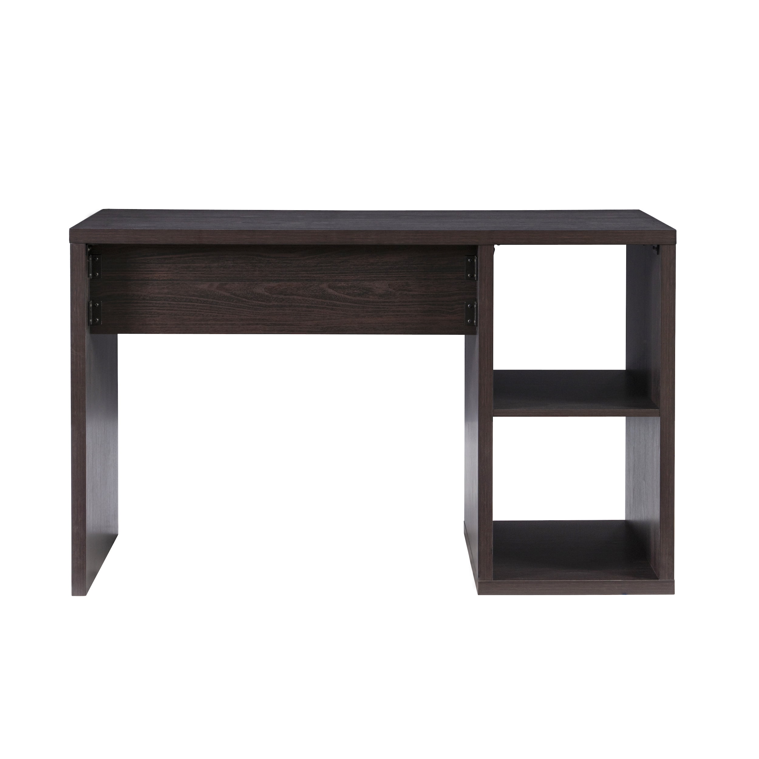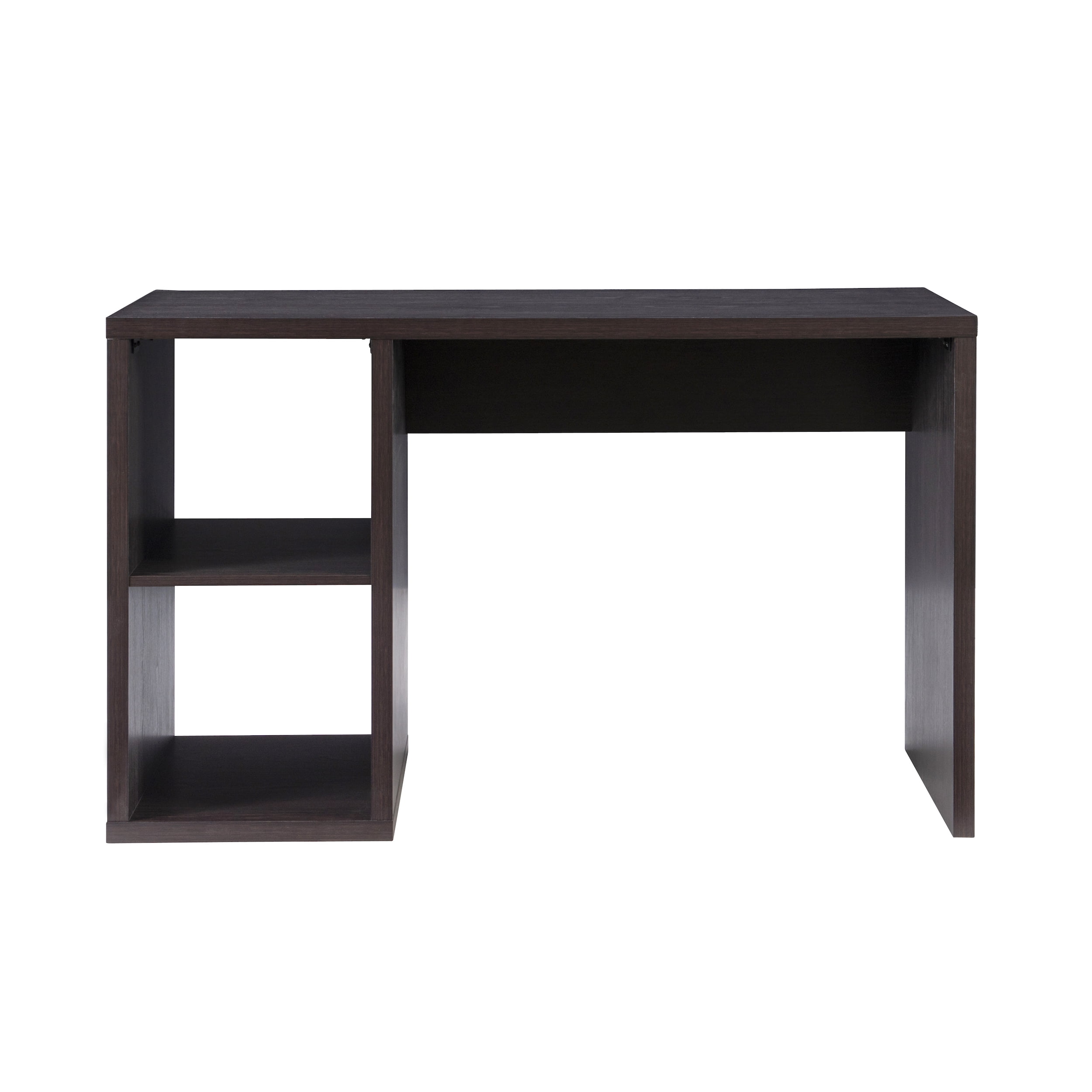 Designed to maximize storage, this Linon Duhon Writing Desk is the perfect answer to organizing clutter in your home office or any other room. Whether you’re penning a quick to do list or working from home, this desk always offers a stylish spot. The generously sized worktop can easily fit your full sized computer workstation, keyboard, mouse and other supporting items. Two cubbies pair perfectly with our colorful fabric storage bins, and are great for storing books, binders, notepads and more. With clean lines and a rich brown espresso color, this desk will integrate effortlessly into any decor.