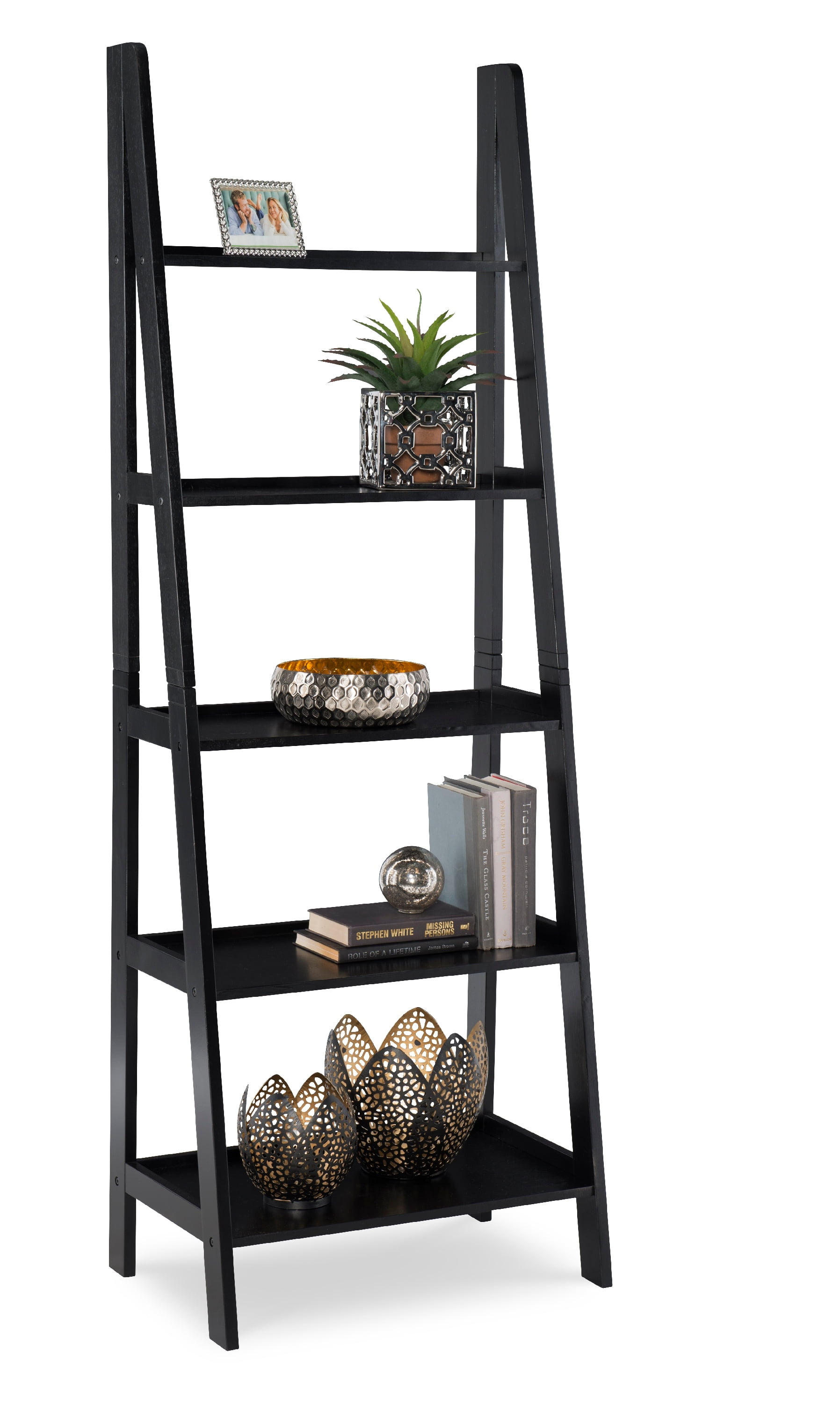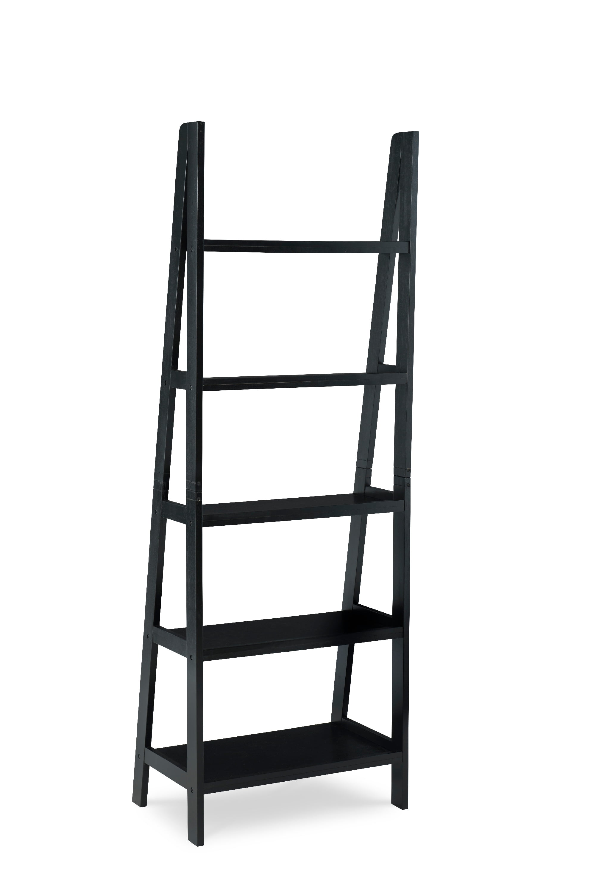 Designed in a clean, open silhouette, enabling you to show off not only your top favorite titles but also decor objects and knickknacks. This black painted Linon Edson 5-Shelf Ladder Bookcase features five shelves in decreasing depth and is designed to fit easily into taller, narrower spaces. Use in a home office, living room, bathroom or entryway to provide ample open storage.