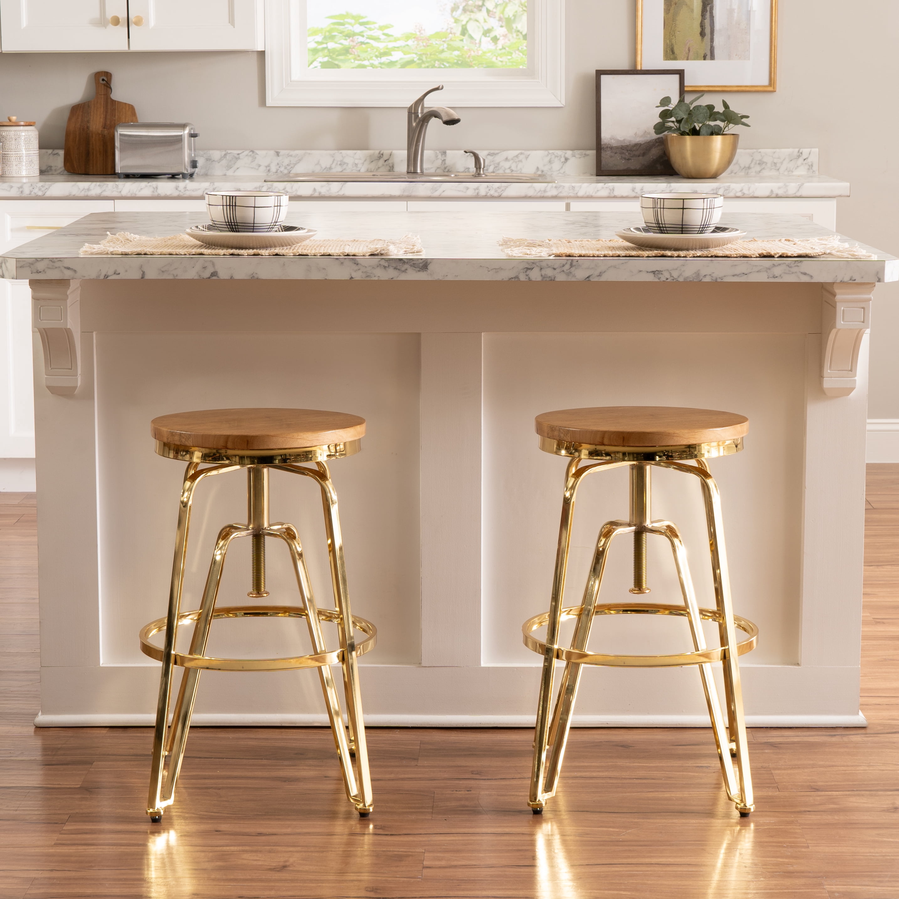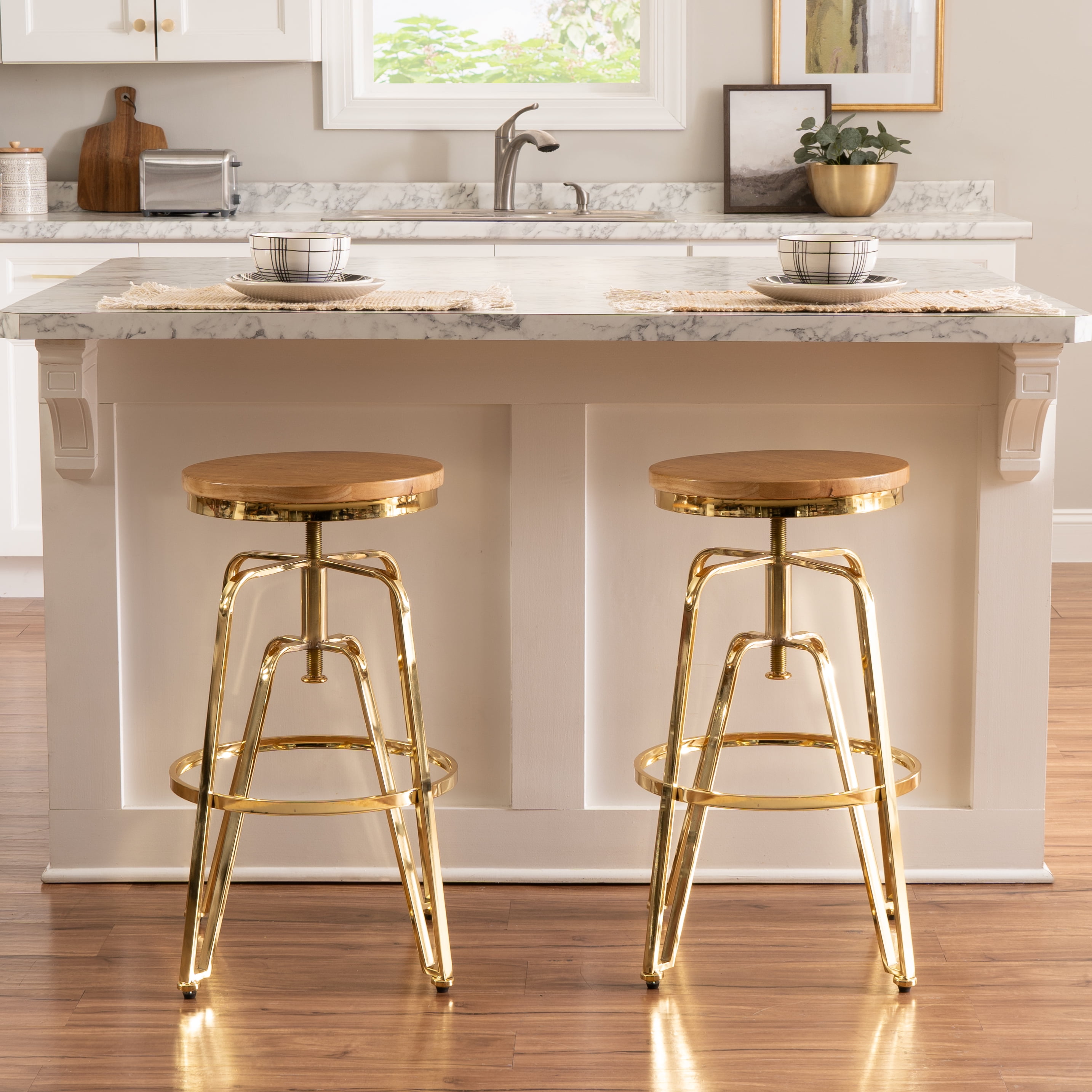 Linon Farhart Backless Bar Stool with Adjustable Height & Swivel, Gold