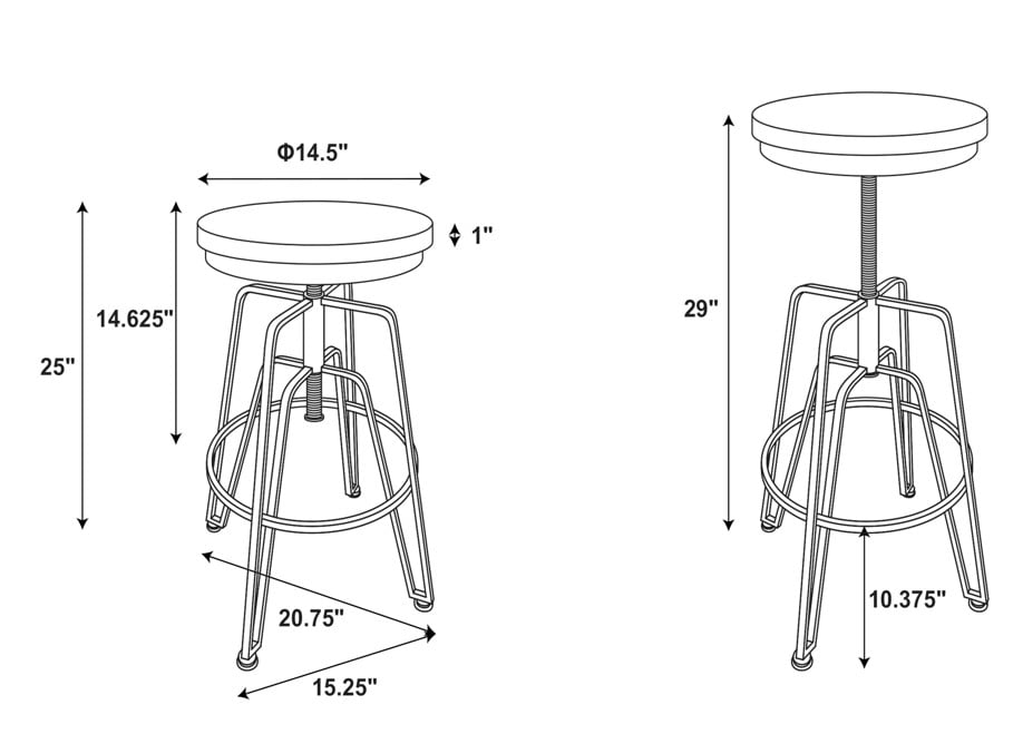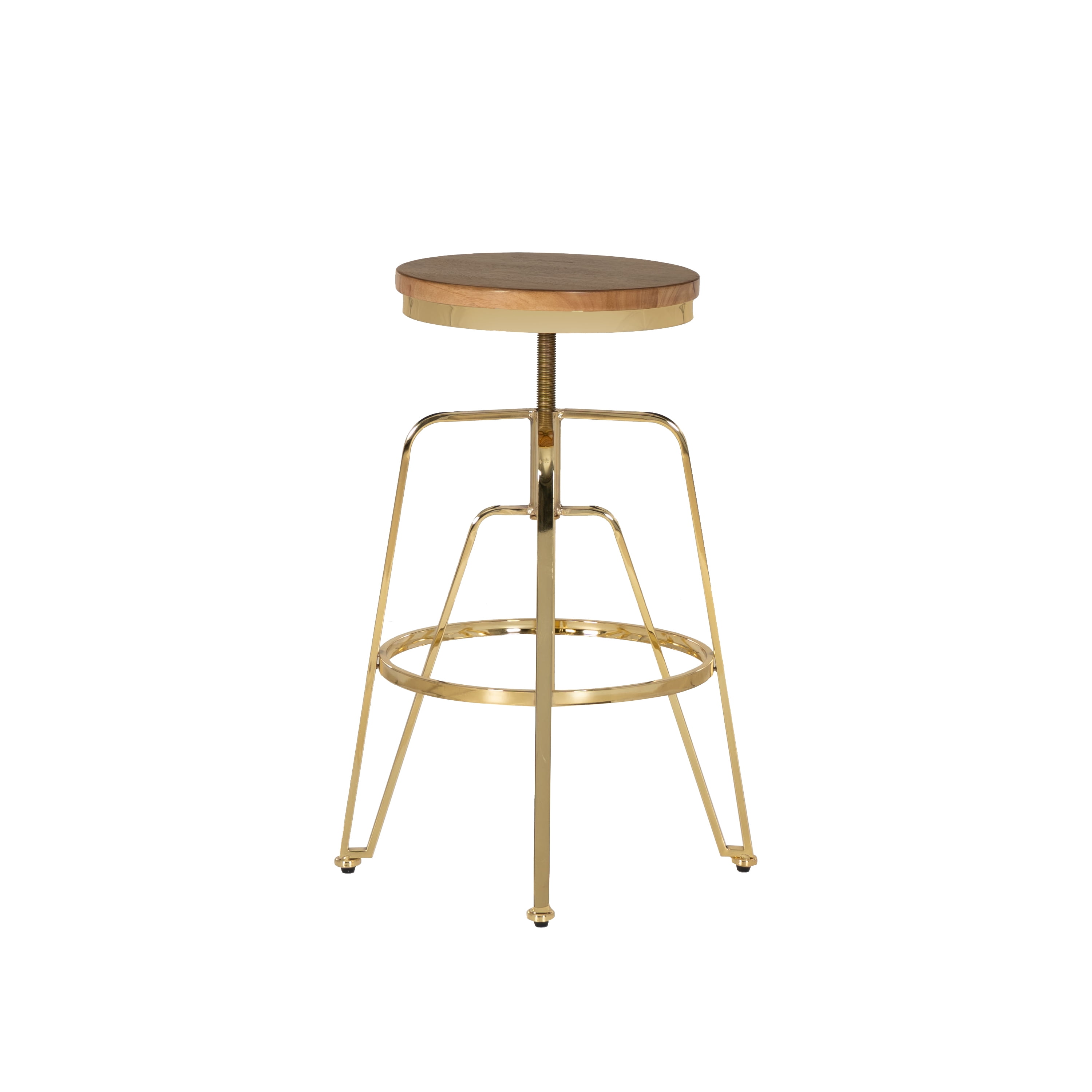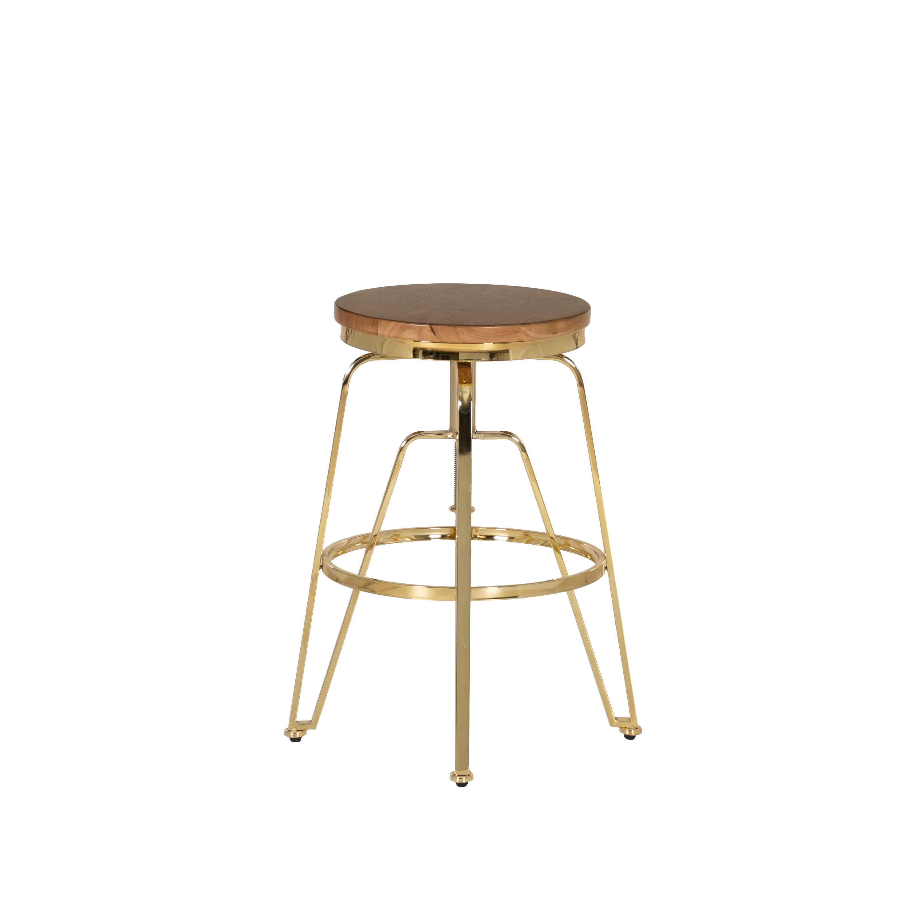 Featuring a luxurious gold frame with wooden accents, this backless stool combines opulence and natural warmth Crafted from high quality rubberwood, the stool’s wooden elements are both durable and environmentally friendly This backless stool offers a height range of 26.75 inches to 30.75 inches, providing flexibility to accommodate various counter or table heights 14.5″ Diameter solid wood seat Assembly is a breeze with clear instructions, and the low maintenance materials make it easy to keep the stool looking pristine The stool’s low maintenance design ensures that it remains a stylish and functional addition to your home