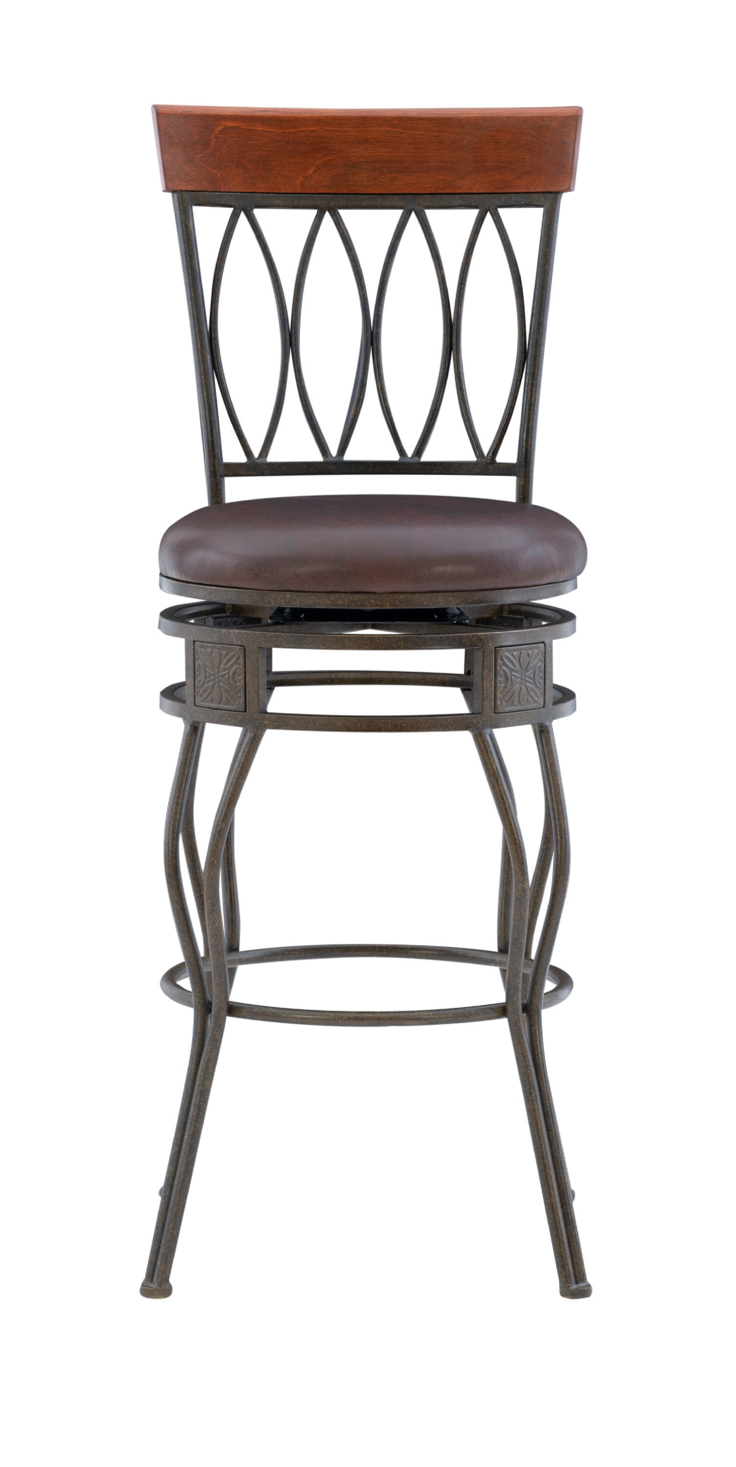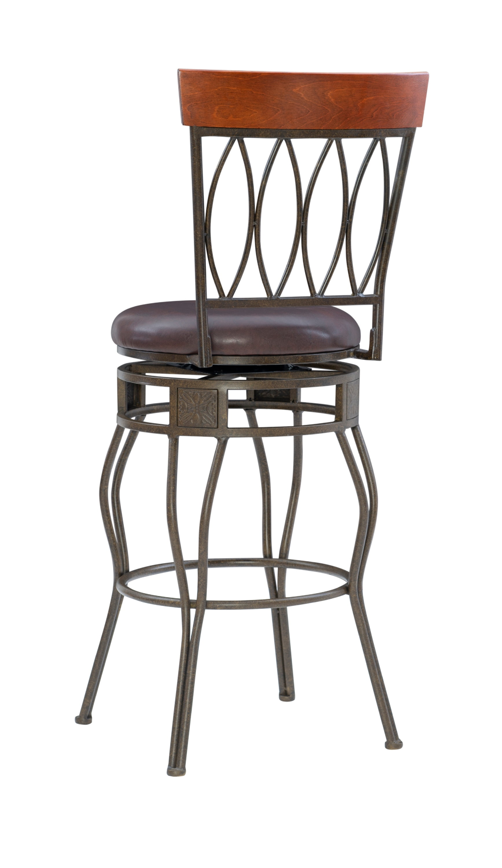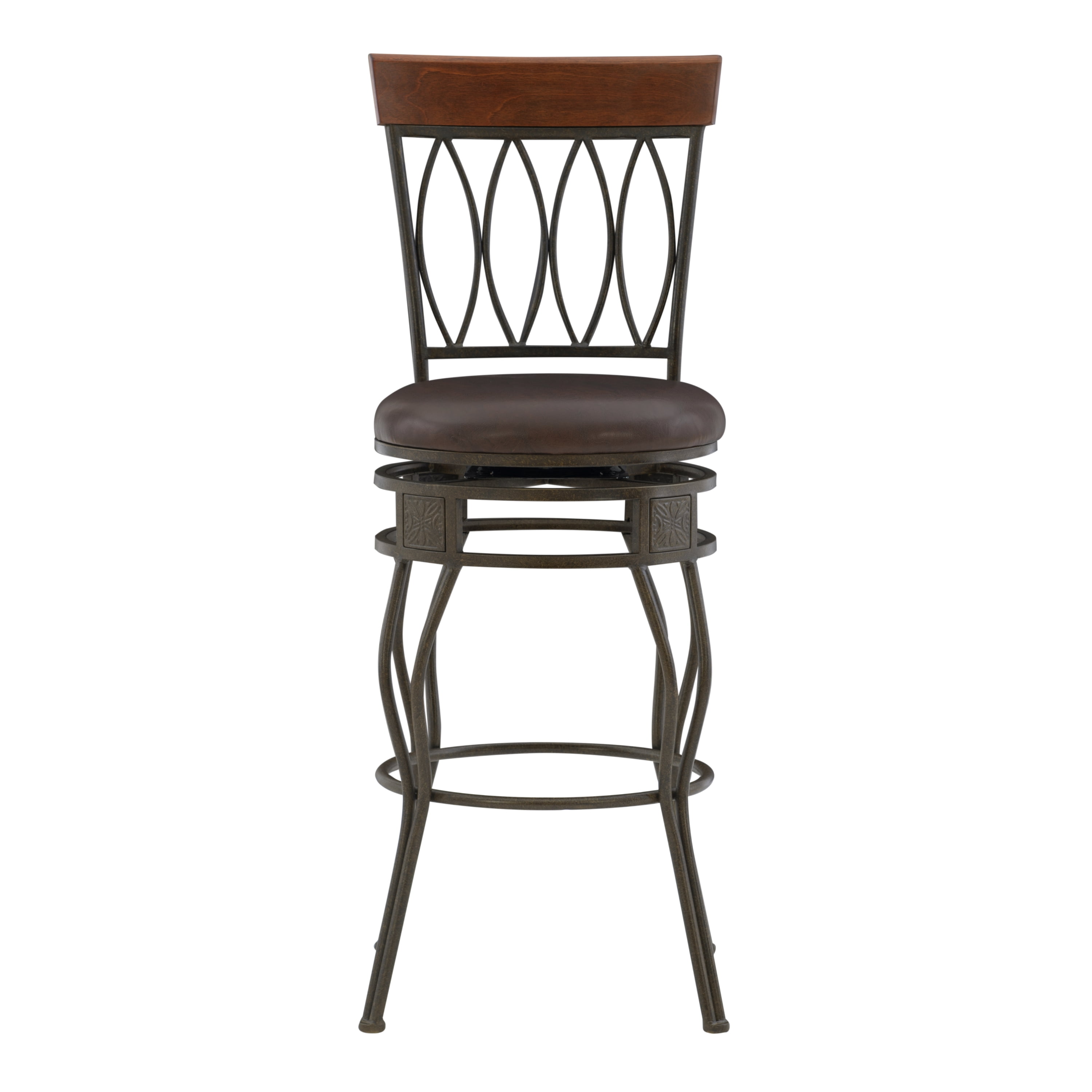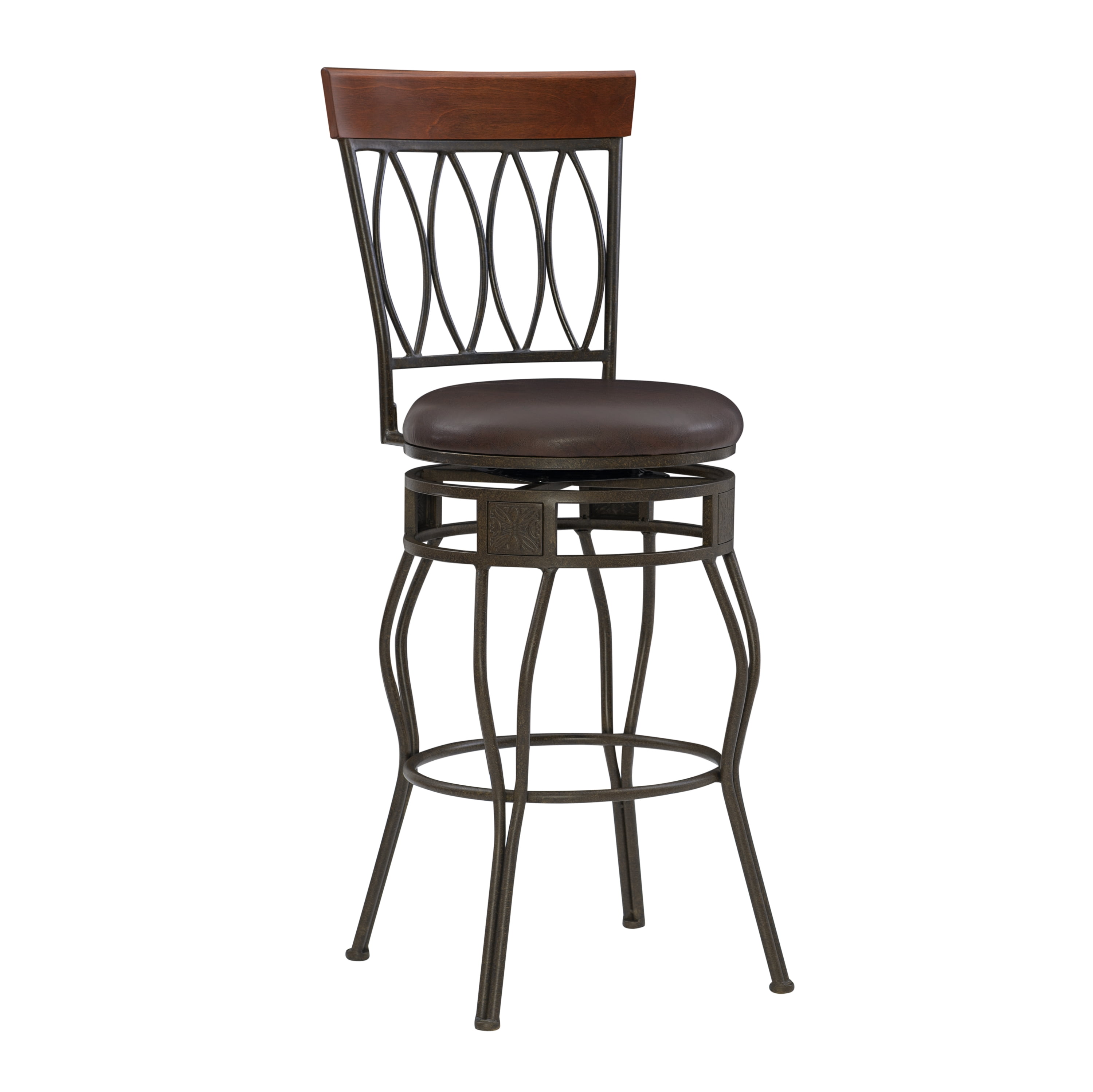 Linon Frankel Oval Back Metal Swivel Bar Stool, 30″ Seat Height, Matte Bronze Finish with Brown PVC Fabric
