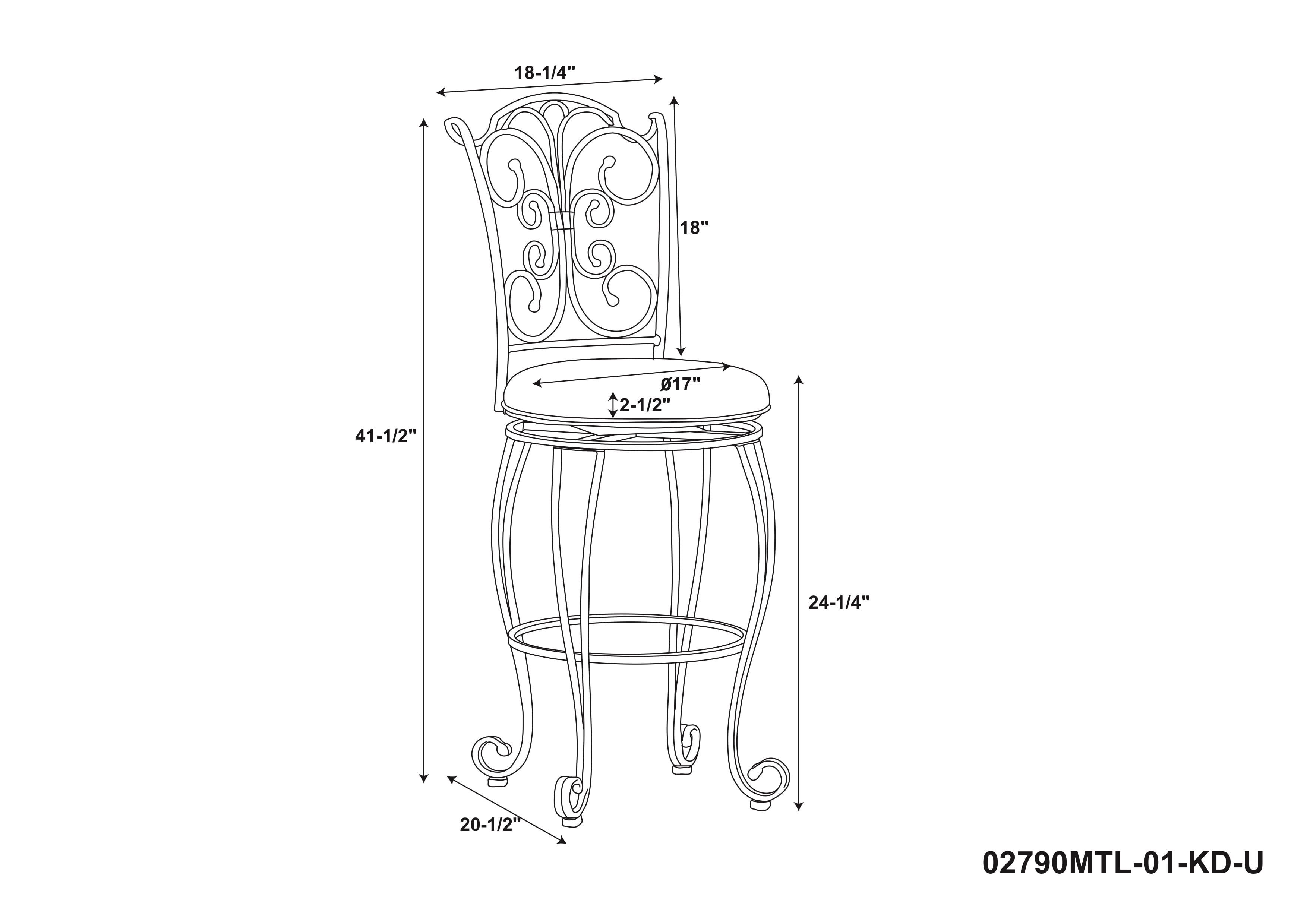 Linon Gathered Back Counter Stool, Brown, 24 inch Seat Height: Swivel seat Light brown/caramel polyester seat cover Seat Dimensions: 24″ seat height, 17.7″ x 17.7″ x 2.35″ Weight Limit: 275 lbs Materials: Metal (Iron), CA Fire foam, Microfiber Dimensions: 18.5″ w x 19.63″ d x 41.13″ h Carton Dimensions: 23.62″ w x 18.5″ d x 9.45″ h Some Assembly Required Sku: 02790MTL-01-KD-U