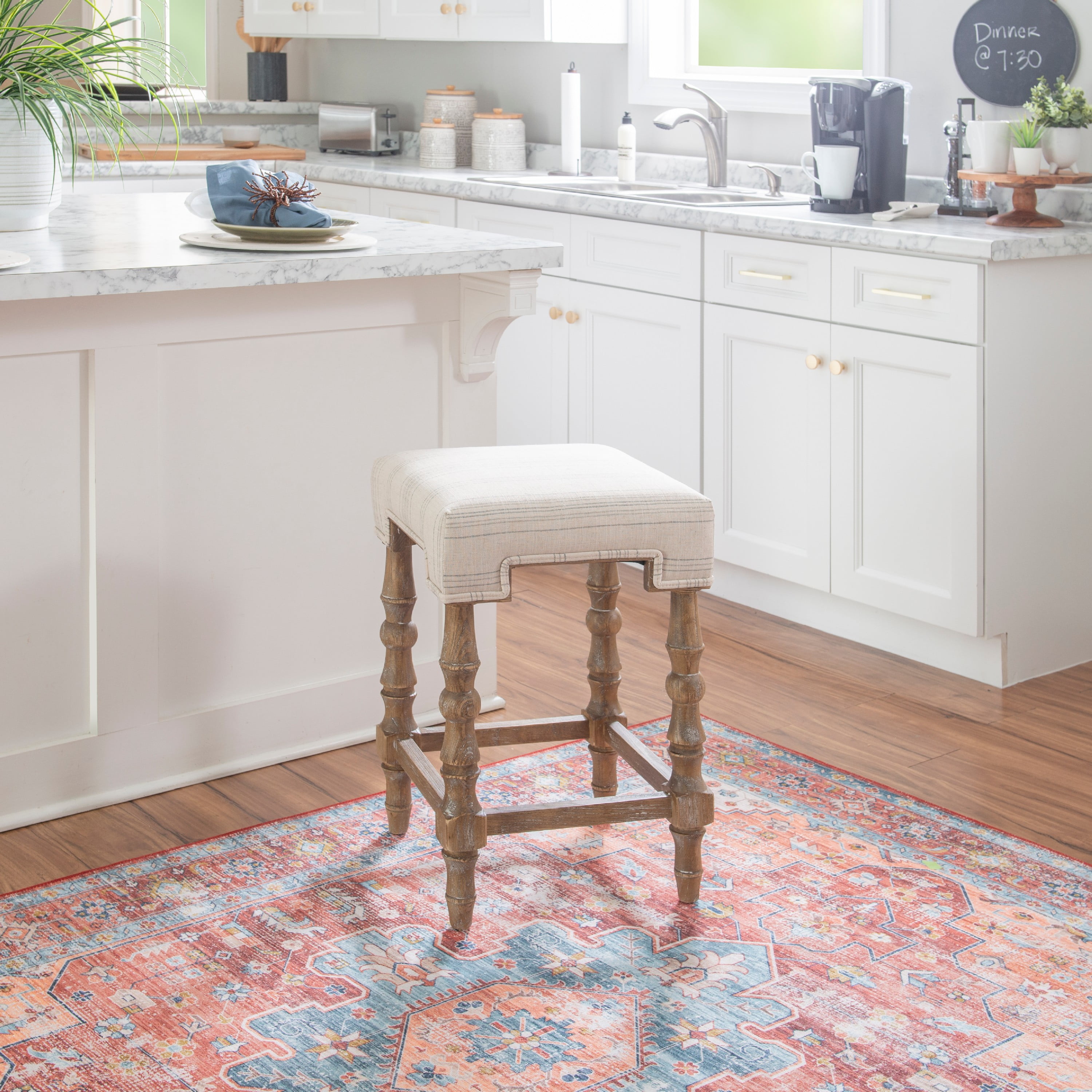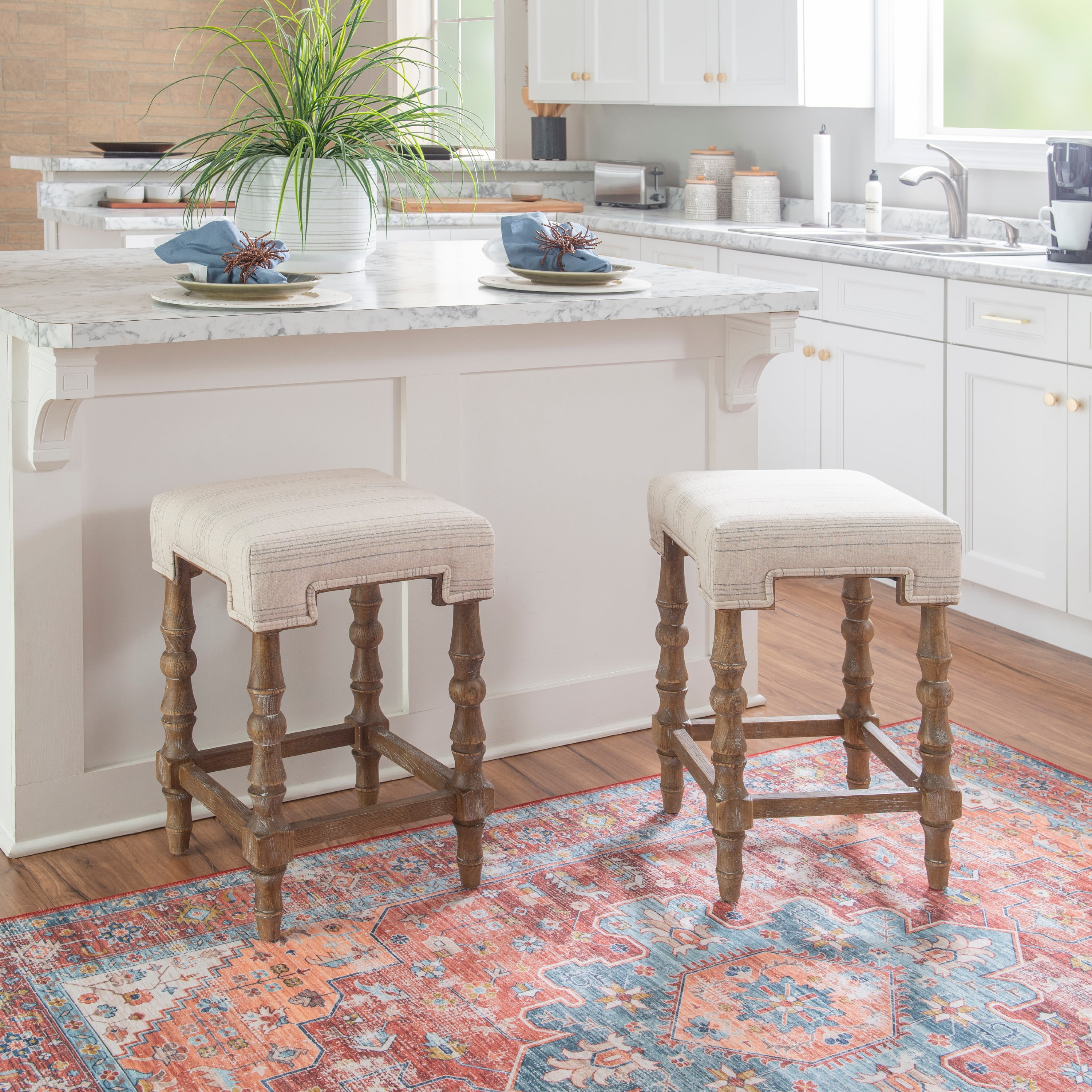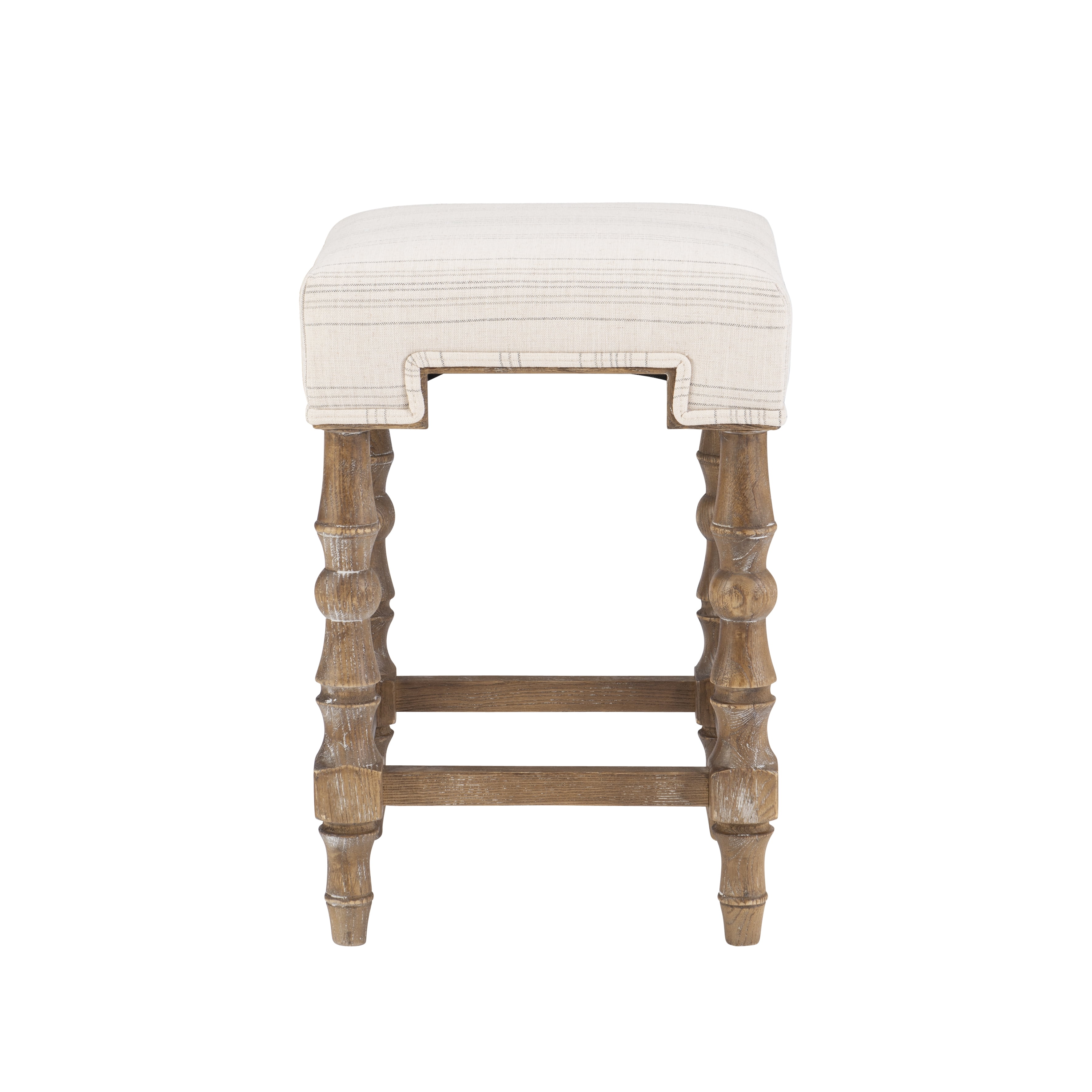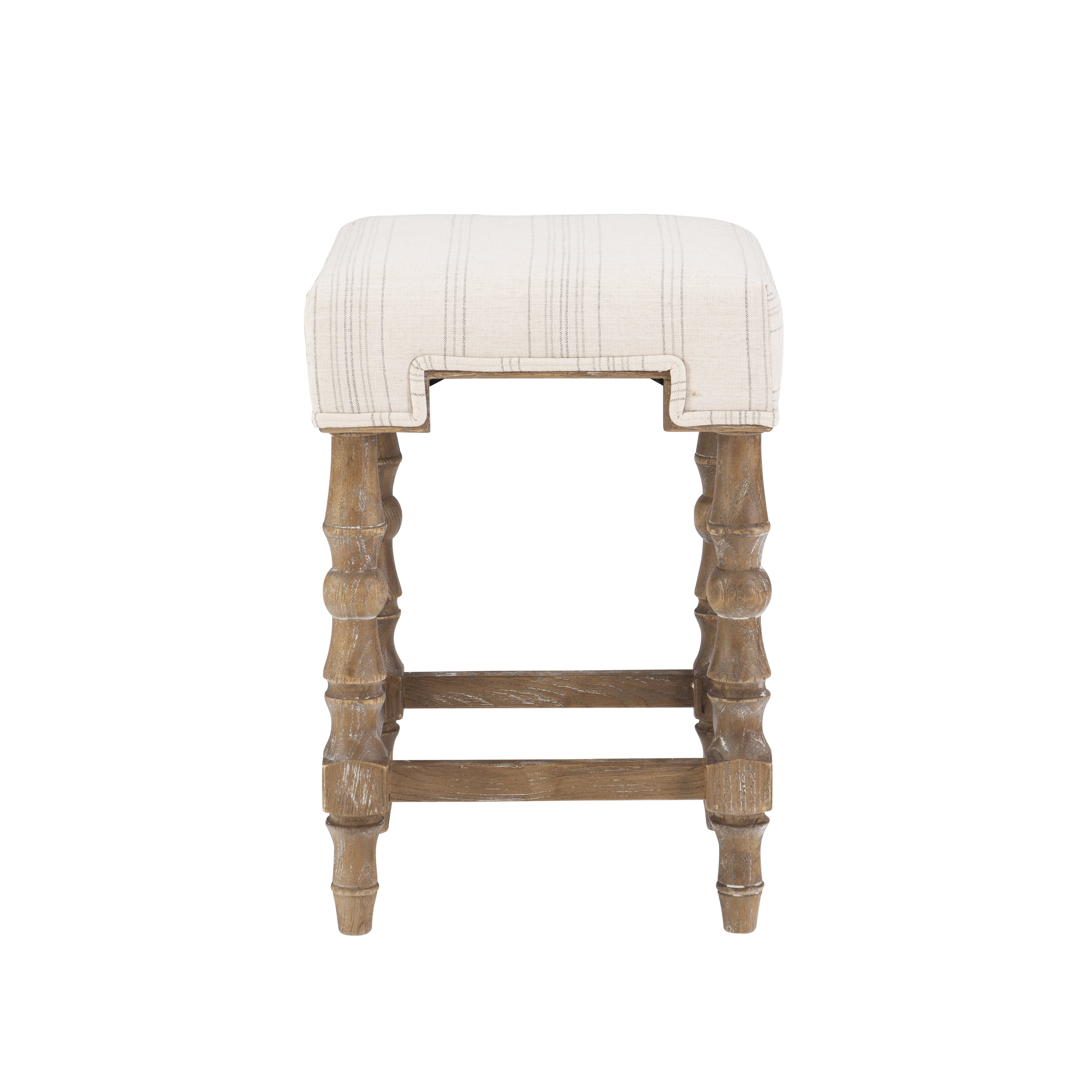Add rustic style and design to your kitchen or high top table with the shelly backless counter stool. An eye-catching geometric shaped seat sits atop decorative washed wood legs. The neutral colorscape allows the stool to easily transition into a variety of decor schemes. Sturdy footrests add stability and comfort. Counter height.