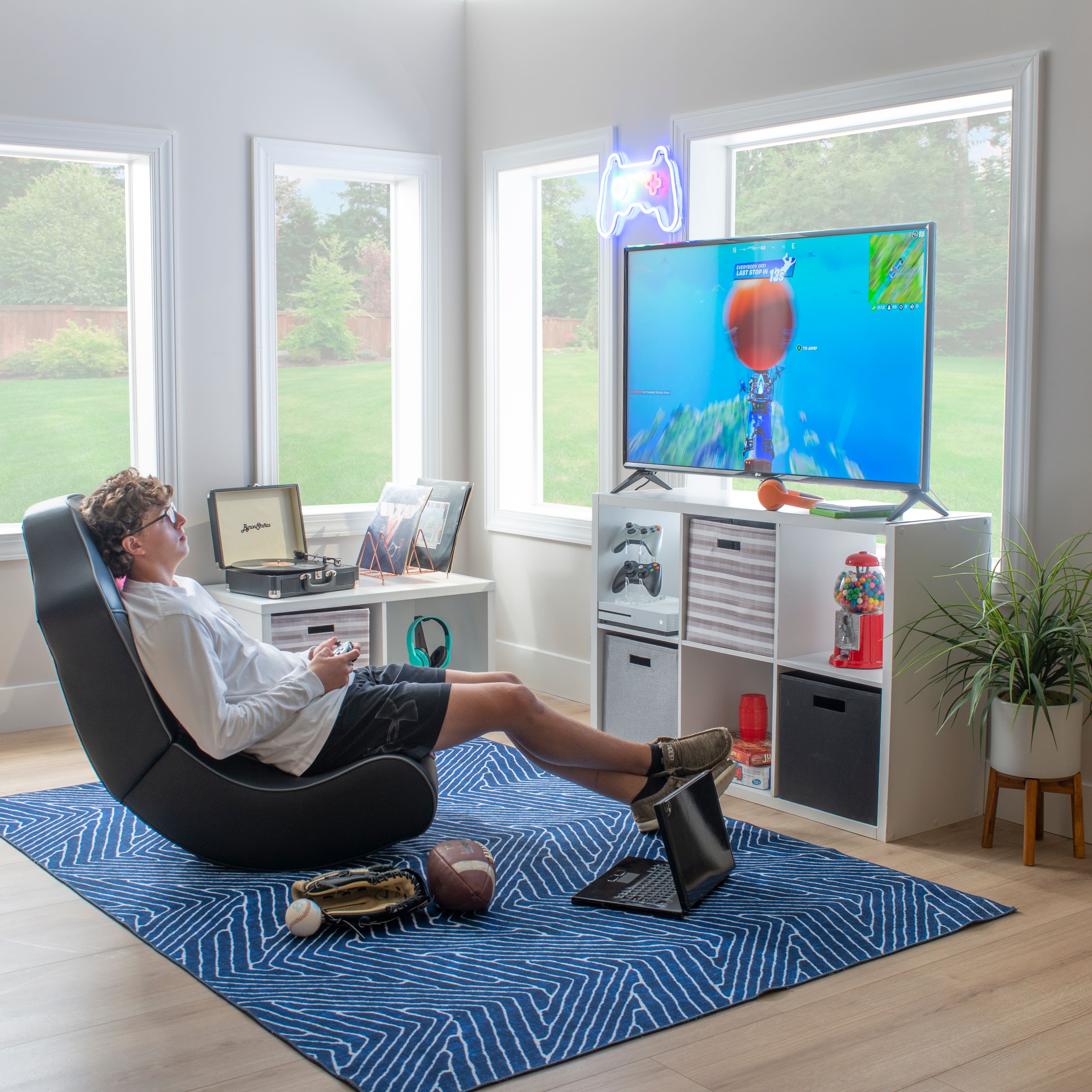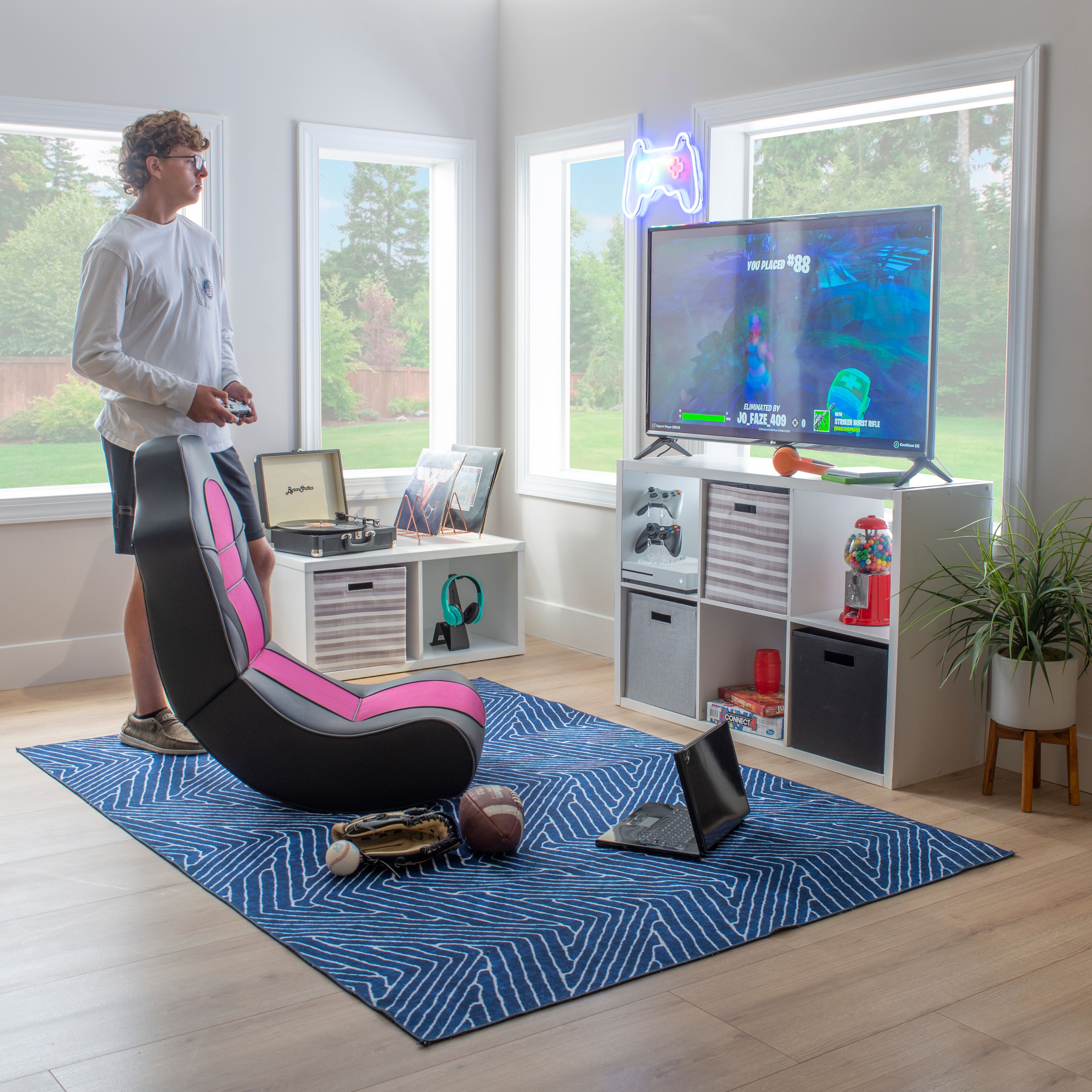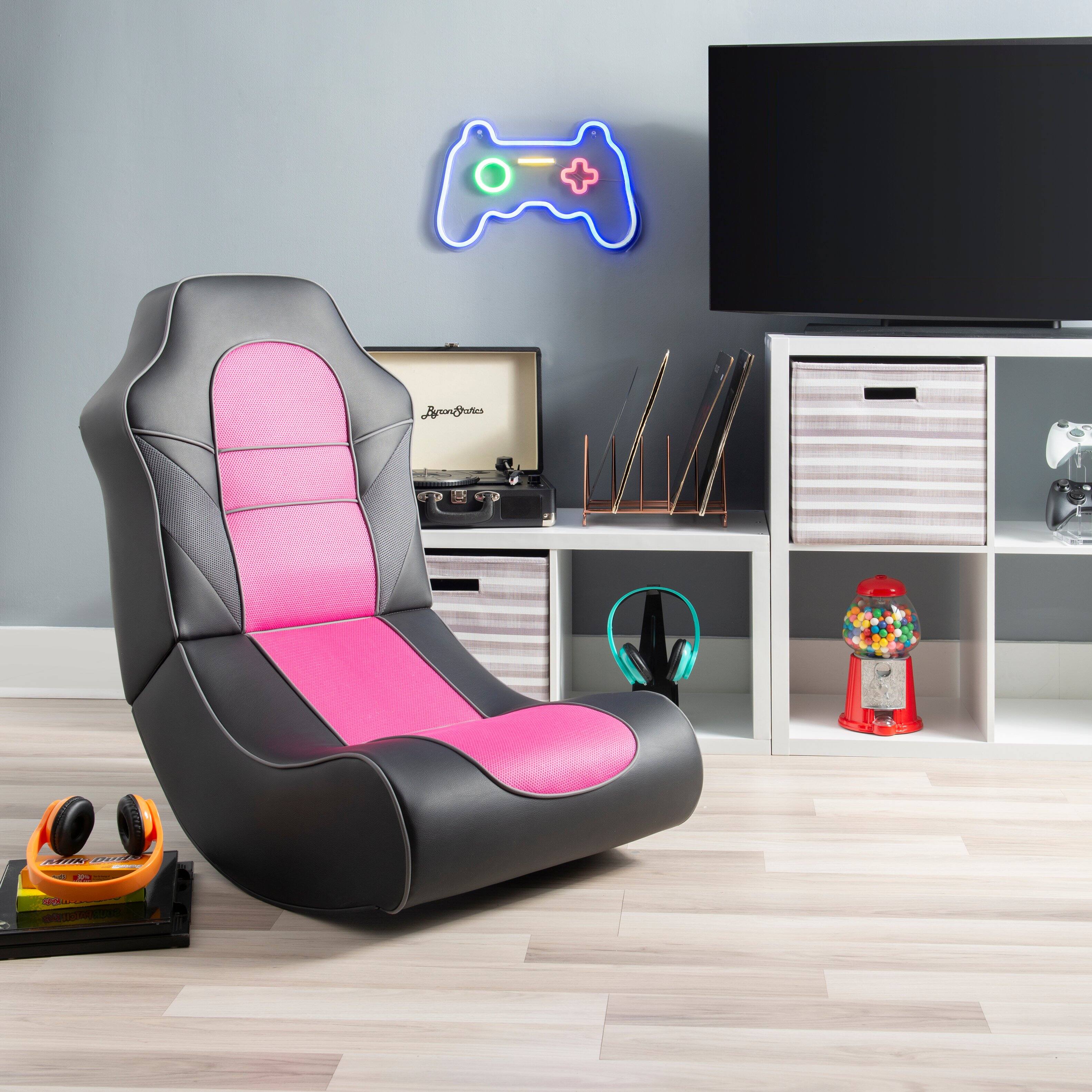 Zone in to your favorite video game or doze off on a midday nap with this rocking floor chair. The comfortable padded shape is ideal for relaxing, whether you’re stationed in front of a television for an extended gaming session, snuggled up with a book, or centering yourself in meditation. The faux leather upholstery with a pink mesh center strikes a modern tone and is easy to maintain with just a damp cloth. With a compact design, this chair is ideal for extra seating during sleepovers, group projects in a dorm room, or as a front row seat in your home entertainment space.